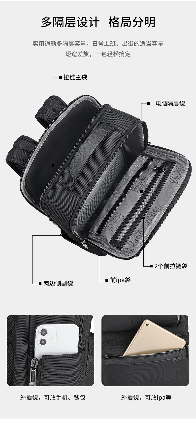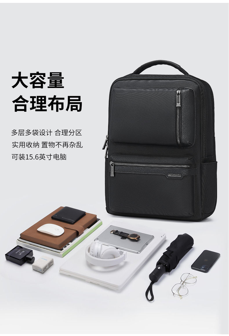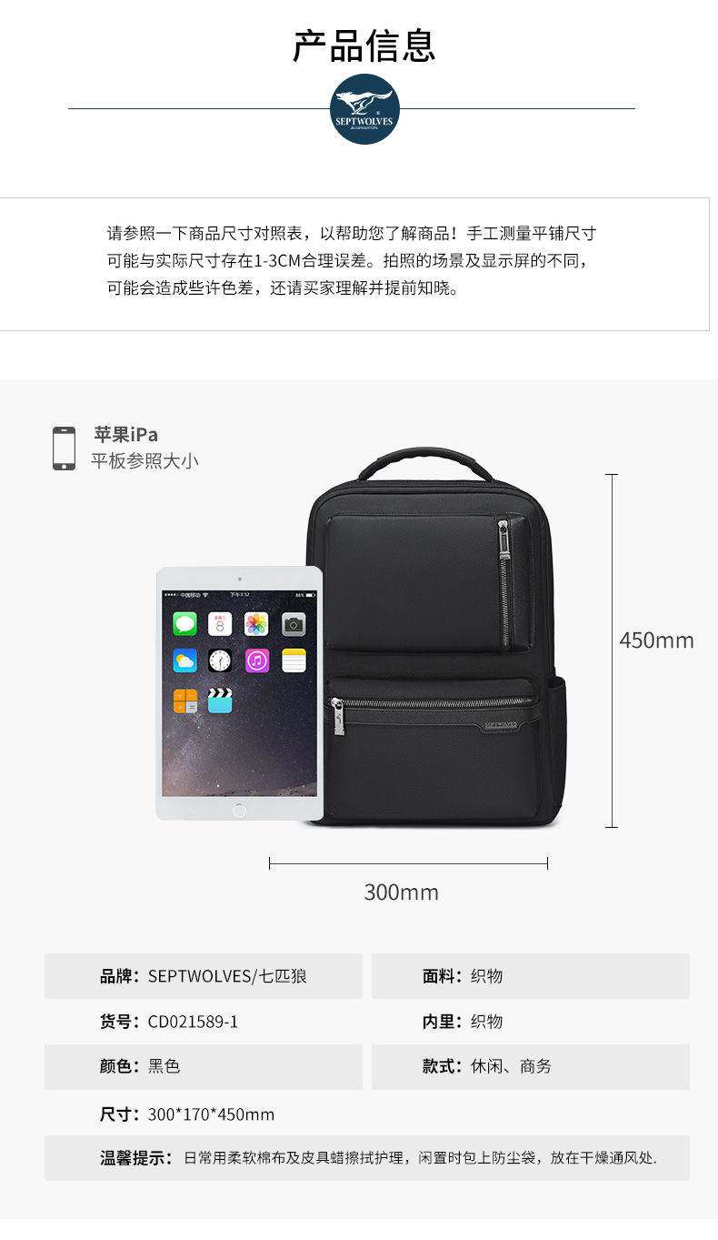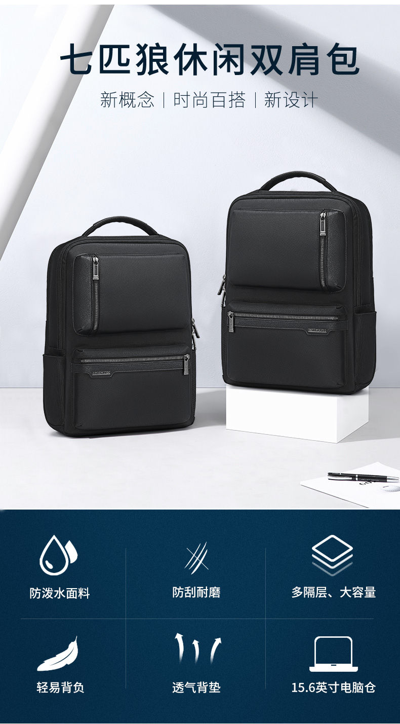七匹狼(SEPTWOLVES) CA021589-1 300x170x450mm 双肩包 黑色(单位:个)