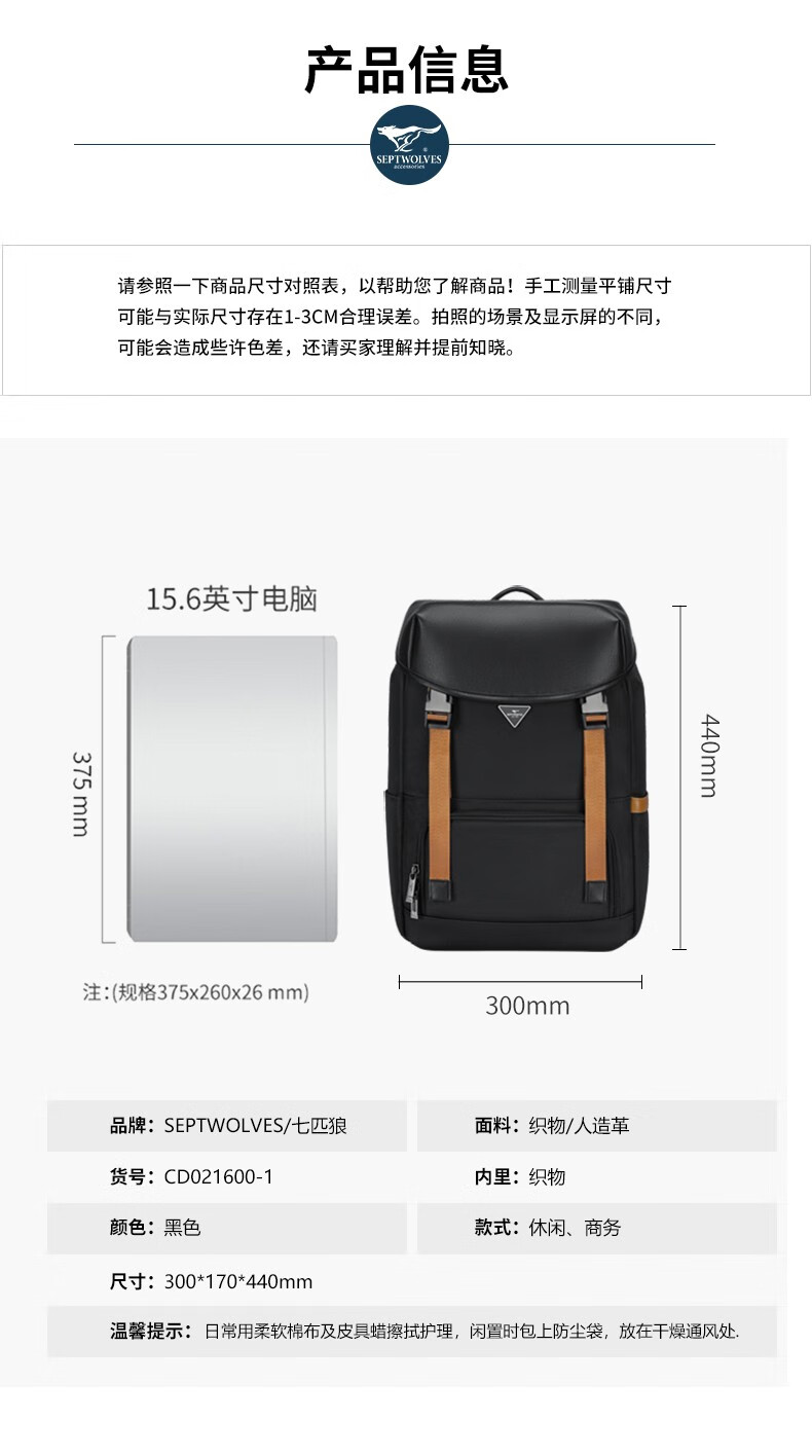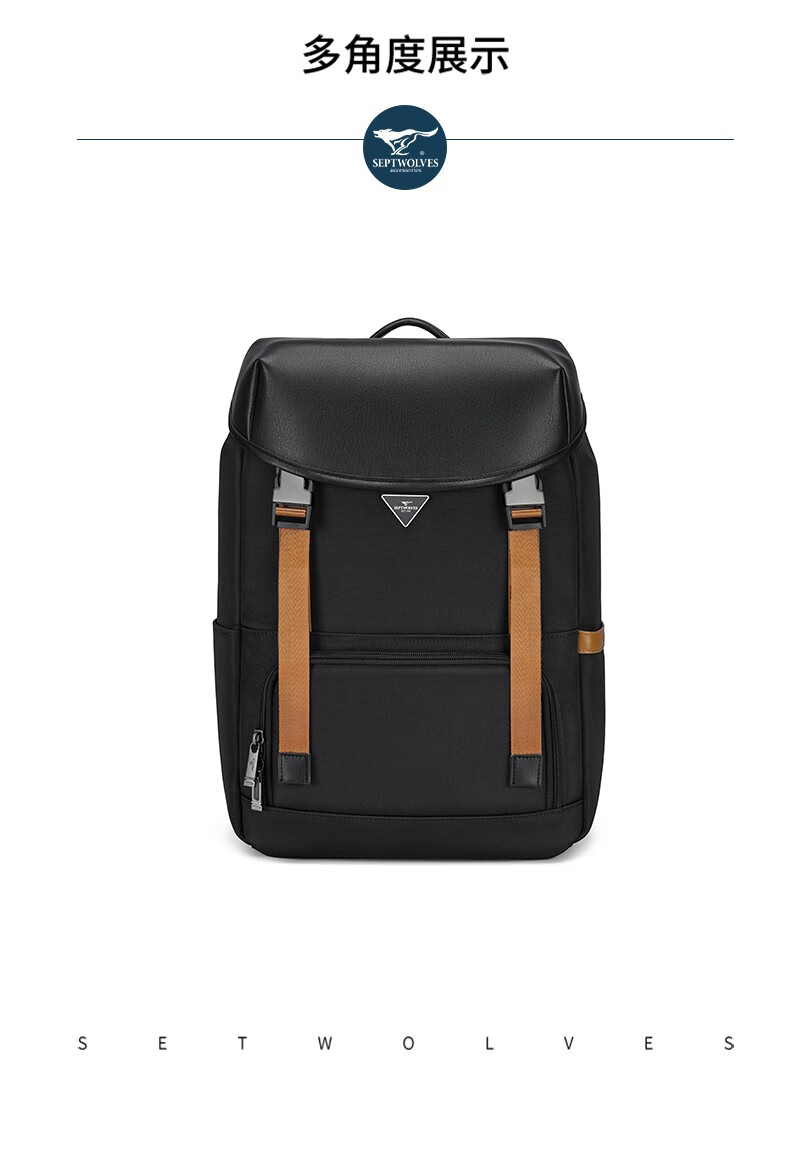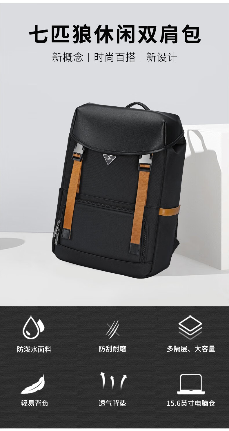 七匹狼(SEPTWOLVES) CA021600-1 300x170x440mm 双肩包休闲旅行电脑包 黑色(单位:个)