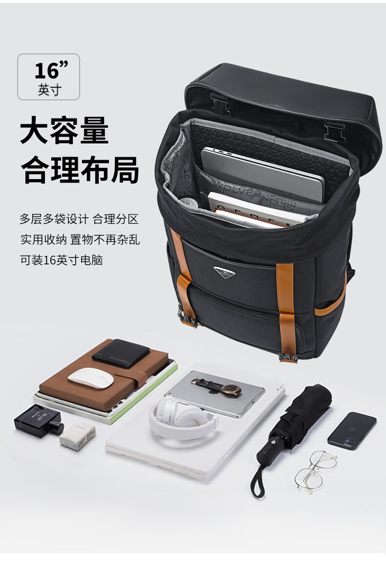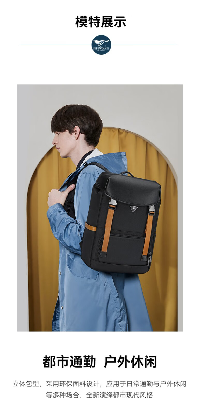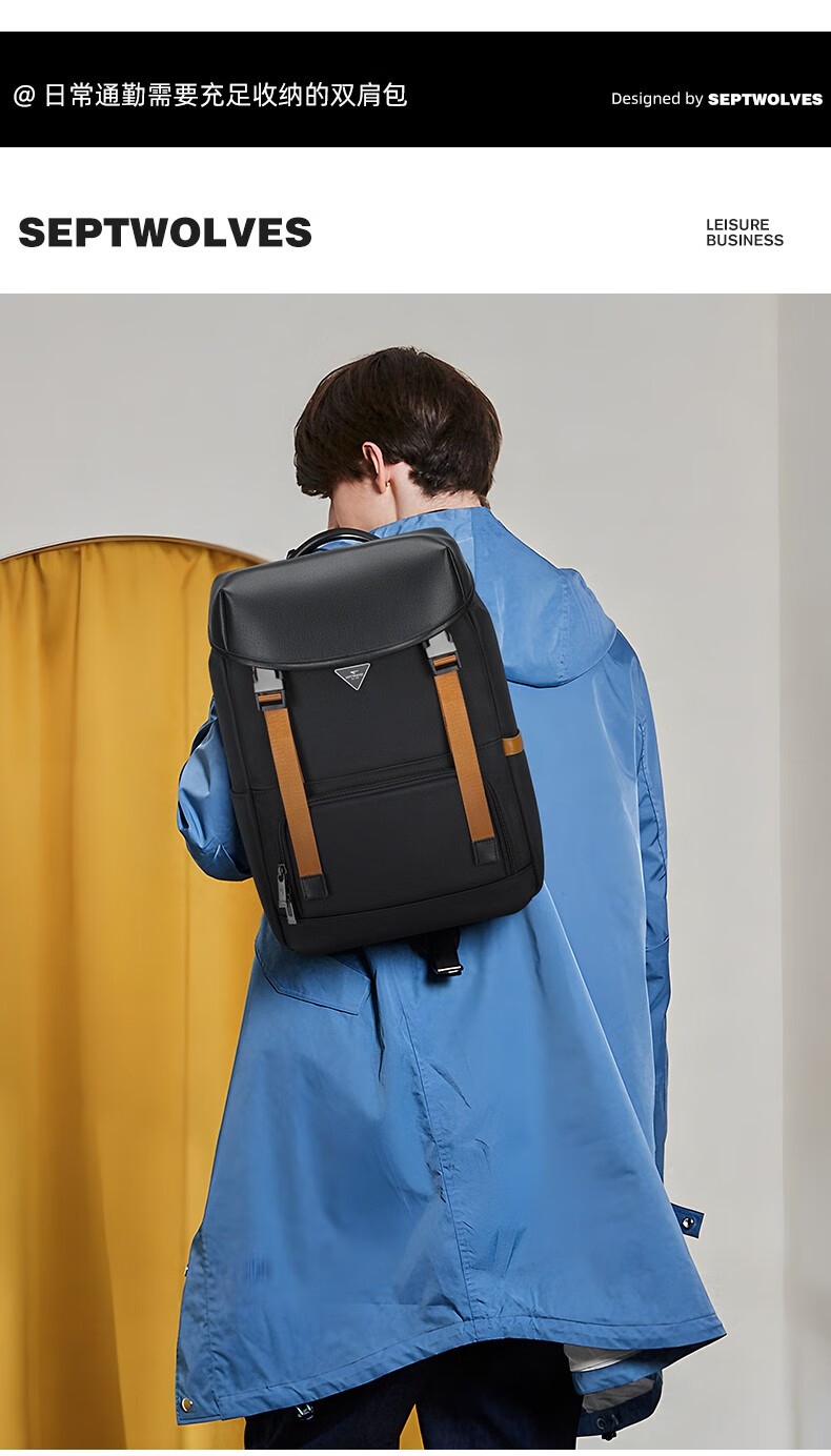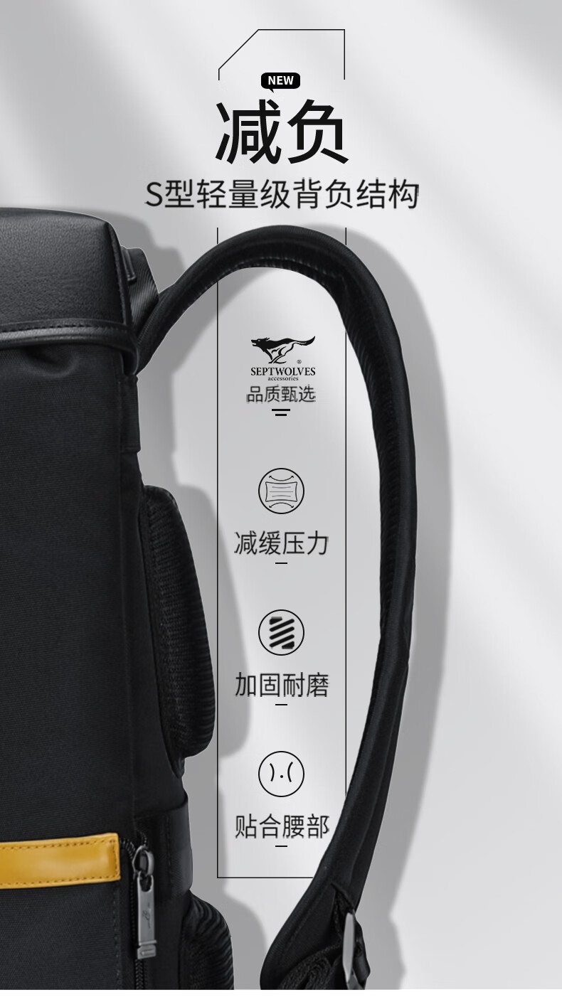 七匹狼(SEPTWOLVES) CA021600-1 300x170x440mm 双肩包休闲旅行电脑包 黑色(单位:个)