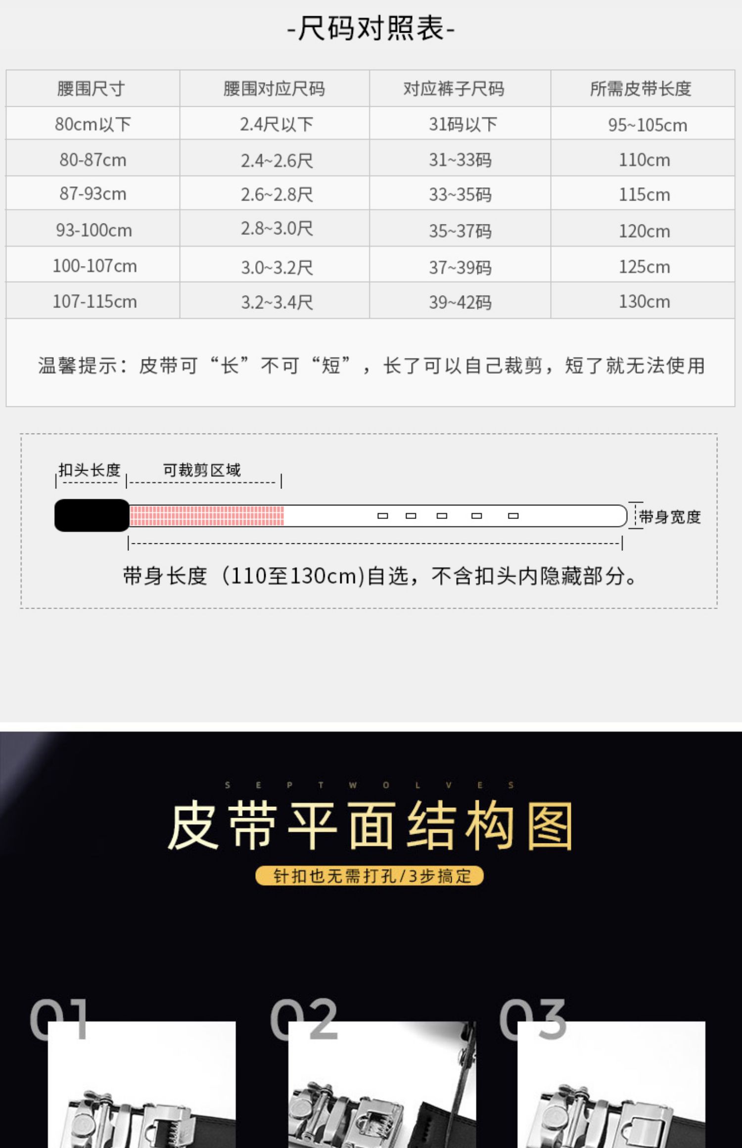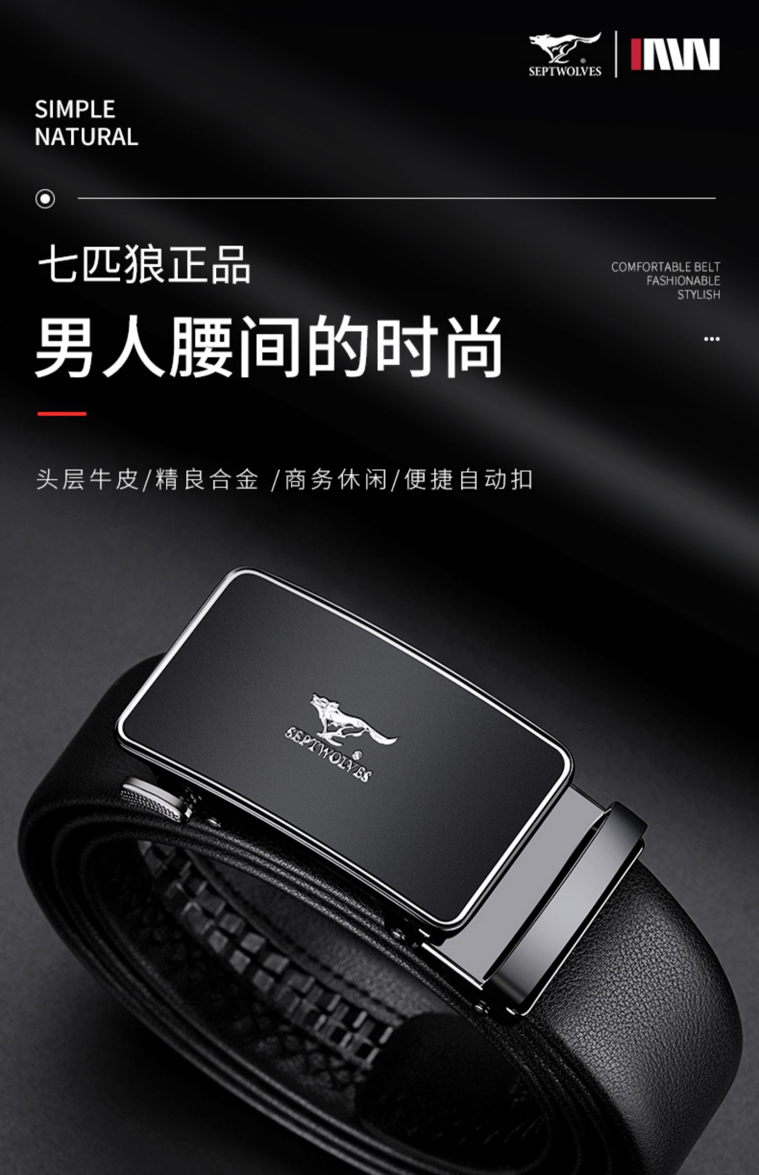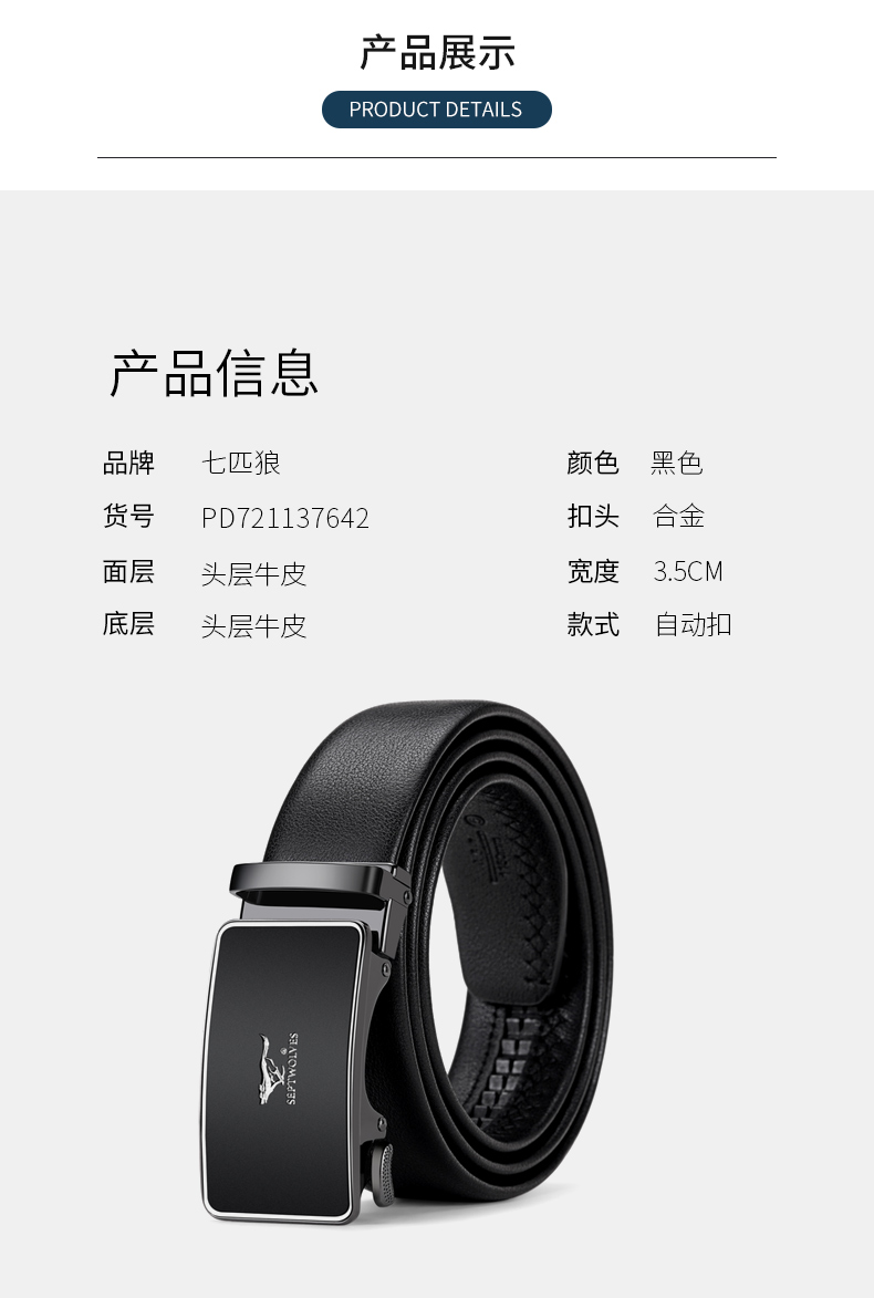 七匹狼(SEPTWOLVES) PD721137645 3.5cm 皮带自动扣腰带 黑色(单位:根)