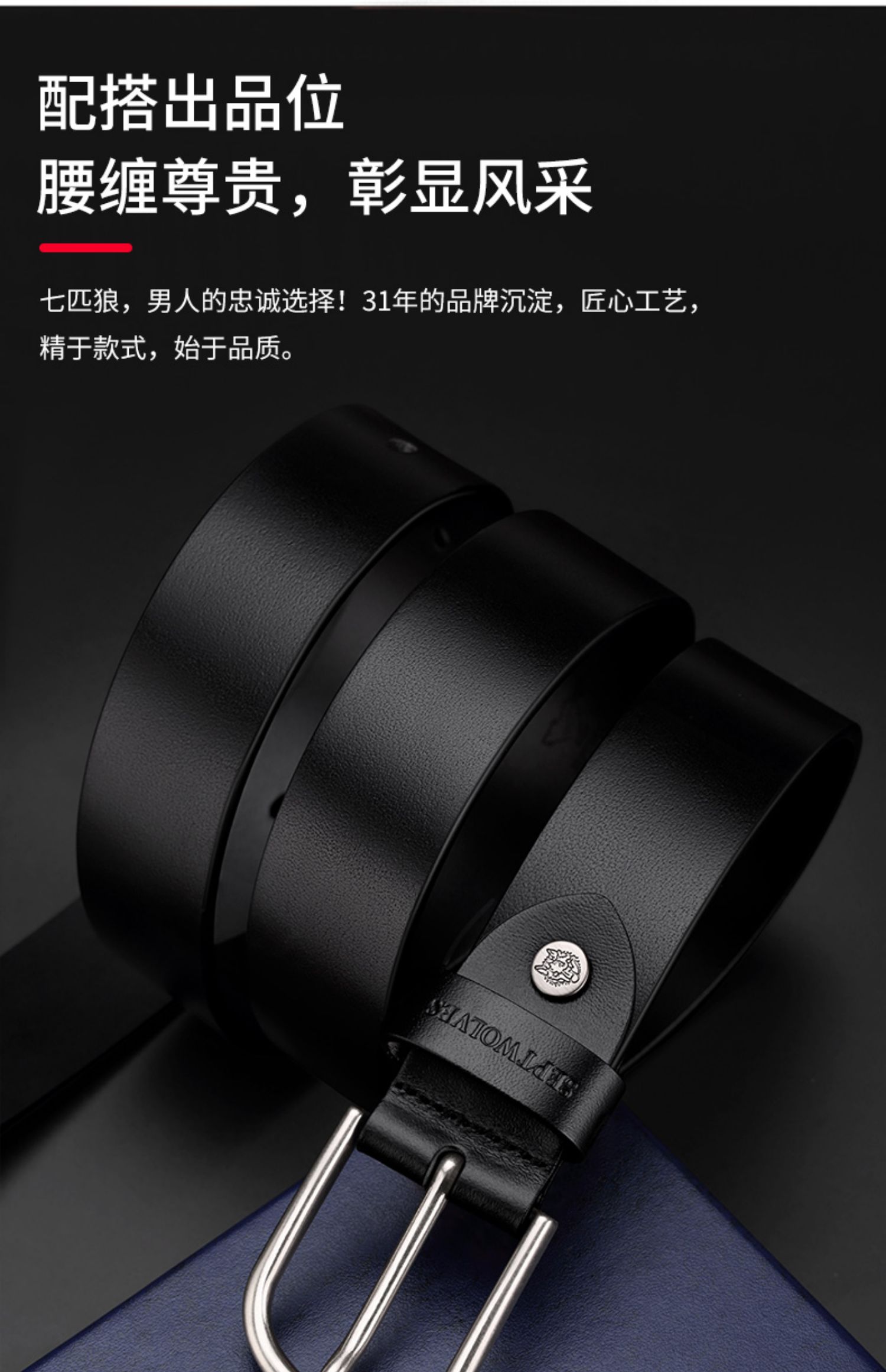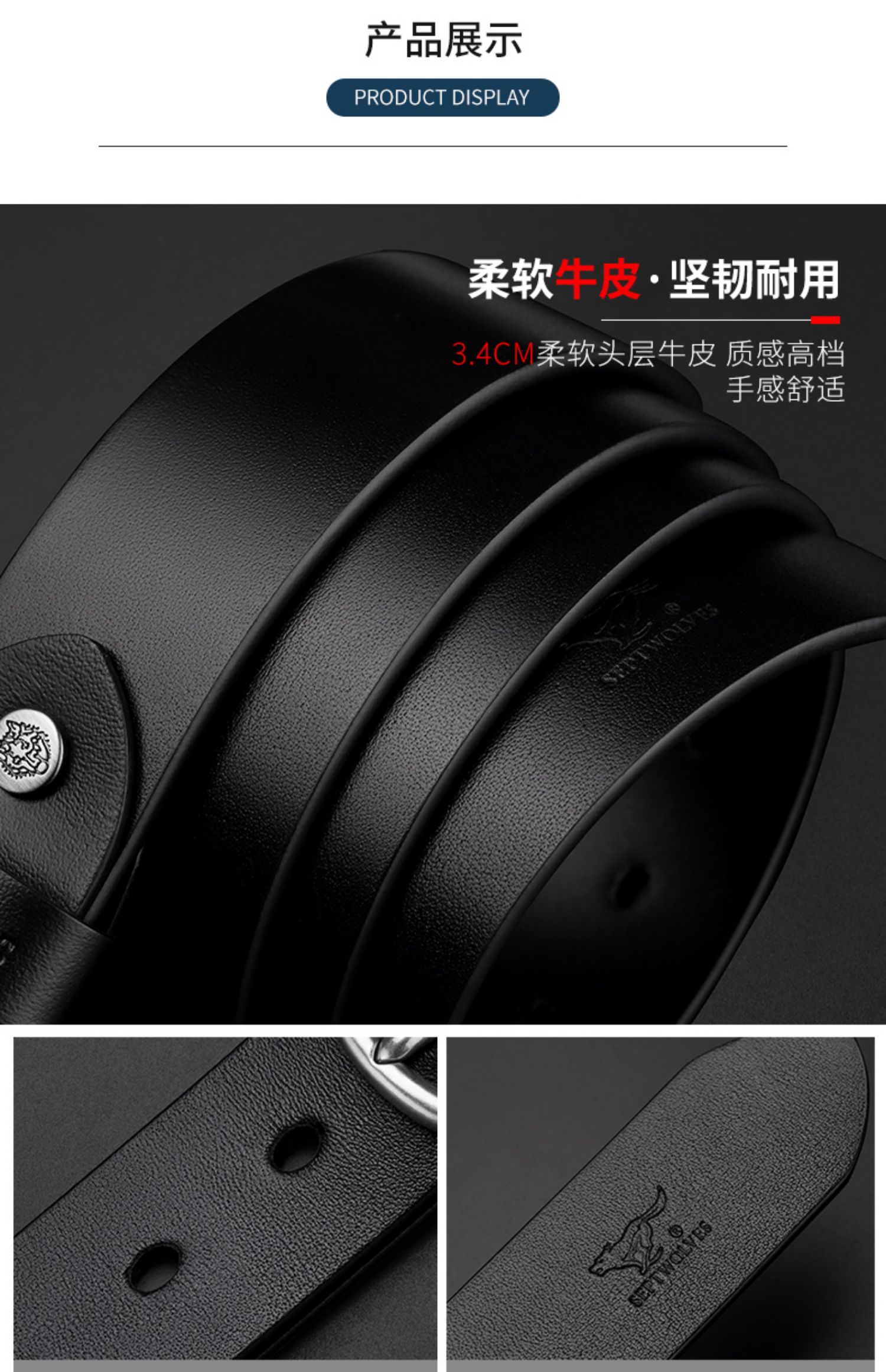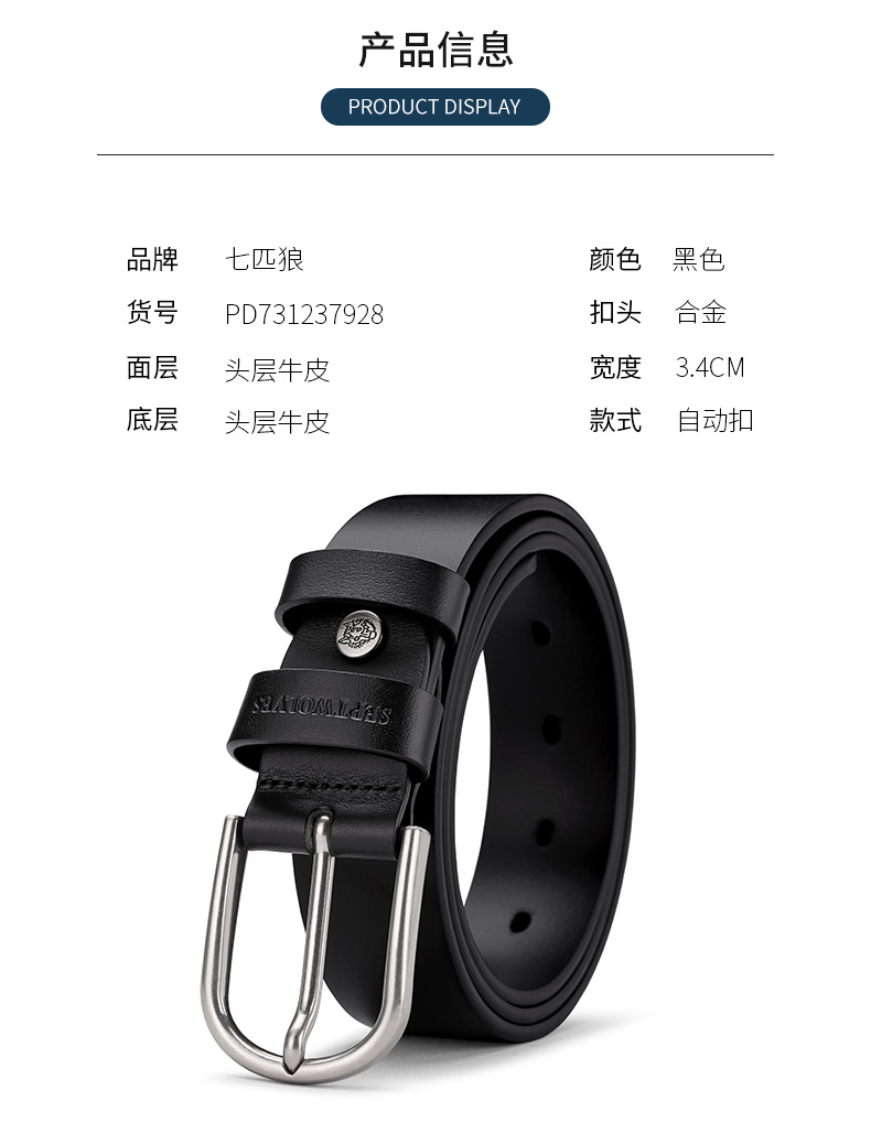 七匹狼(SEPTWOLVES) PD731237928 3.4cm 男士皮带 黑色(单位:根)