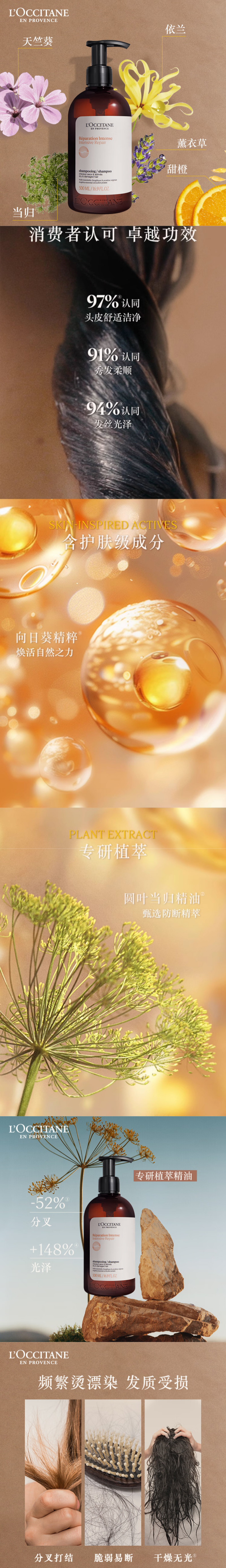 欧舒丹(L'OCCITANE) 草本修护 500ml 洗发露 棕色(单位:瓶)