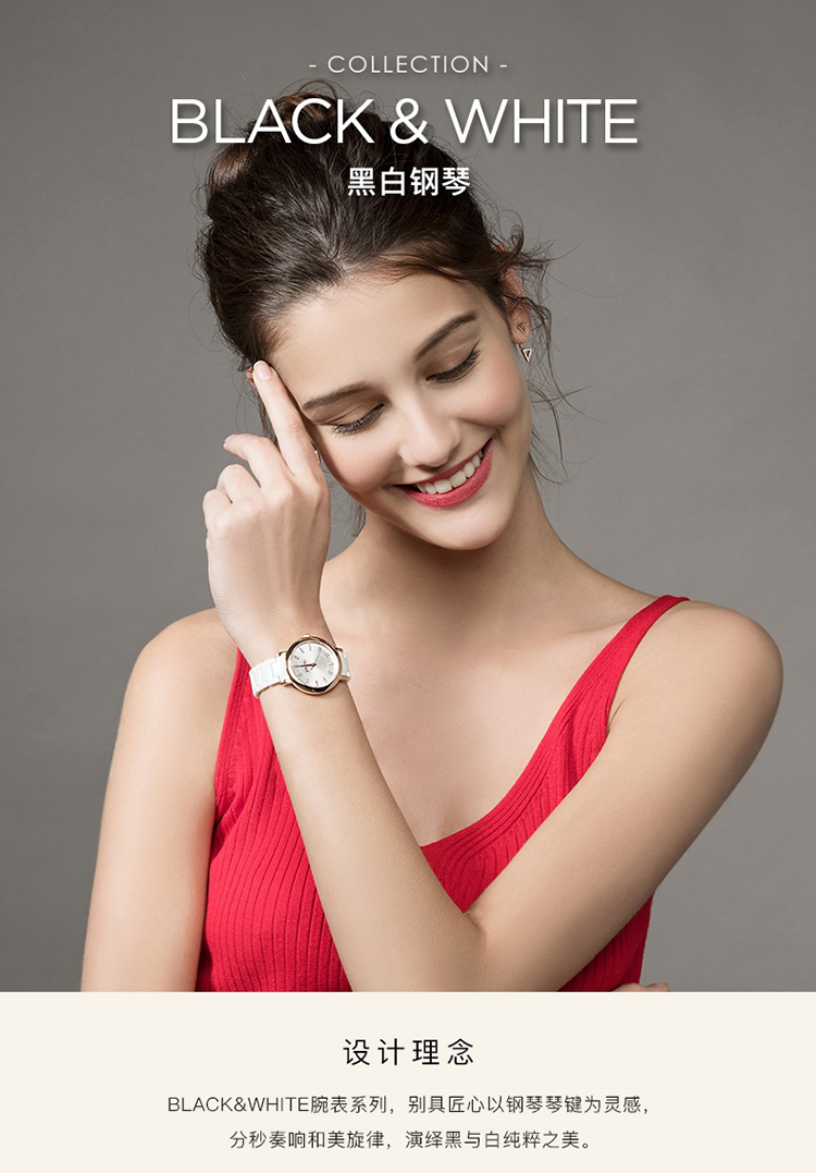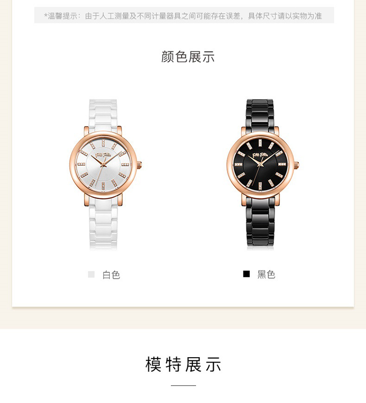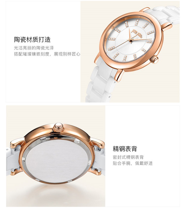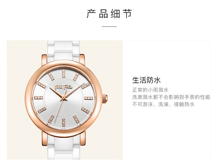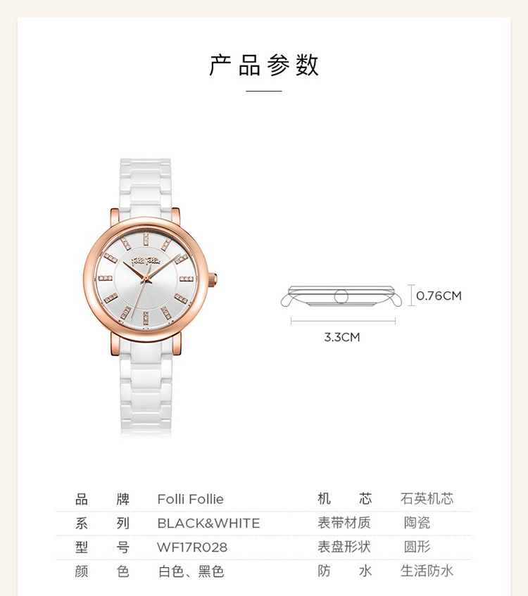 Folli Follie 芙丽 新款陶瓷表带石英手表防水简约腕表 WF17R028BSW-XX/只