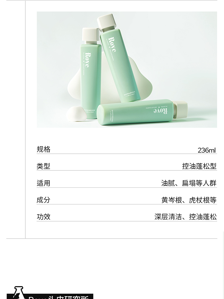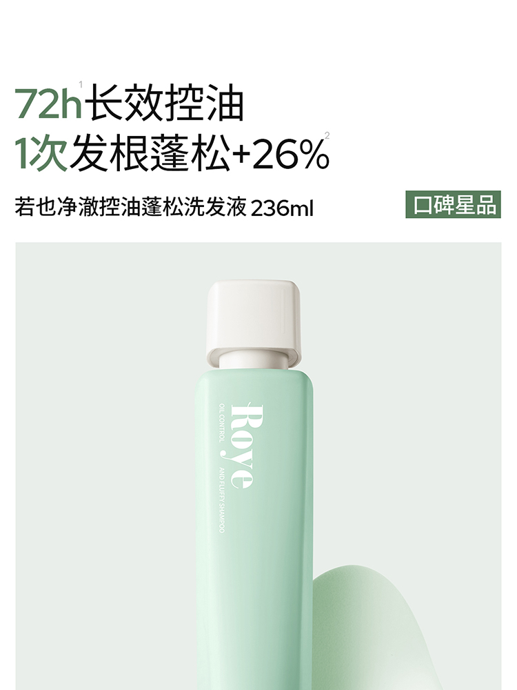 若也(Roye) 控油蓬松型 236ml*1瓶 净澈控油蓬松洗发液 绿色(单位:瓶)