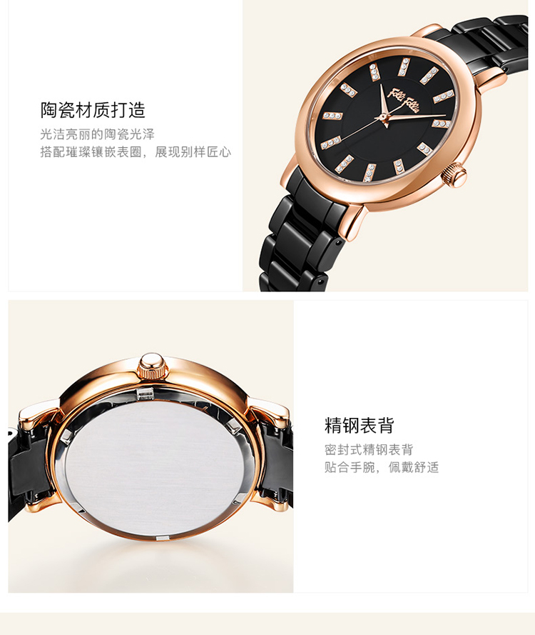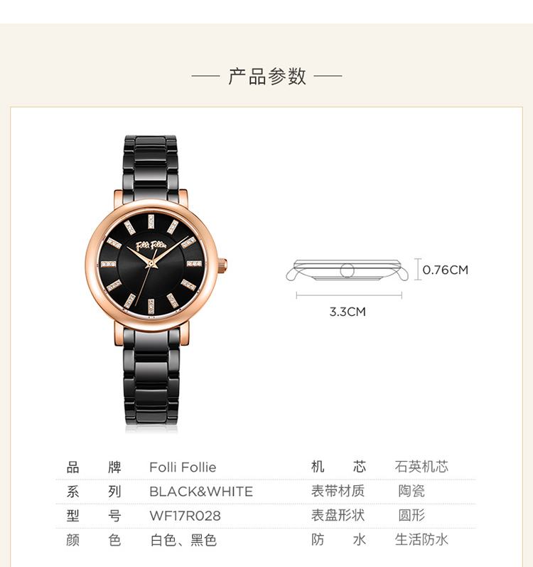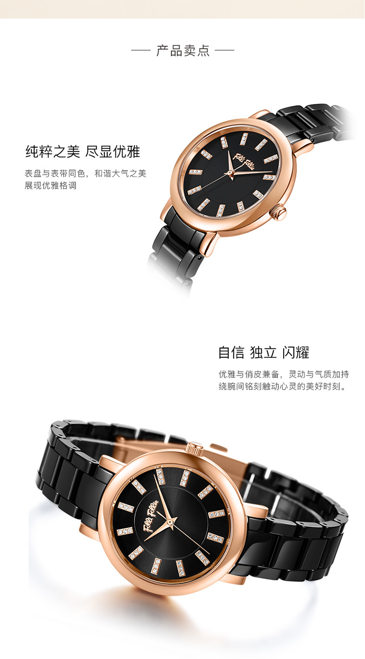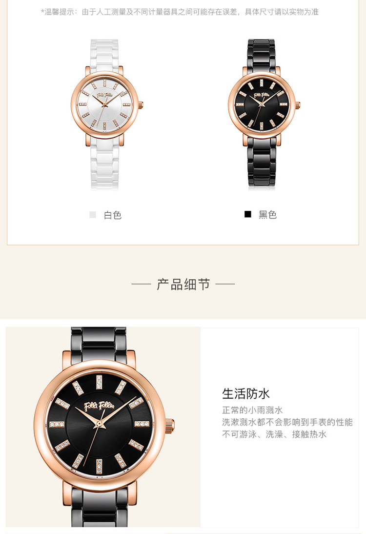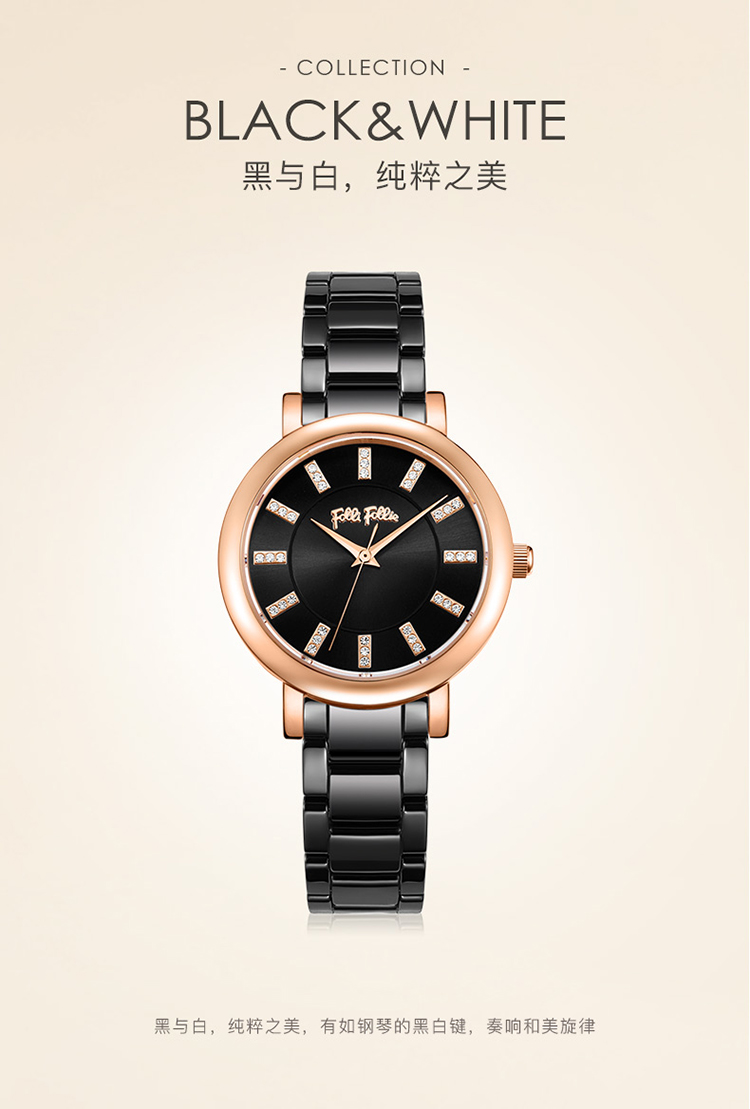 Folli Follie 芙丽 新款陶瓷表带石英手表防水简约腕表 WF17R028BSK-XX/只