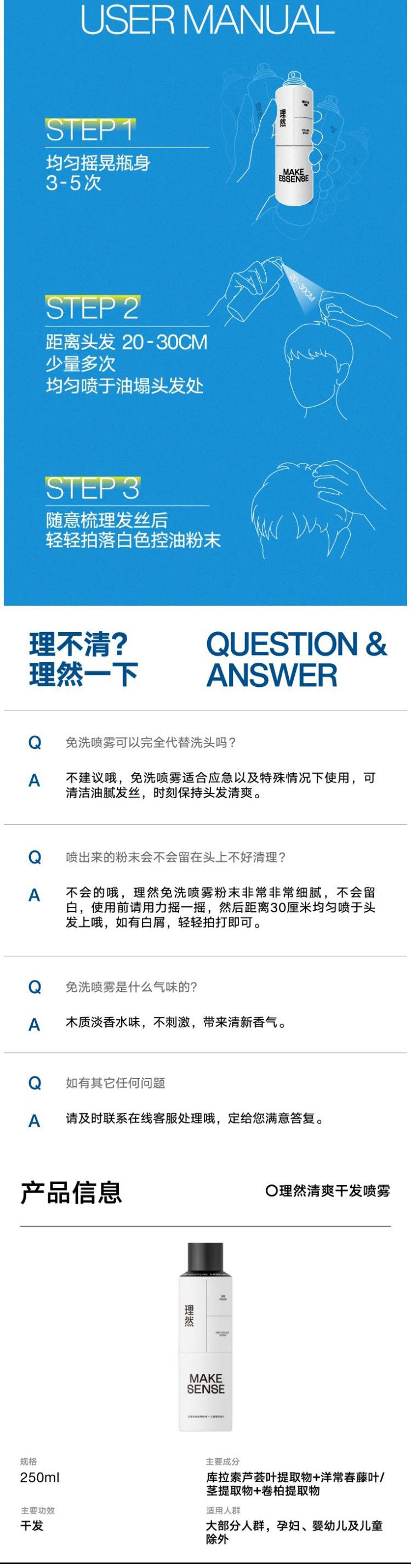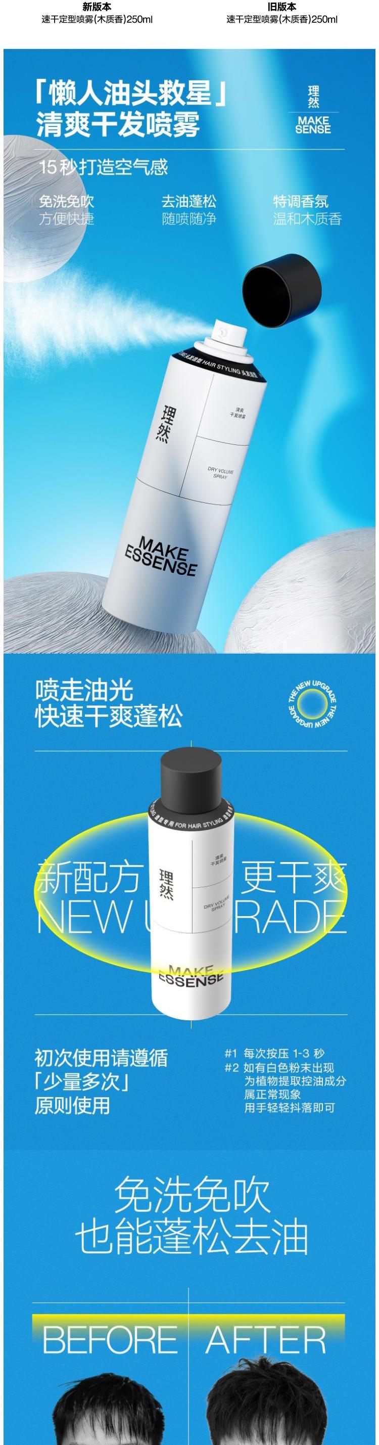 理然 免洗蓬松神器 轻松造型2件套 清爽干发喷雾250ml+速干定型木质香250ml 混色(单位:套)