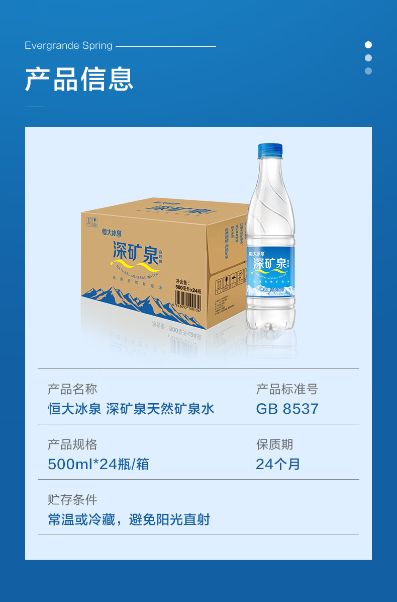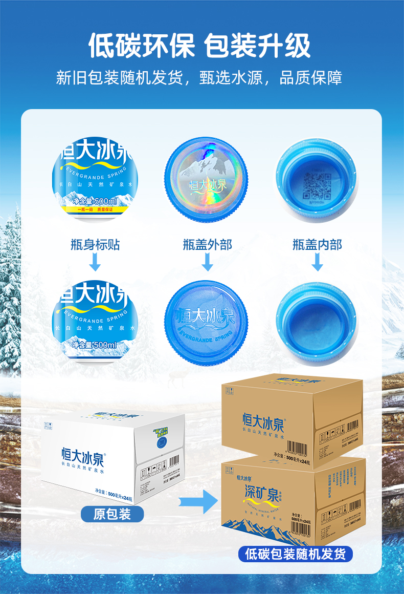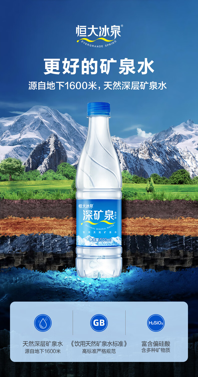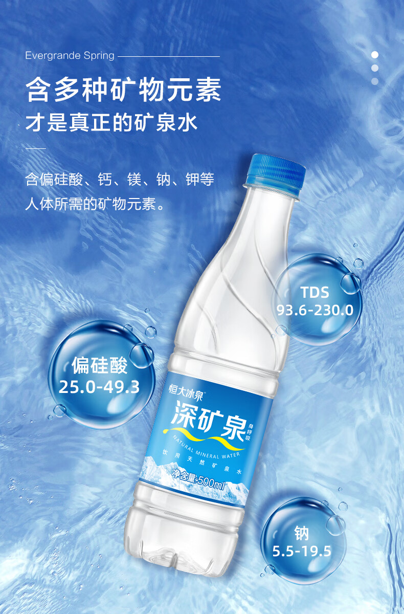 恒大冰泉 矿泉水 500ML*24瓶 天然 蓝色(单位:箱)