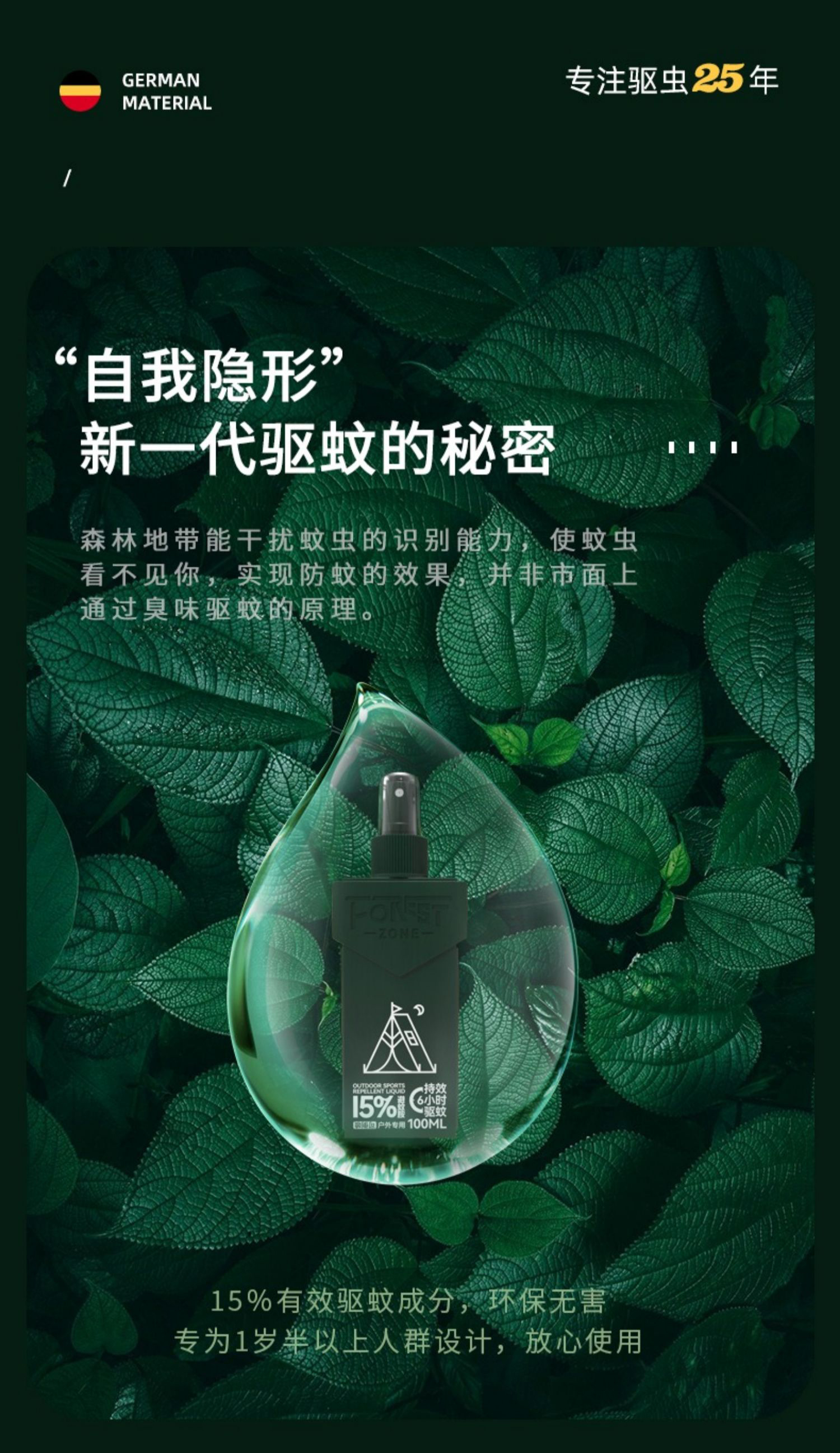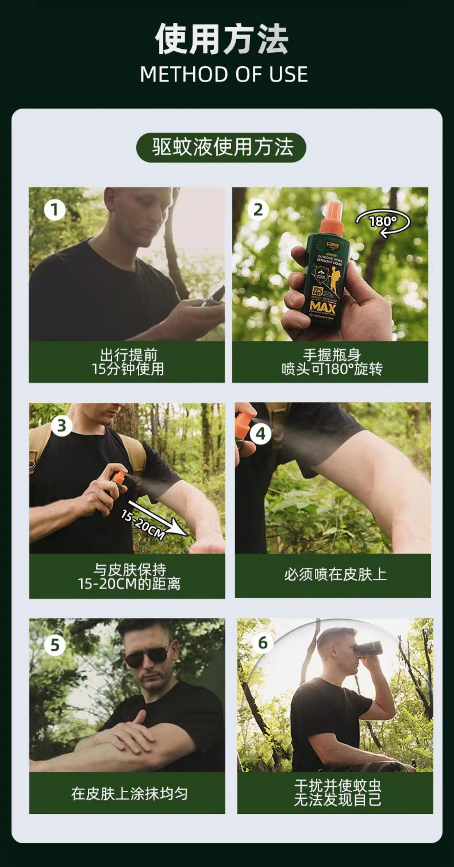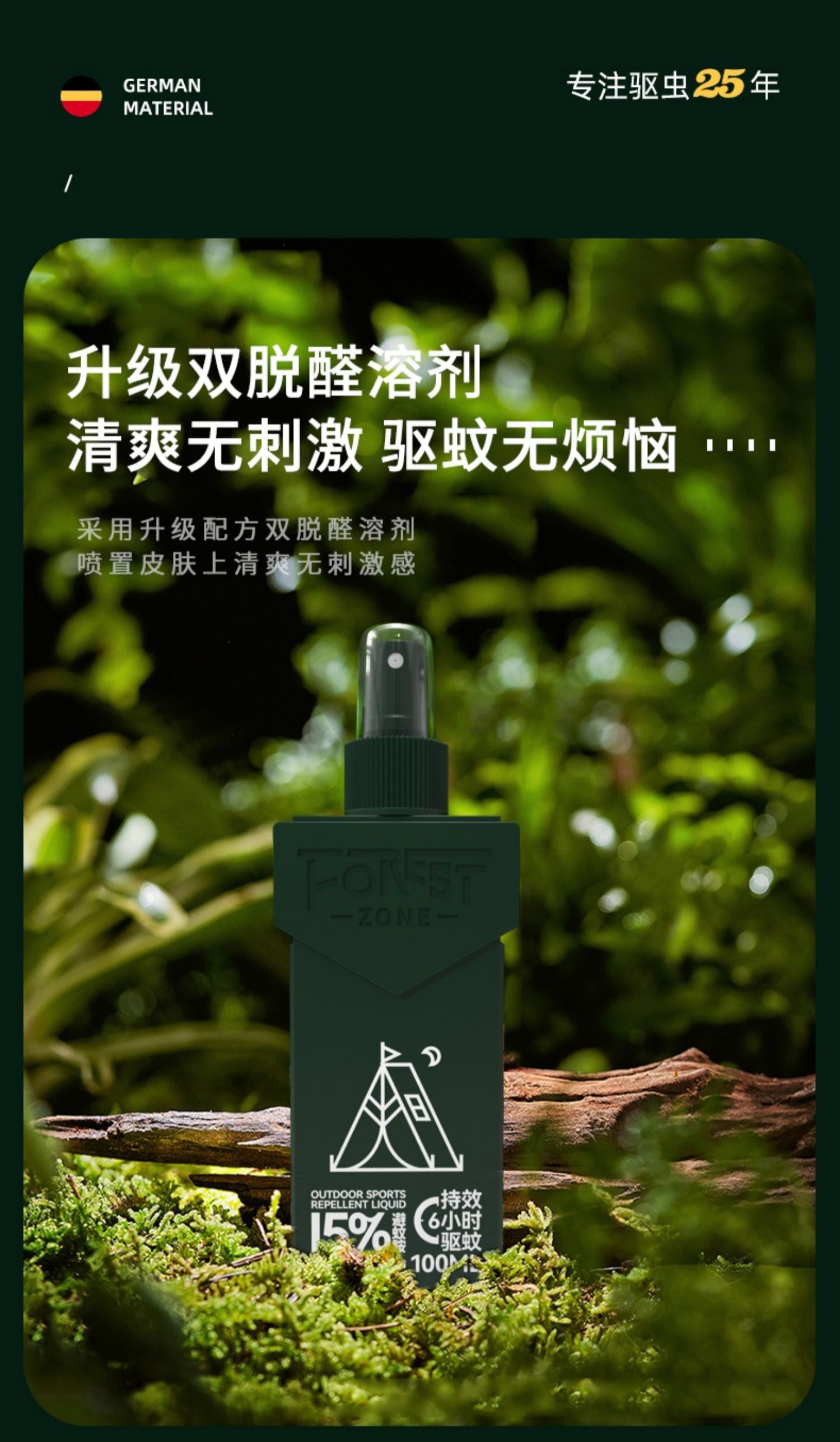 森林地带 15%避蚊胺 洋甘菊 100ML/瓶*3 驱蚊液 军绿色(单位:组)