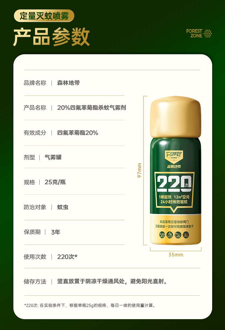 森林地带 20%四氟苯菊酯 25g/瓶*2 杀蚊喷雾剂 军绿色(单位:组)