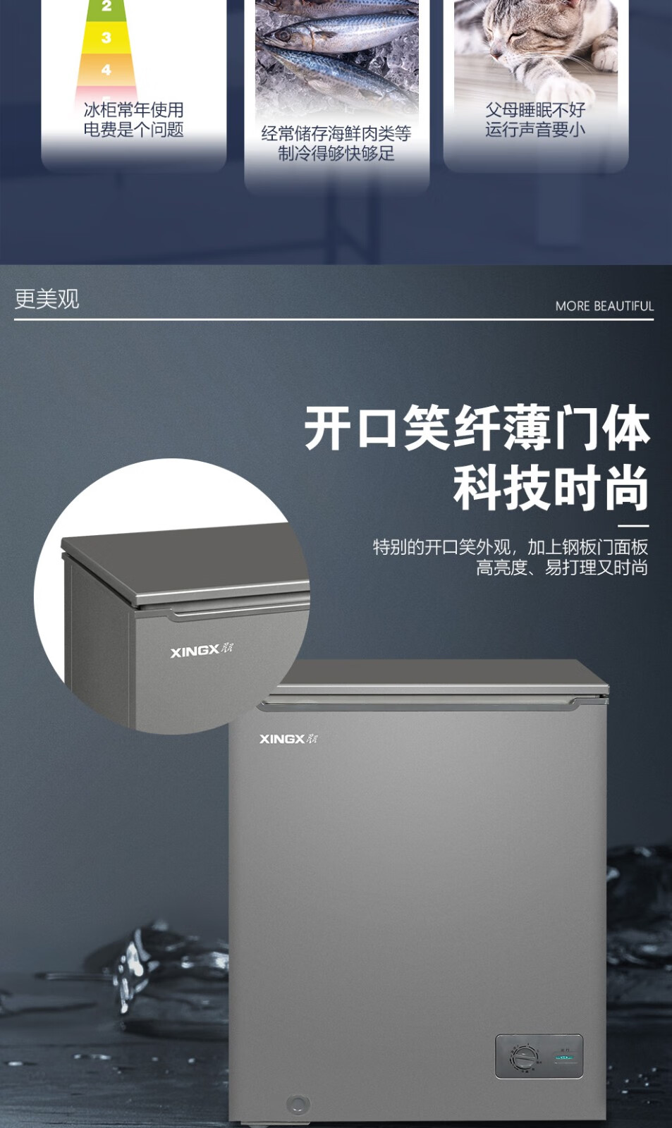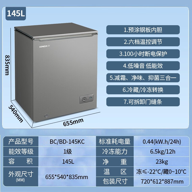 星星(XINGX) 家用小型冰柜单温一级能效 BD/BC-145KC 145L 钢色(单位:台)