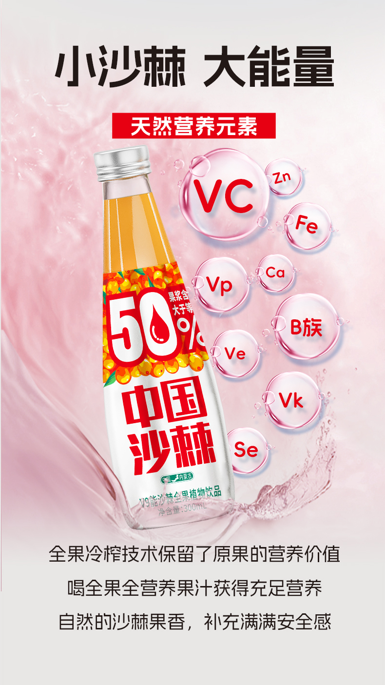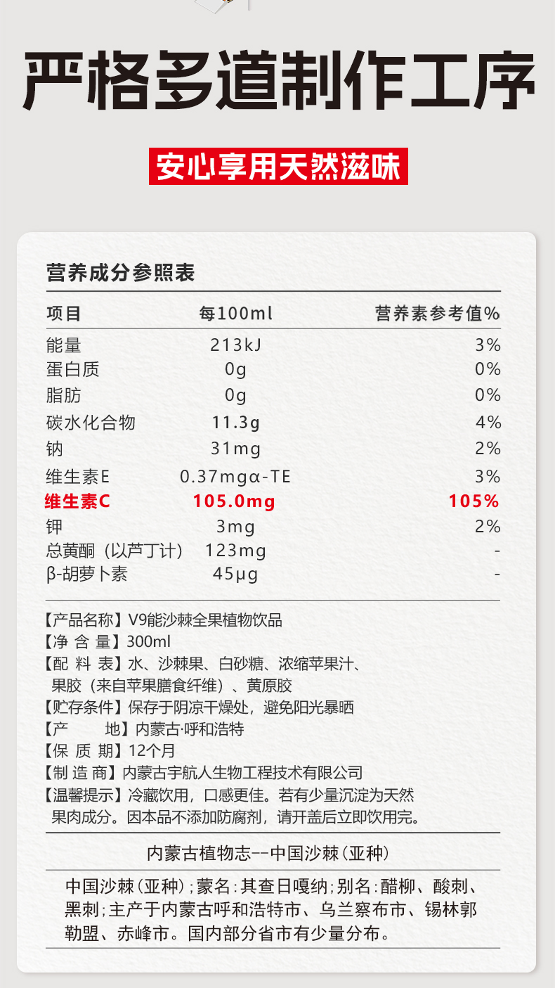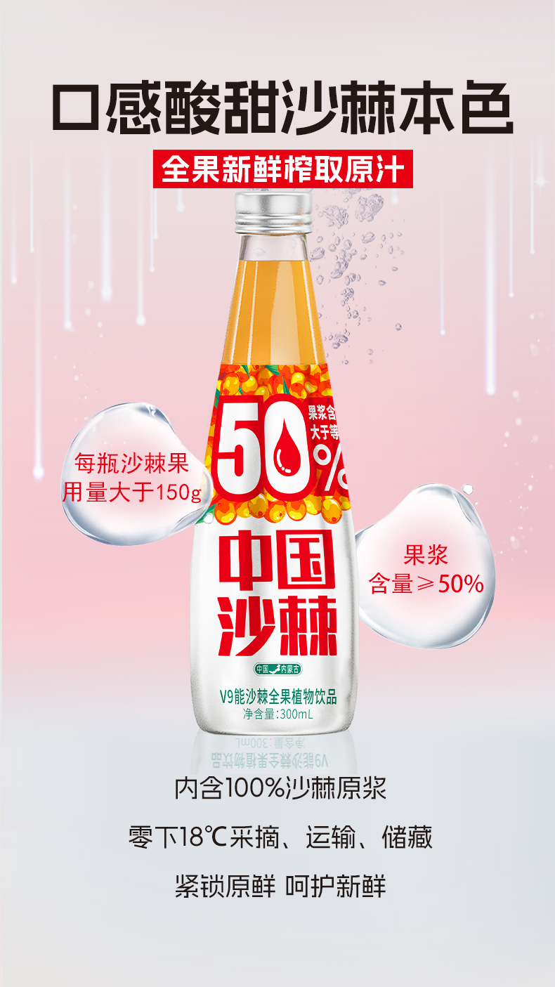 宇航人 V9能沙棘全果植物饮 300ml*6瓶/箱 酸甜可口新鲜榨取 橙色(单位:箱)