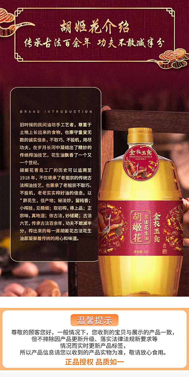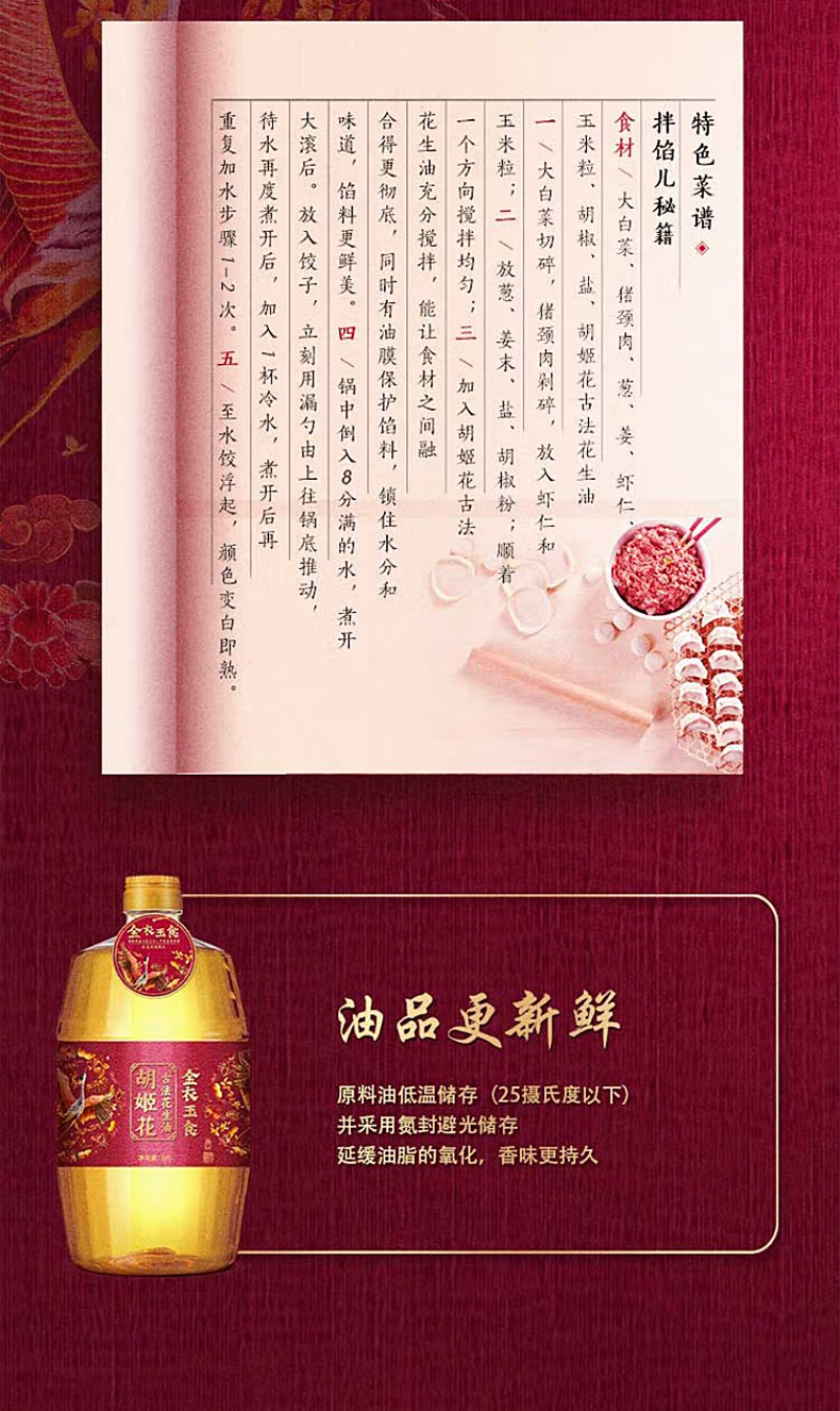 胡姬花 金衣玉食花生油 5L 品牌臻礼 灰橙色(单位:瓶)