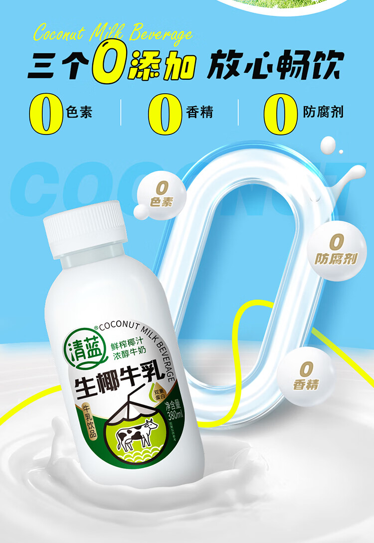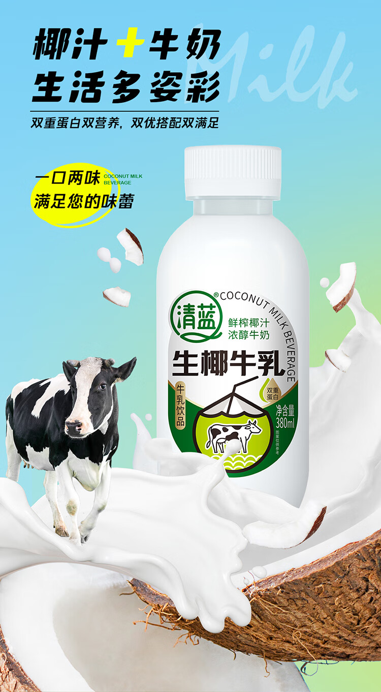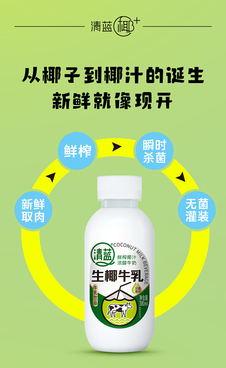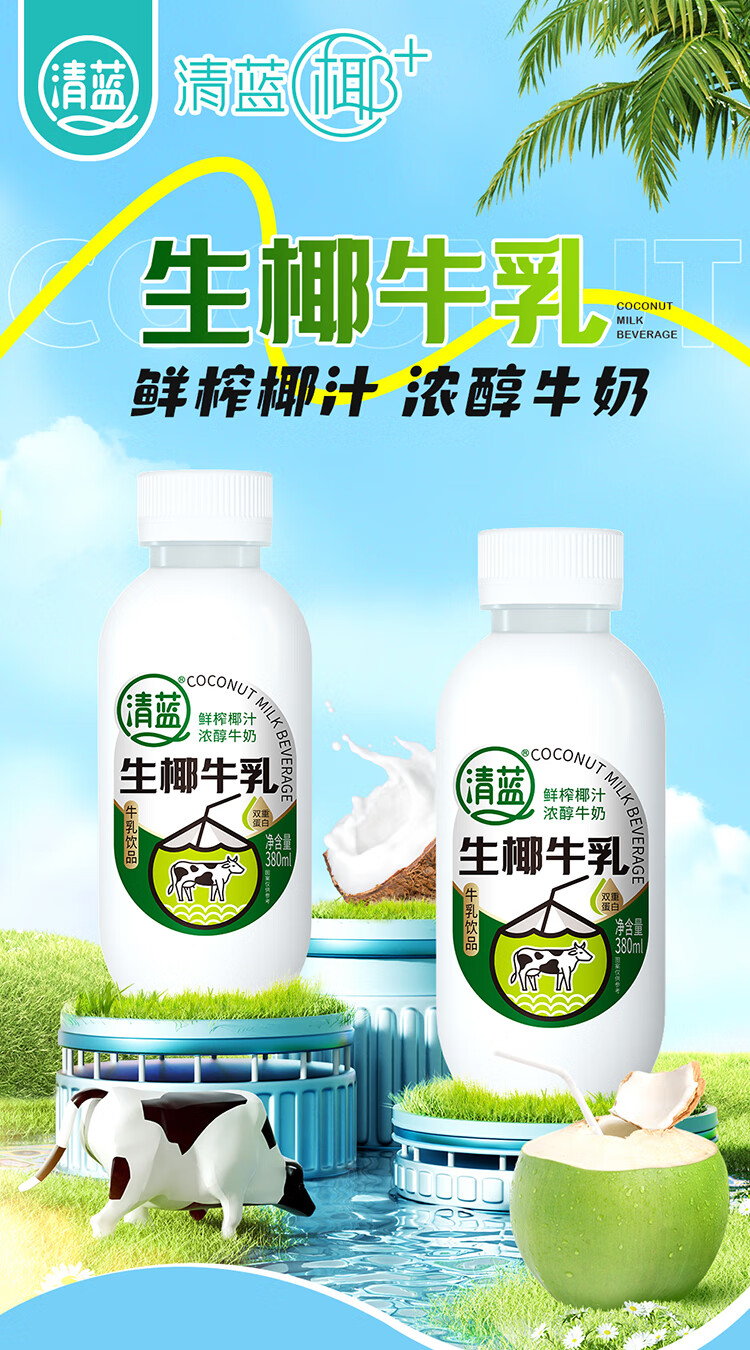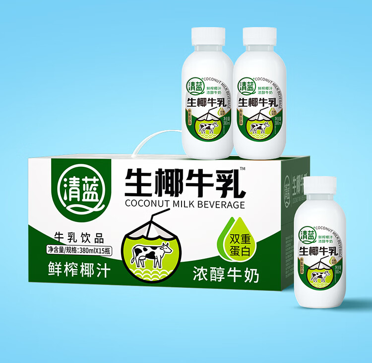 清蓝 生椰牛乳 380ml*15瓶 椰奶双蛋白饮料 雾雨绿(单位:箱)