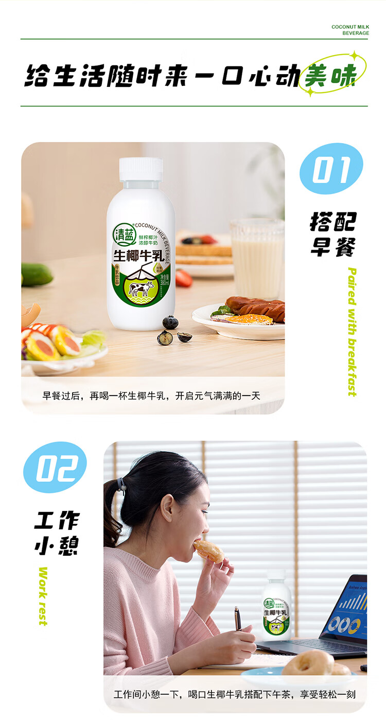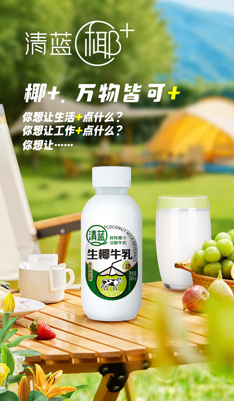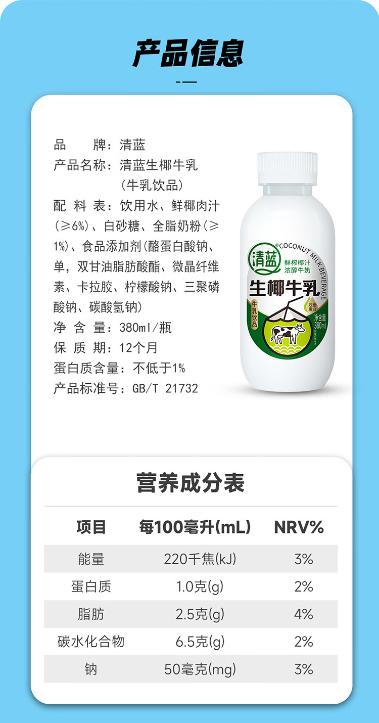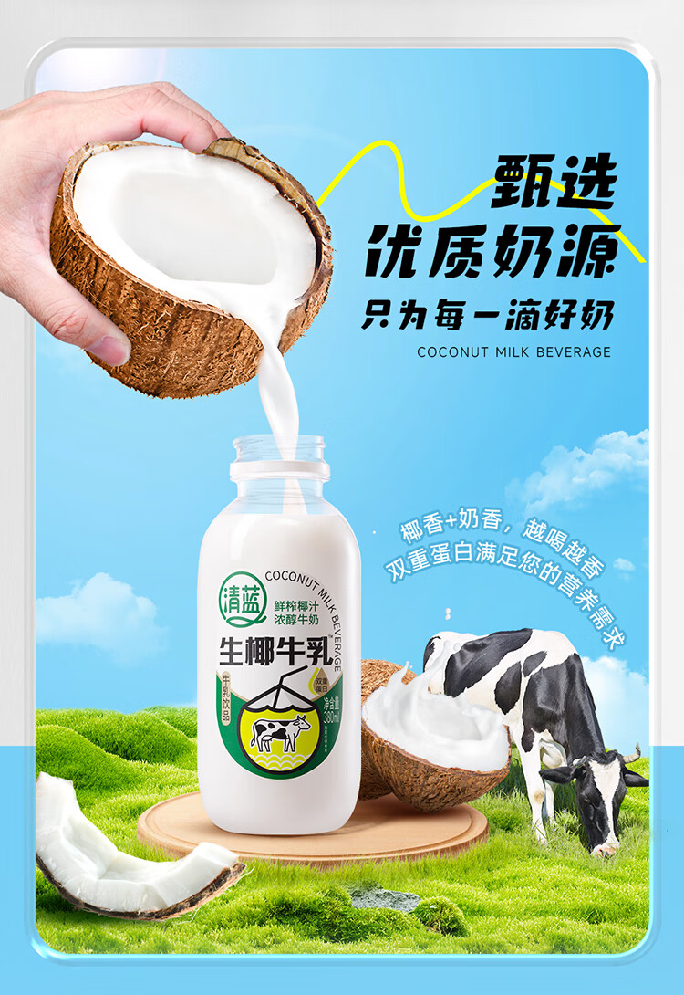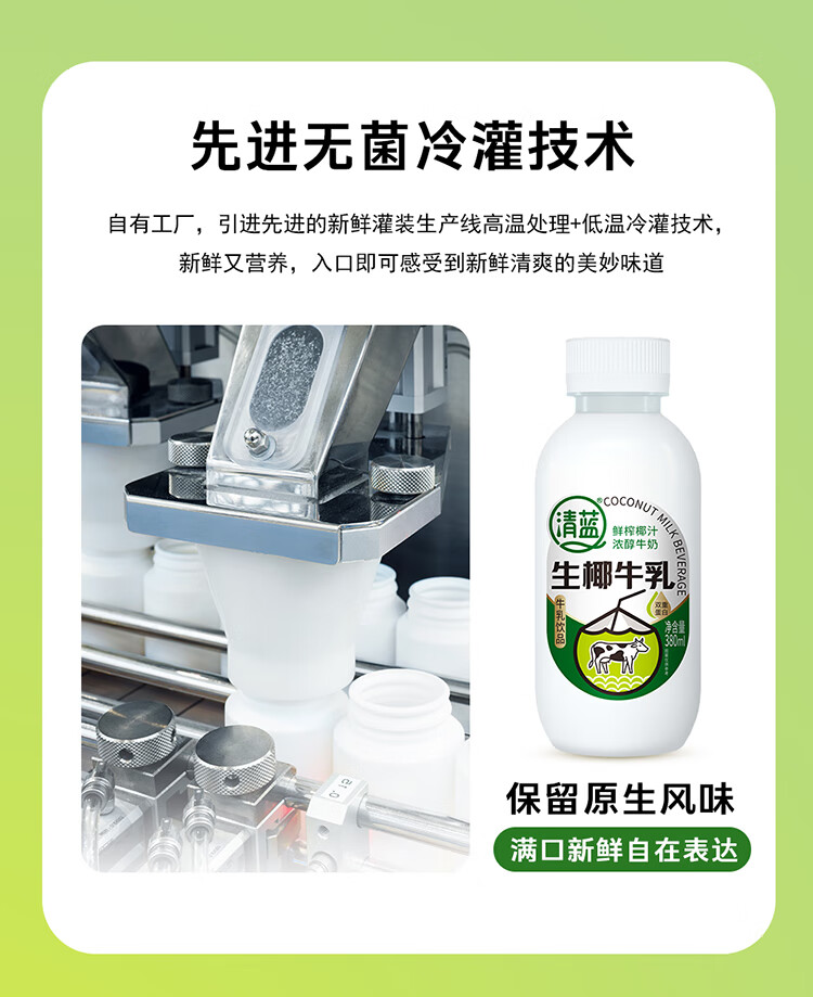 清蓝 生椰牛乳 380ml*15瓶 椰奶双蛋白饮料 雾雨绿(单位:箱)