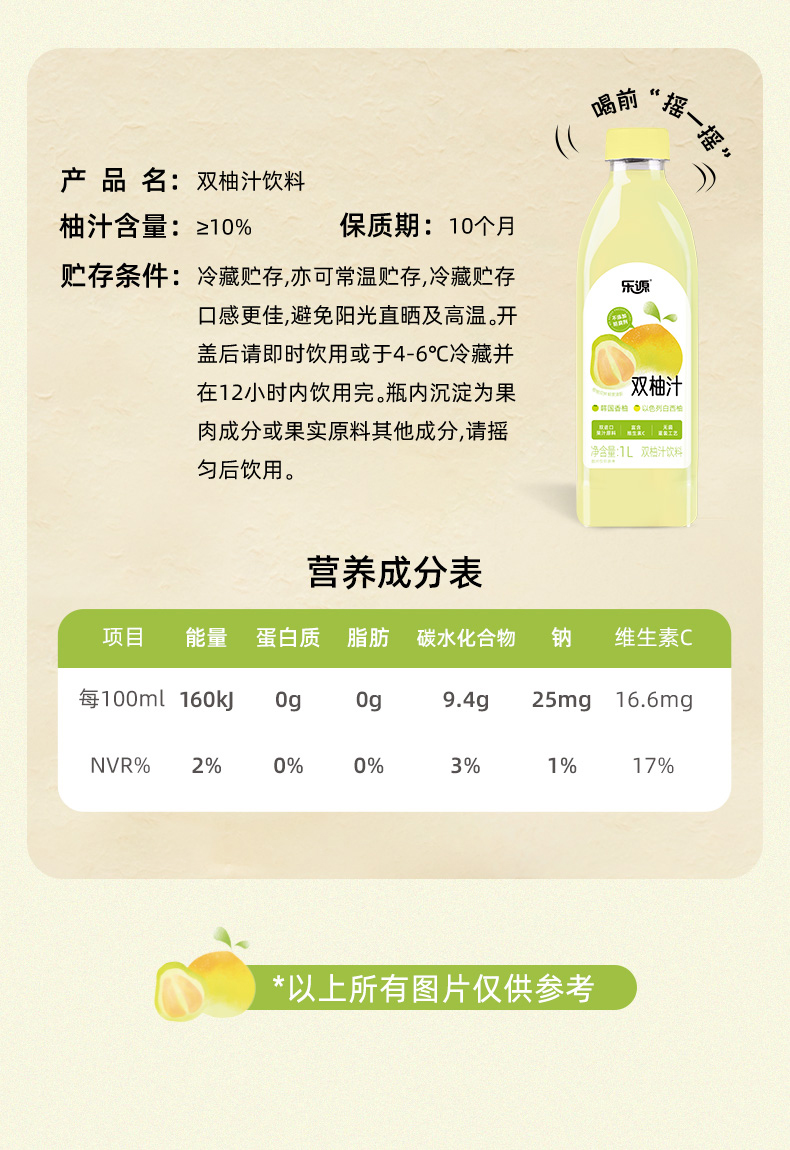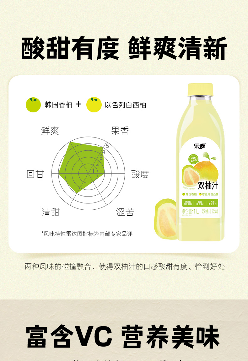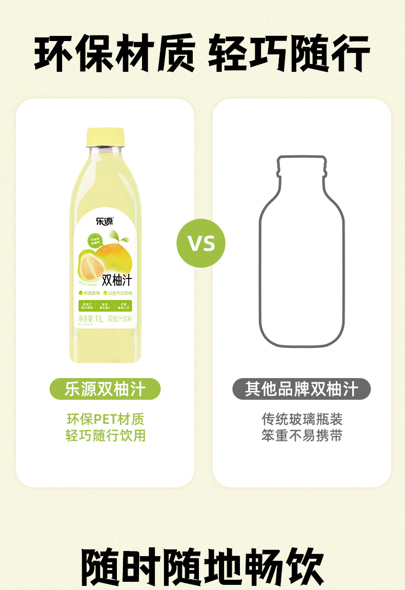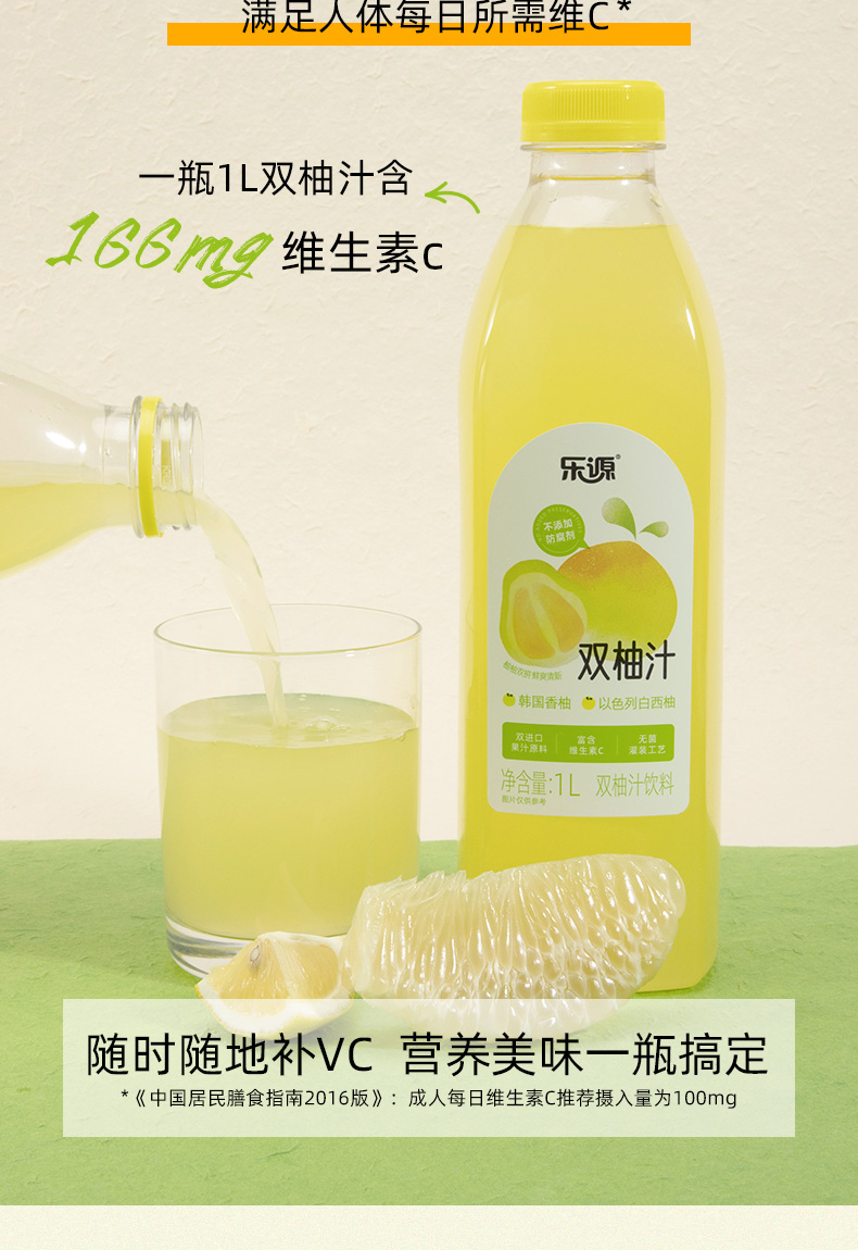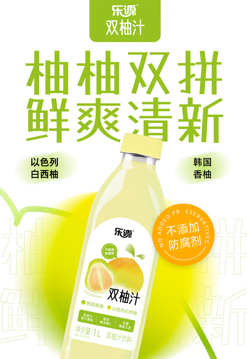 乐源 双柚汁 1L*2瓶 鲜爽清新 奶茶杏(单位:组)