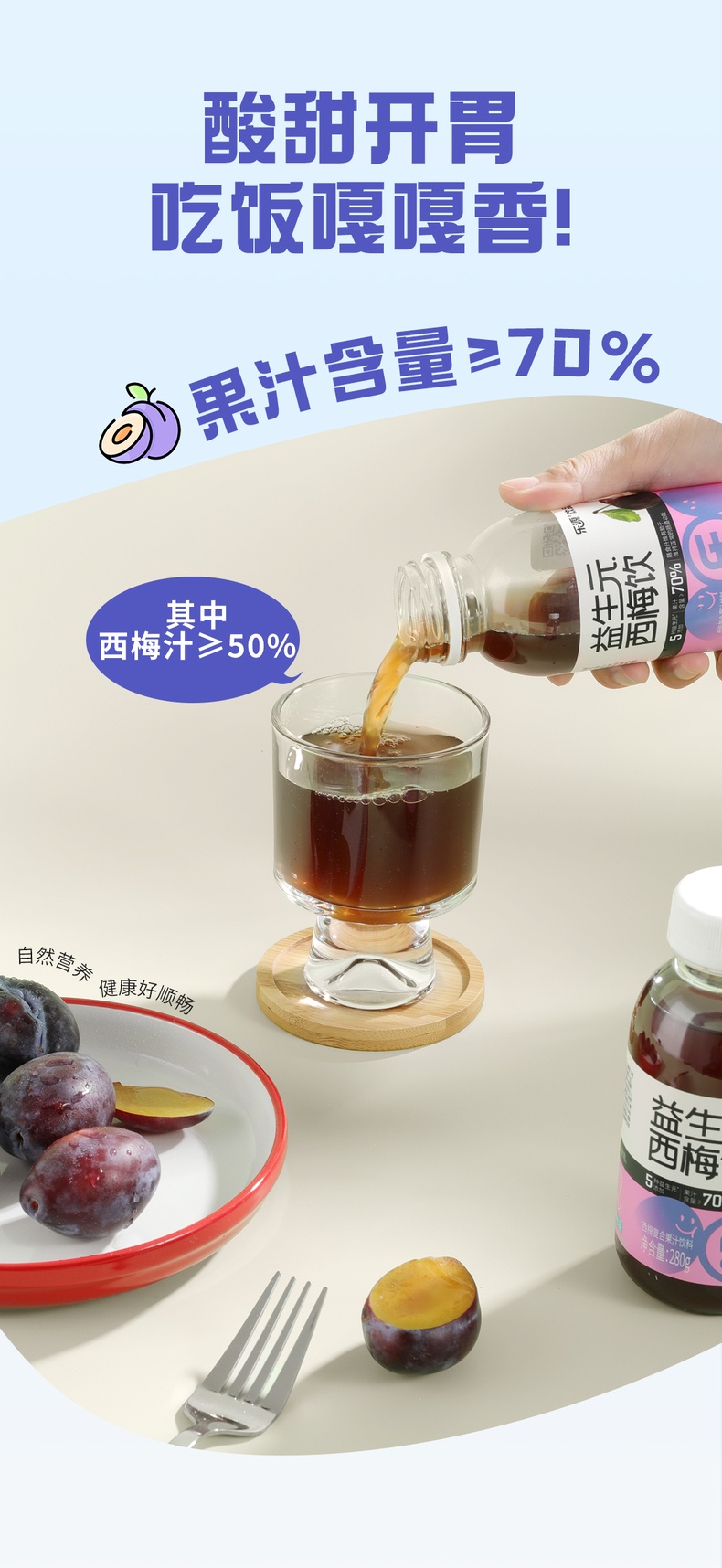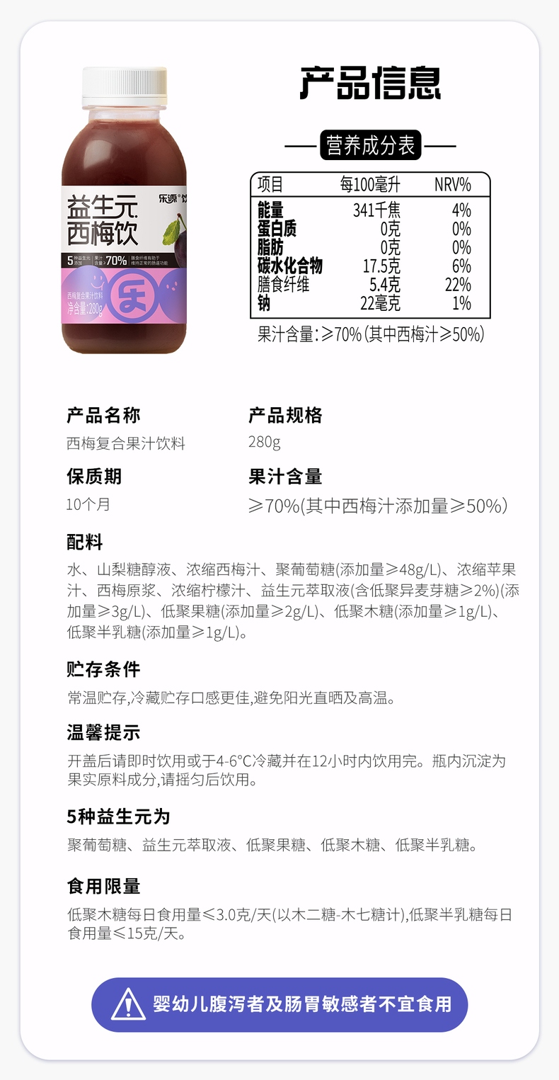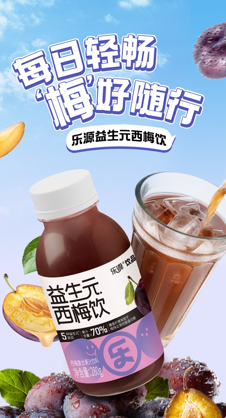 乐源 益生元西梅饮 280克*8瓶 酸甜开胃,添加益生元 紫色(单位:组)