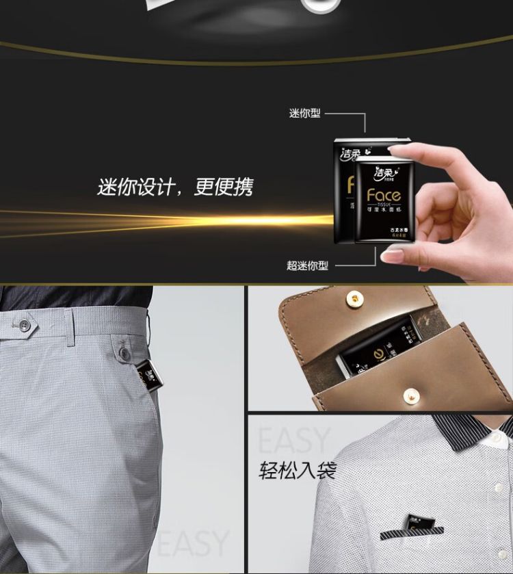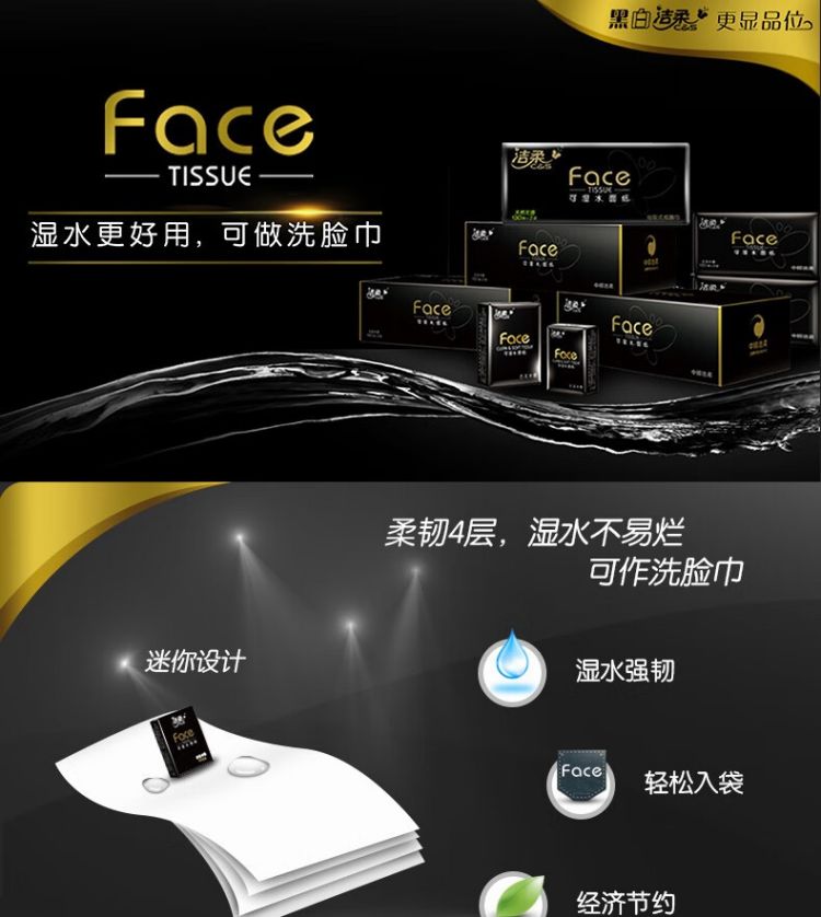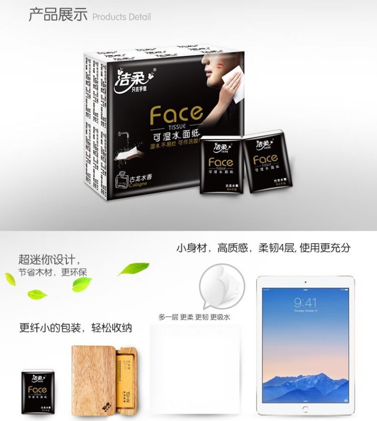 洁柔(C&S) 黒Face手帕纸 BU084古龙香 4层6片36包 黑色(单位:组)