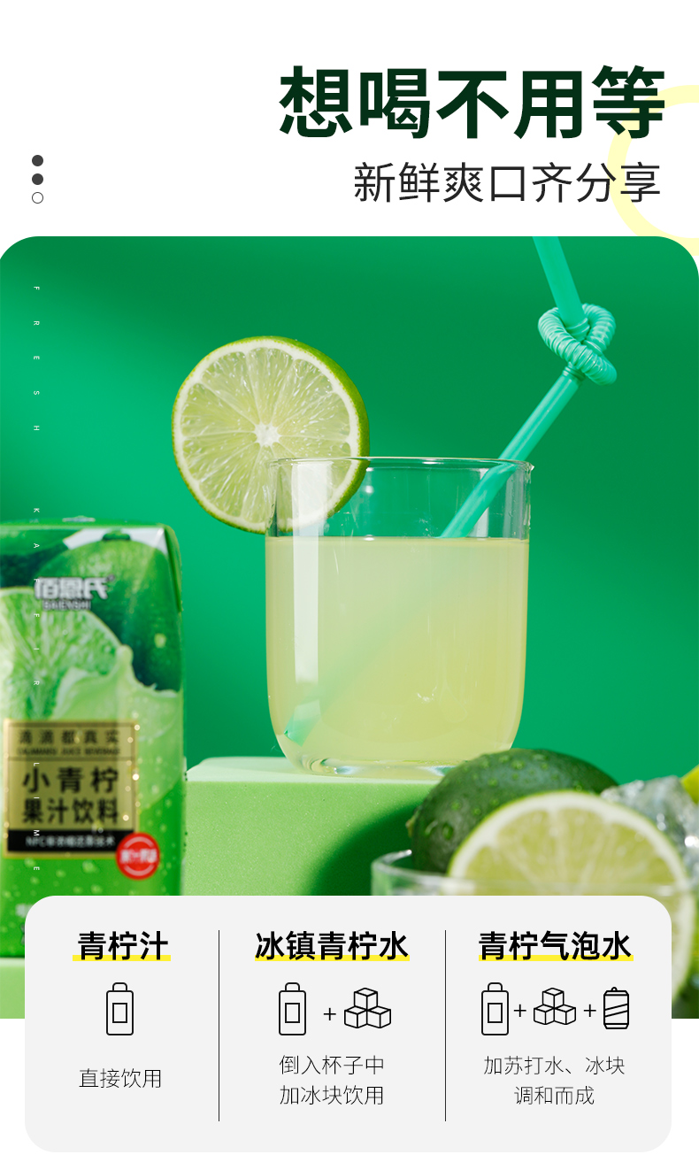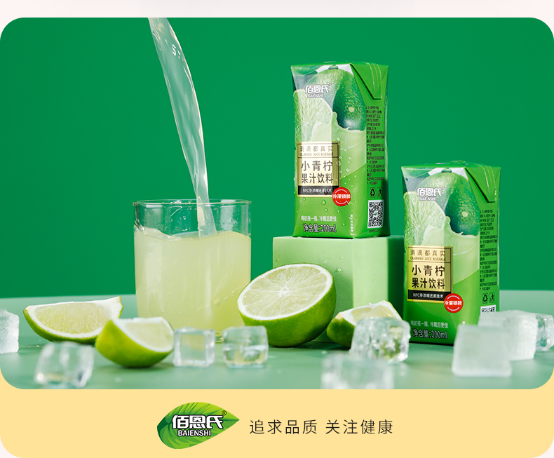佰恩氏/BAIENSHI 小青柠汁柠檬饮料 NFC果汁 200ml*12瓶 松石绿(单位:组)