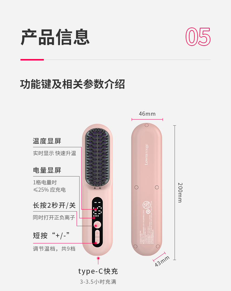 罗拉如炬(Lowra-rouge) SL-630 礼盒款 35W 直发梳 茱萸粉(单位:台)