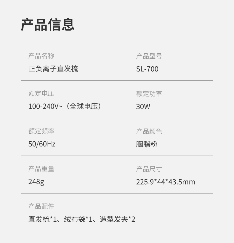 罗拉如炬(Lowra-rouge) SL-700 30W 直发梳 粉色(单位:台)