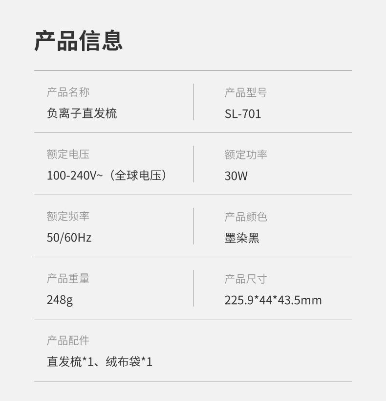 罗拉如炬(Lowra-rouge) SL-701 30W 直发梳 黑色(单位:台)