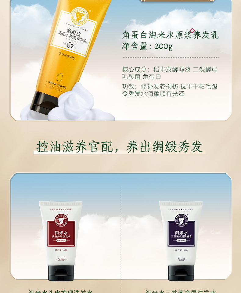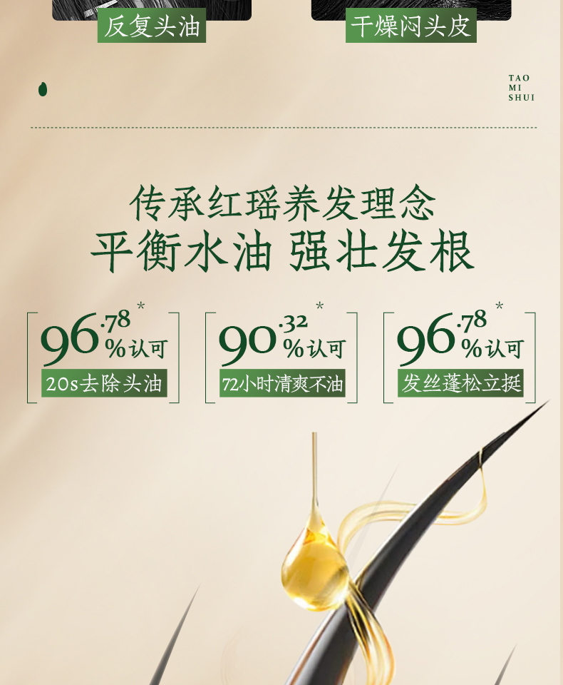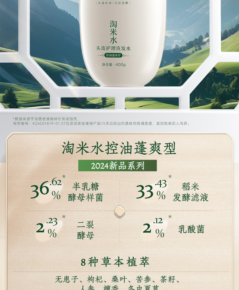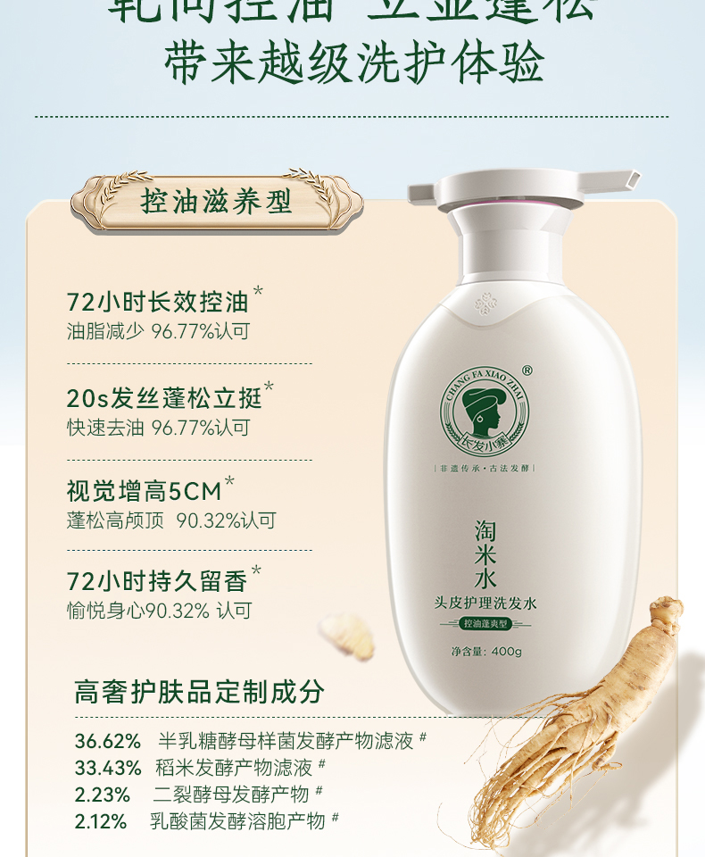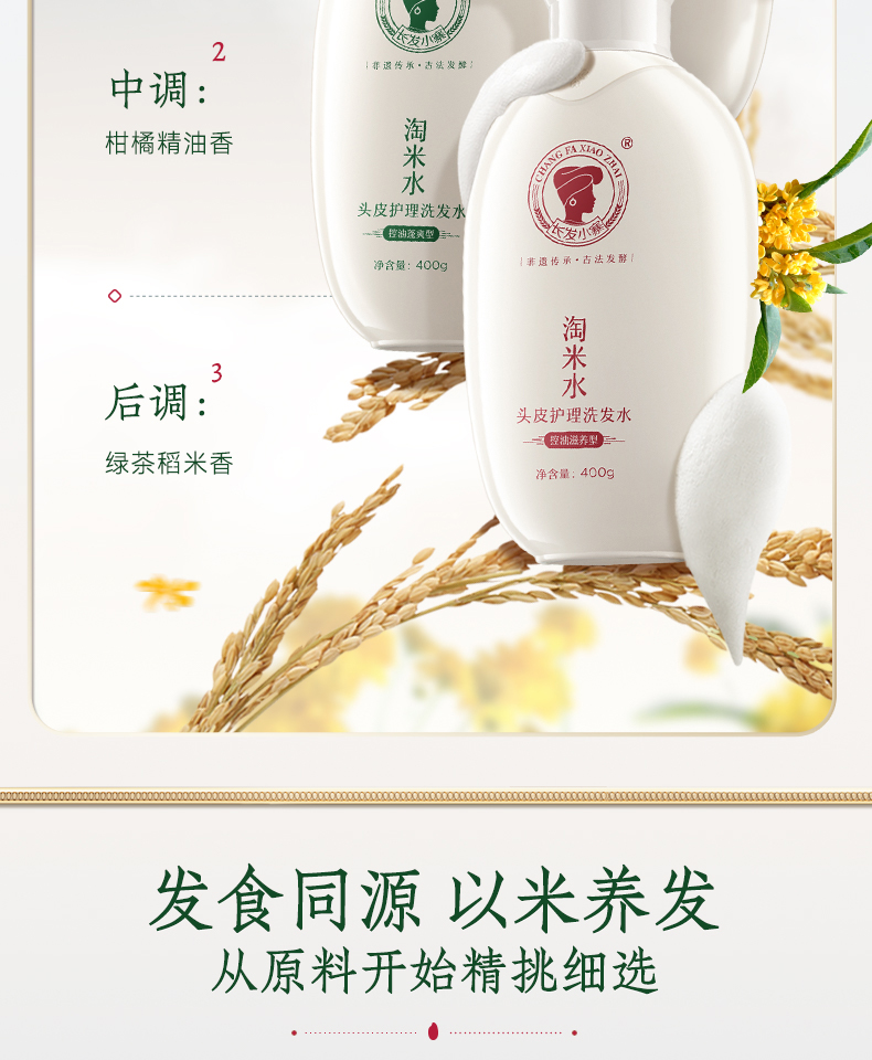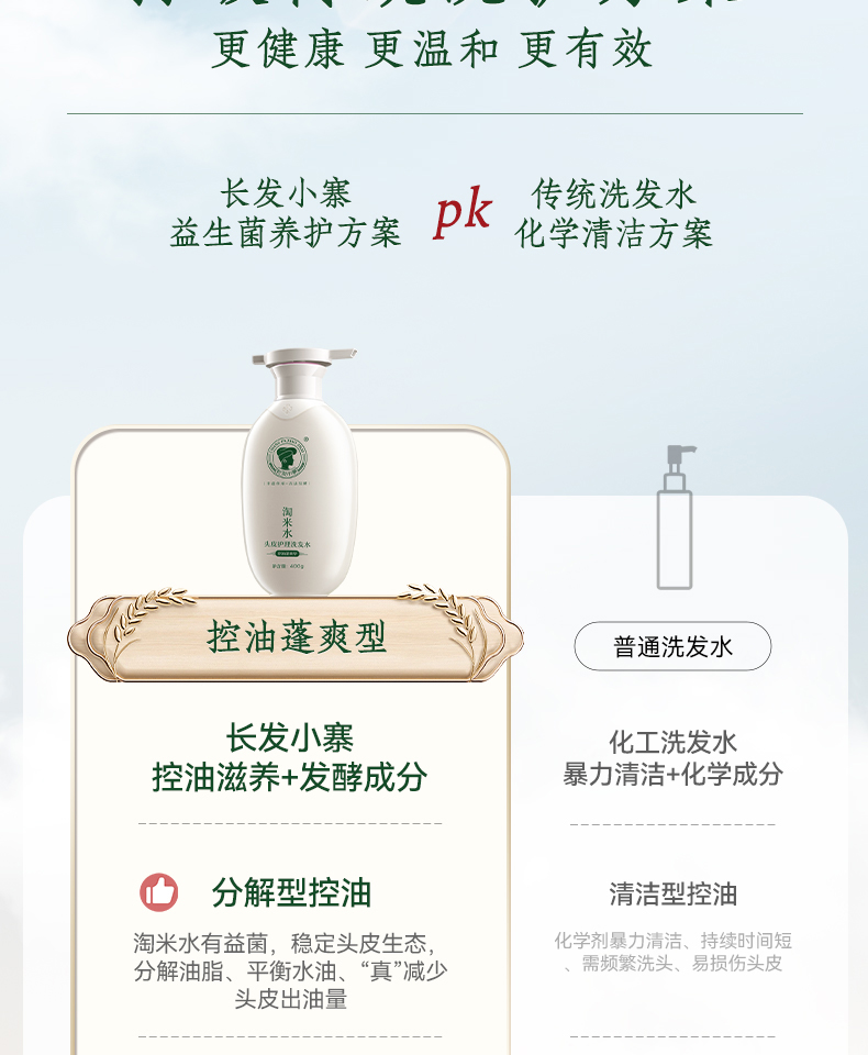 长发小寨 (控油蓬爽型) 400g 淘米水头皮护理洗发水 白色(单位:瓶)