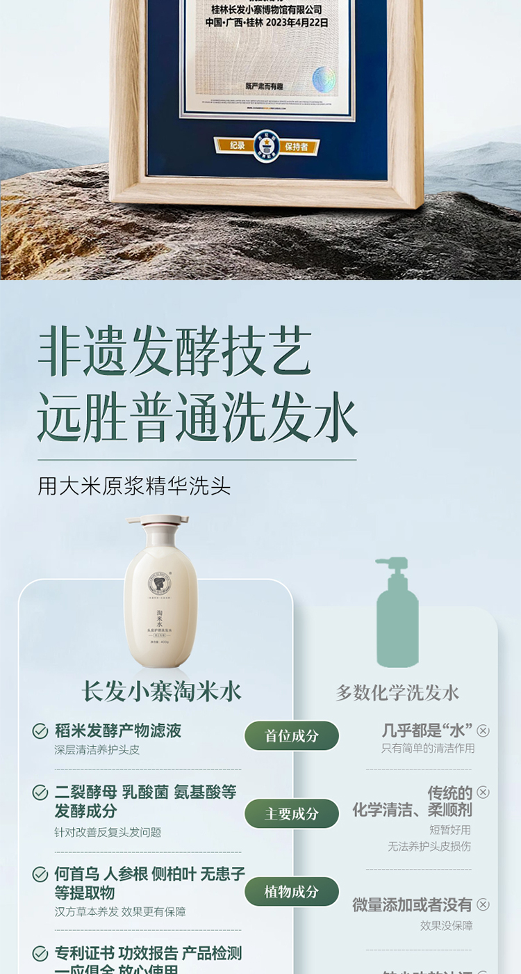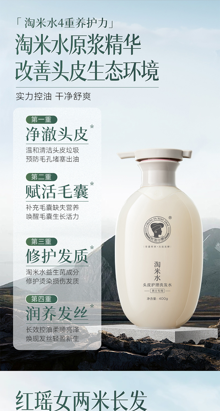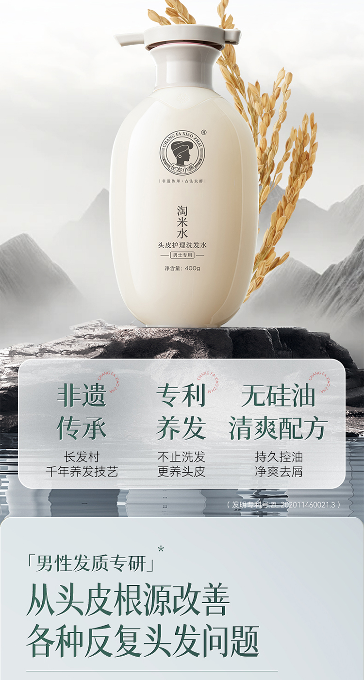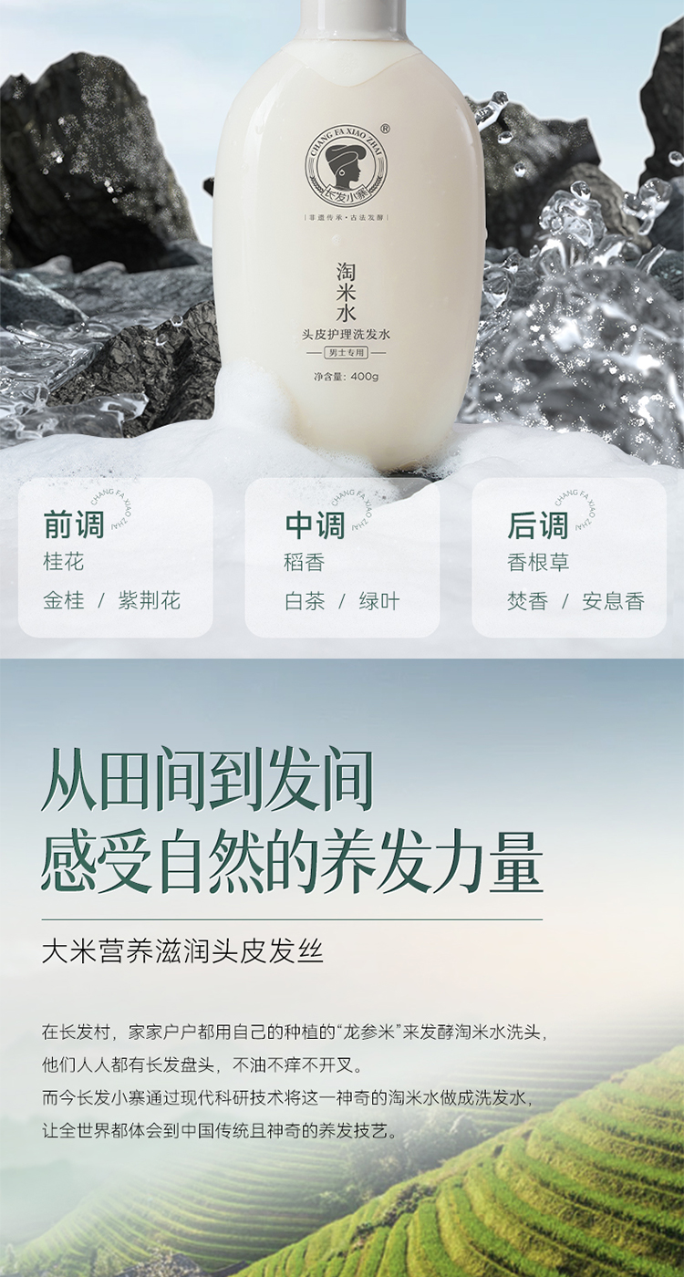 长发小寨 (男士专用) 400g 淘米水头皮护理洗发水 白色(单位:瓶)
