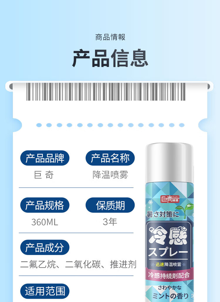 巨奇(JUQI) 降温喷雾 360ml*3瓶 凉爽冷却 蓝色(单位:套)