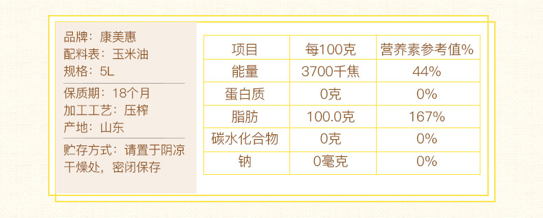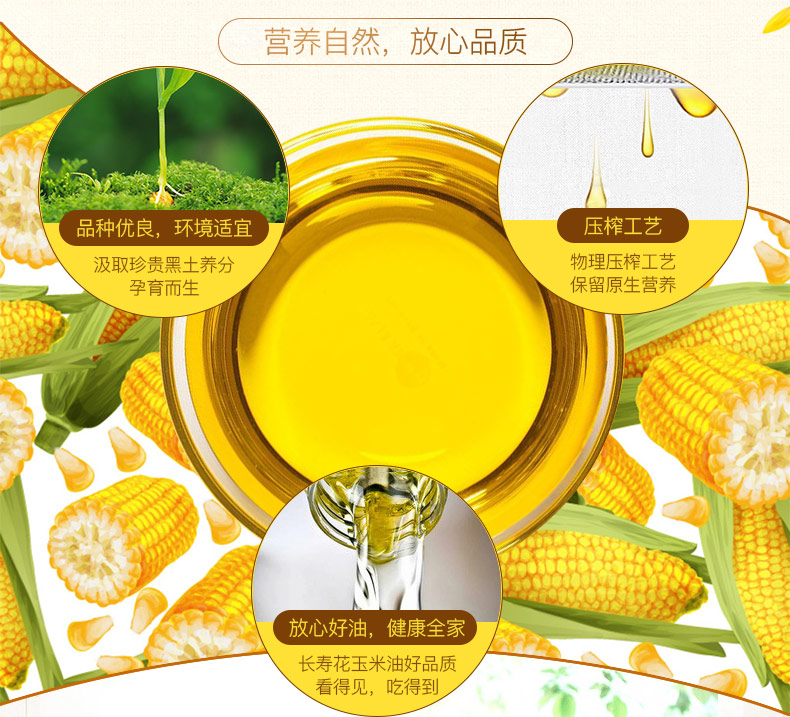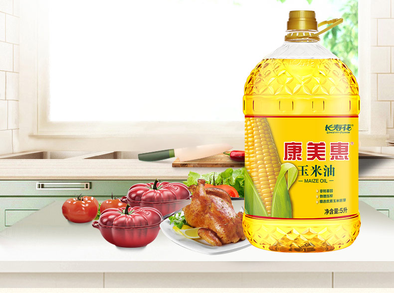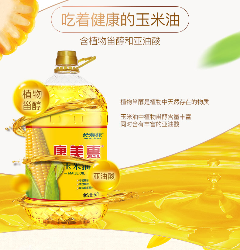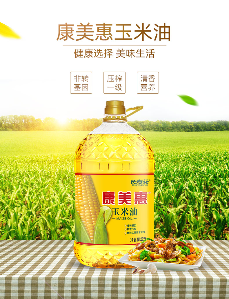 长寿花 非转基因物理压榨食用油 康美惠玉米油 5L*1桶 黄色(单位:桶)