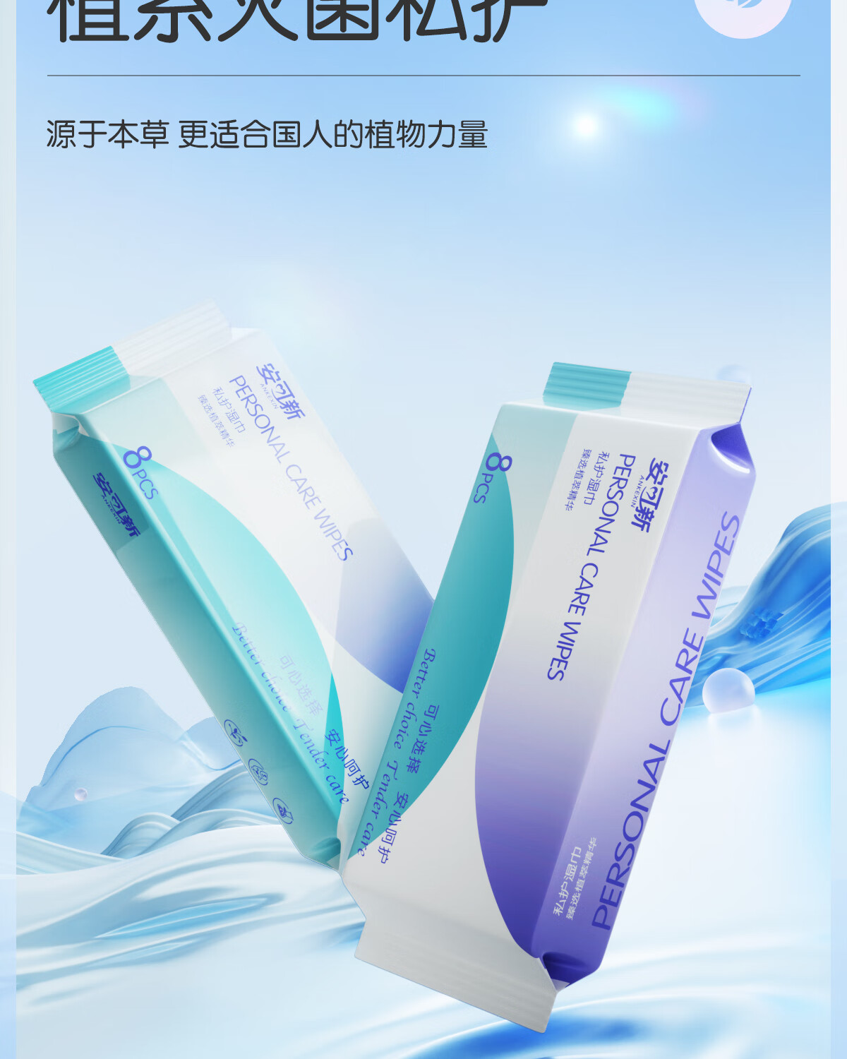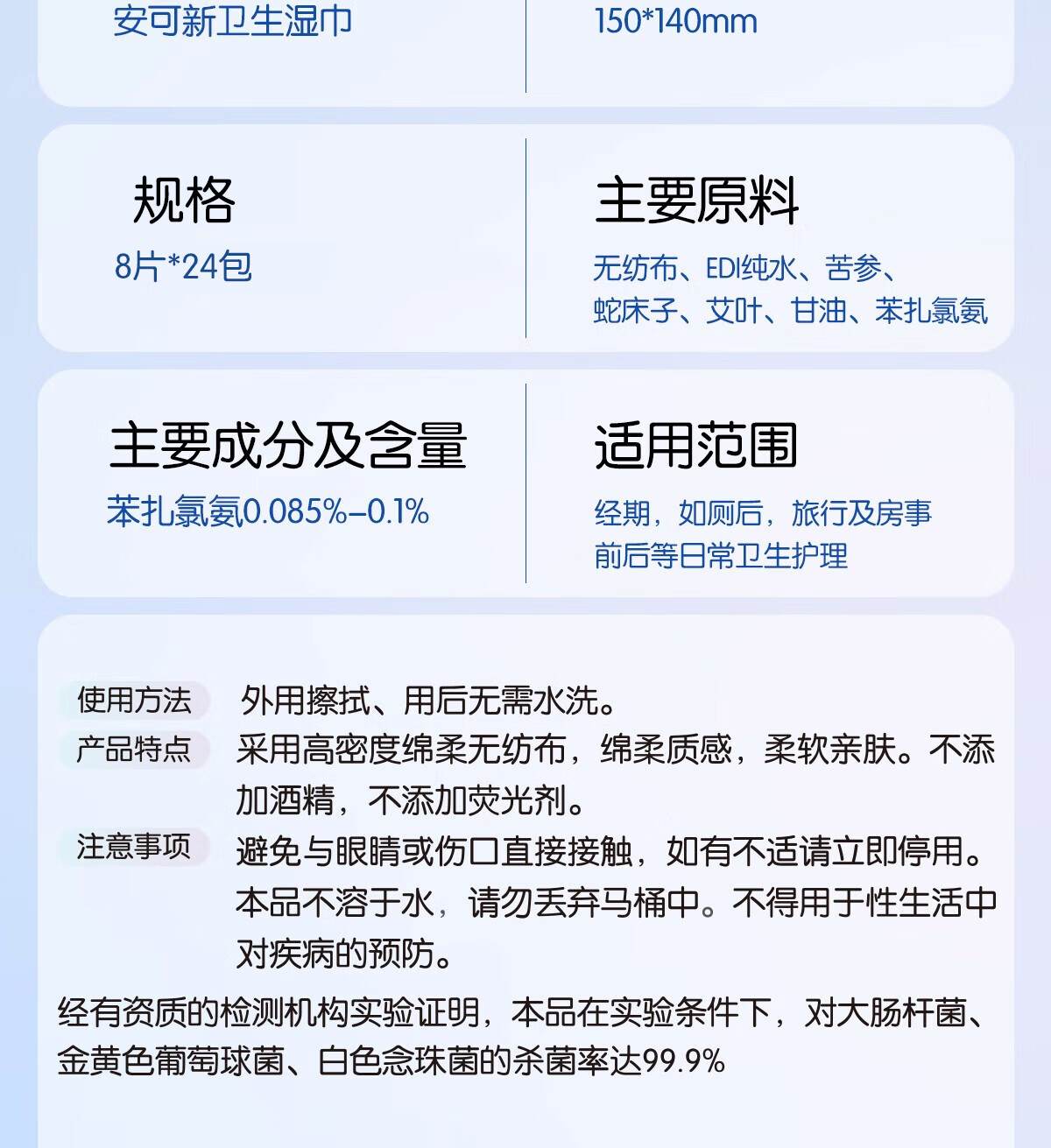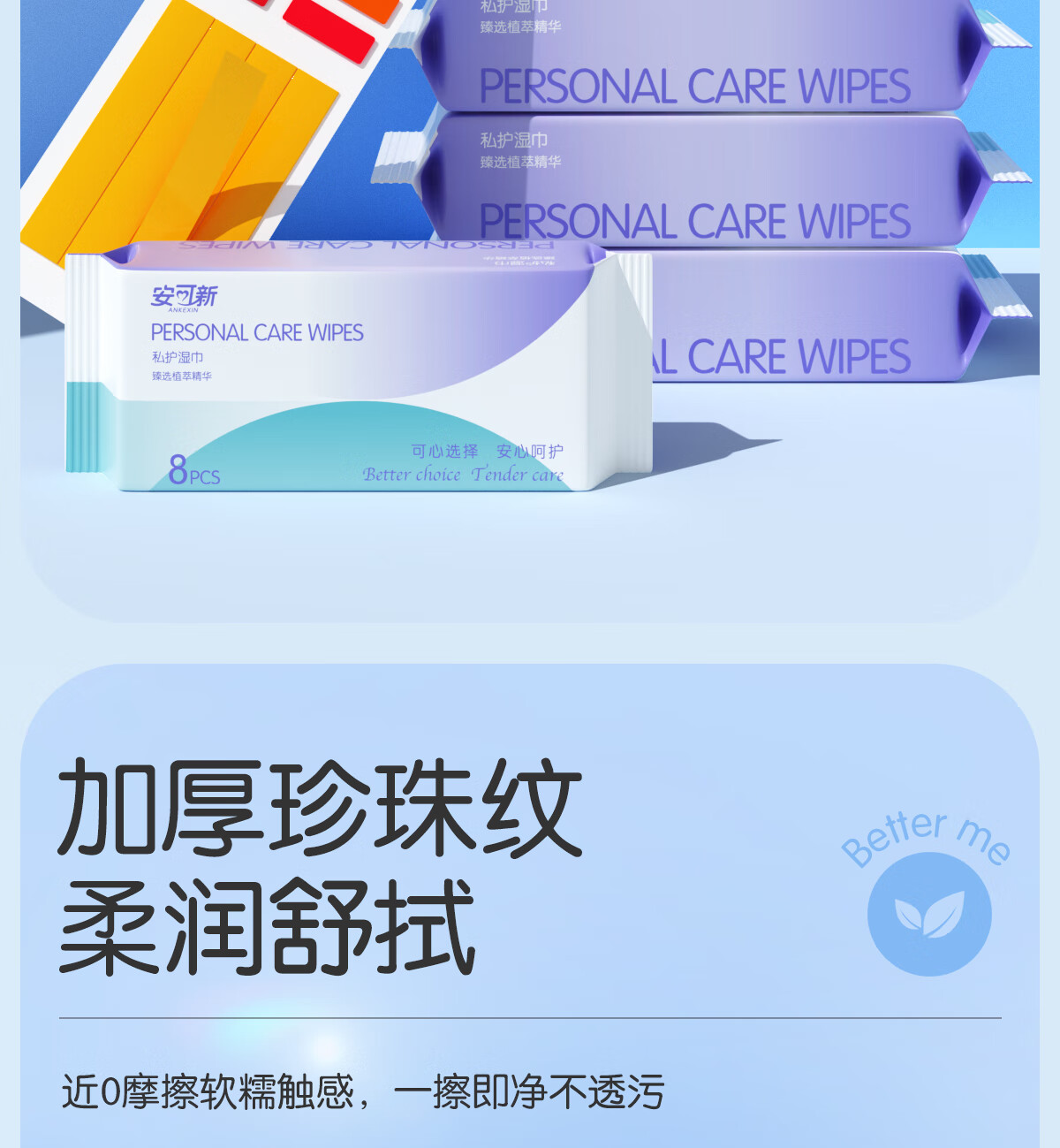 安可新 女士专研私护卫生湿巾私处清洁杀菌便携装 AKX-9669-24 8片*24包 混色(单位:组)