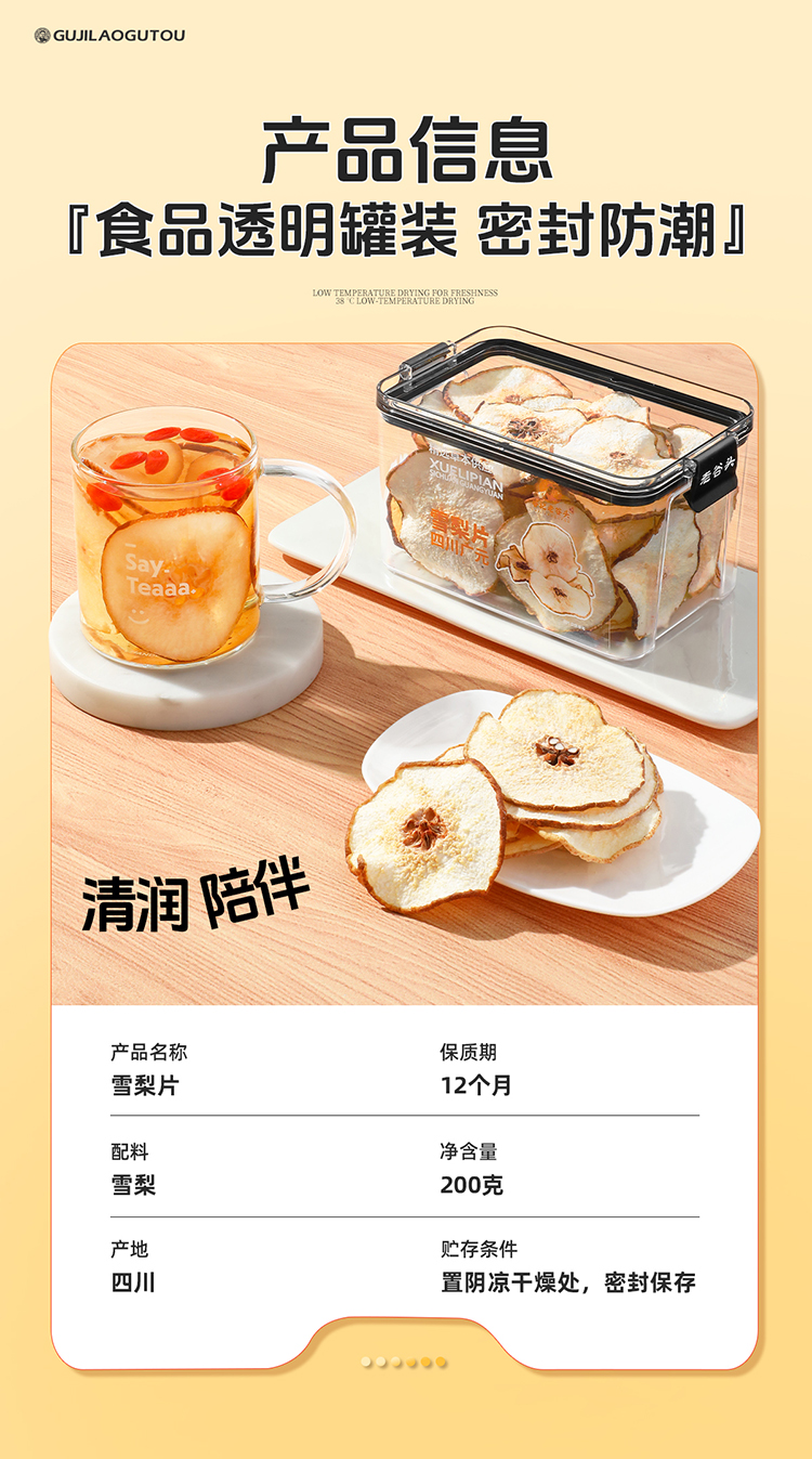 谷记老谷头 雪梨片 梨干片水果干 200g 白色(单位:罐)
