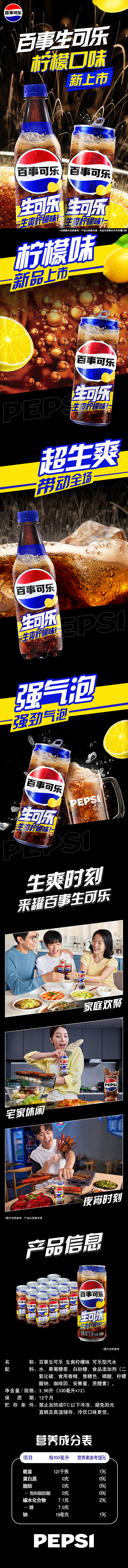 百事可乐 可乐型汽水 碳酸饮料 生爽柠檬味 生可乐 330ml*12罐 混色(单位:箱)