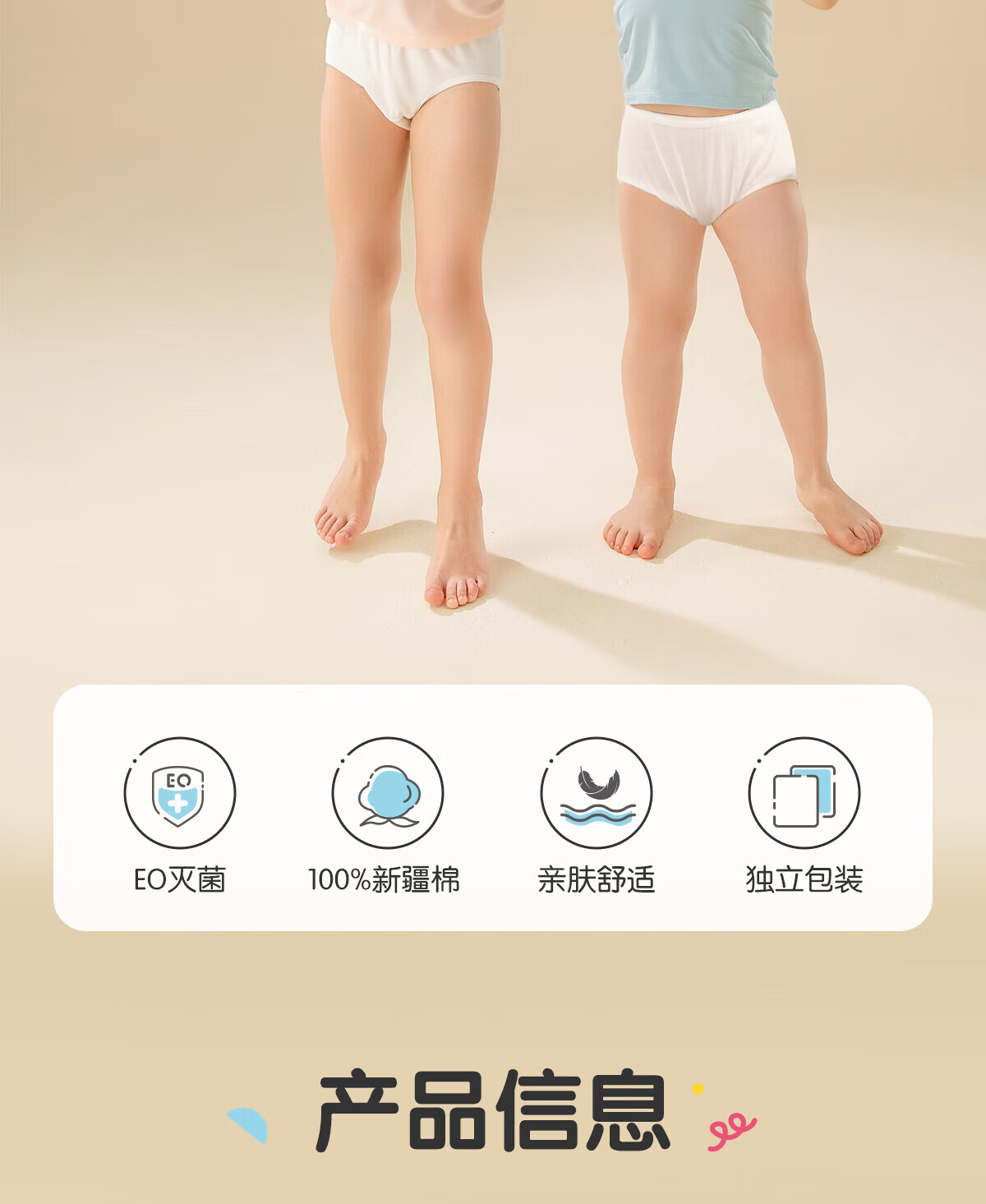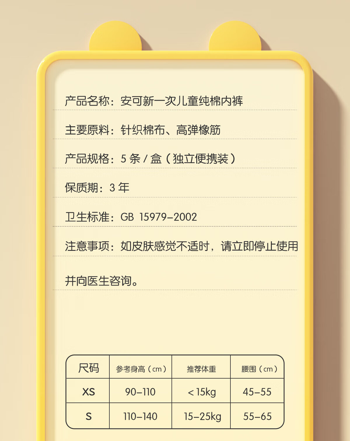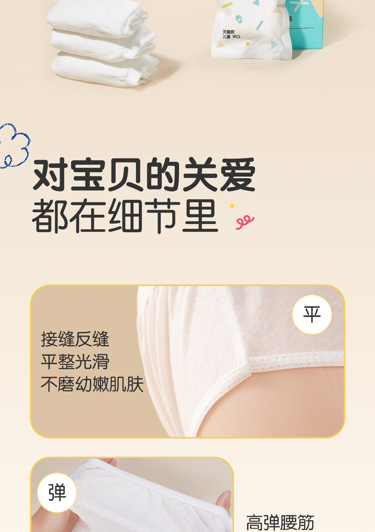 安可新 一次性内裤儿童纯棉旅行灭菌卫生三角裤 AKX-7604-2 5条装*2盒XS码 混色(单位:组)