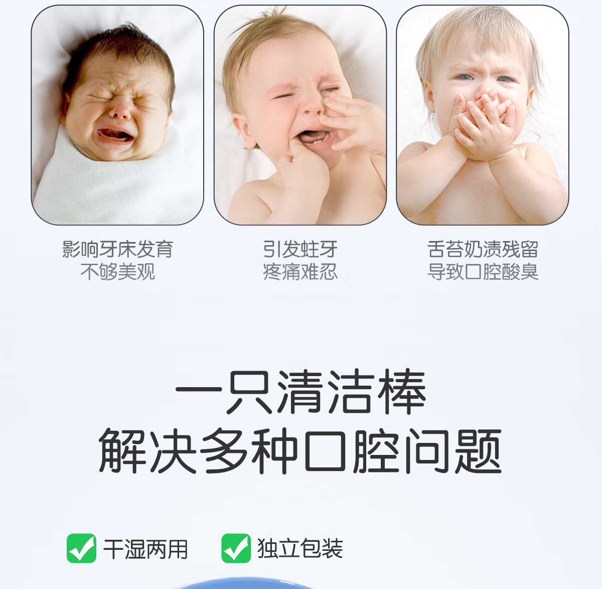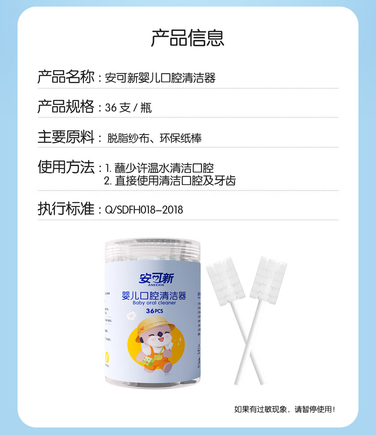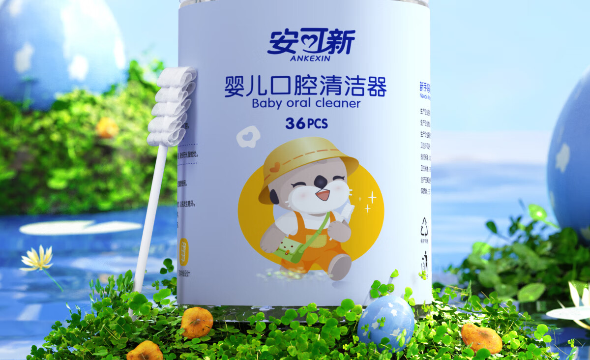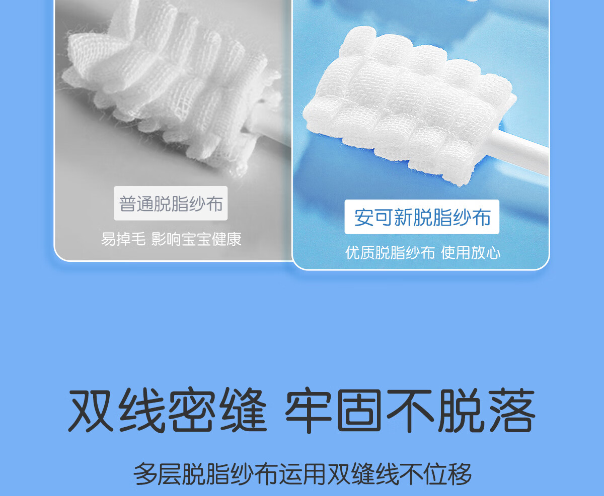 安可新 婴儿牙刷升级款双排线儿童牙刷宝宝口腔清洁器棒 AKX-3812-2 36支/罐*2罐 混色(单位:组)
