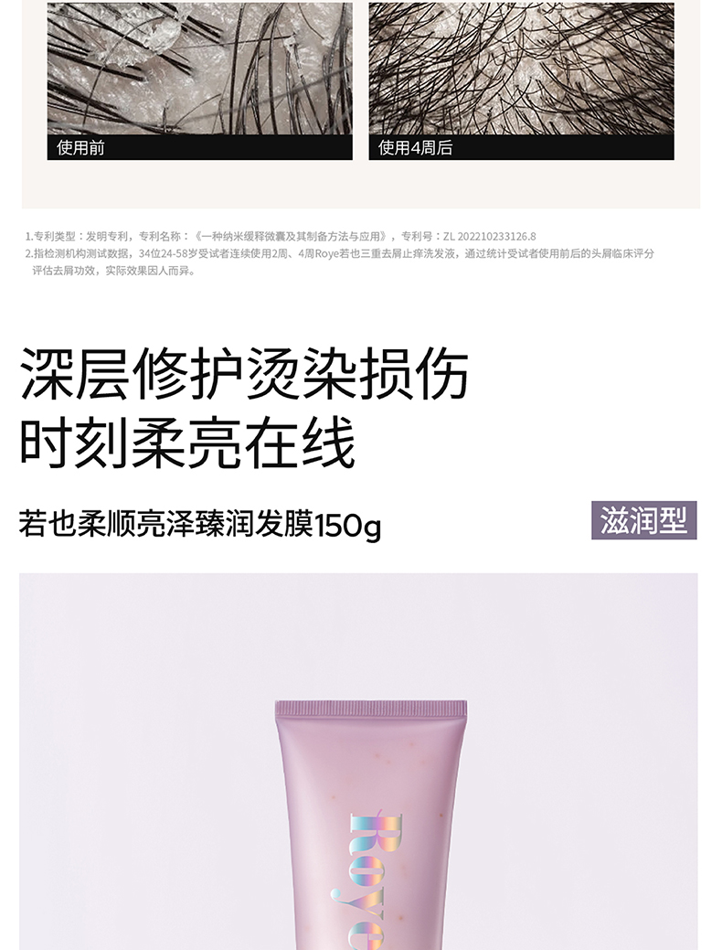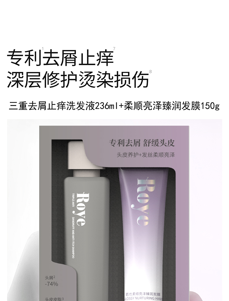若也(Roye) 去屑臻润洗护套组 去屑止痒+滋养亮泽 (236ml洗发液+150g发膜)*3组 混色(单位:组)