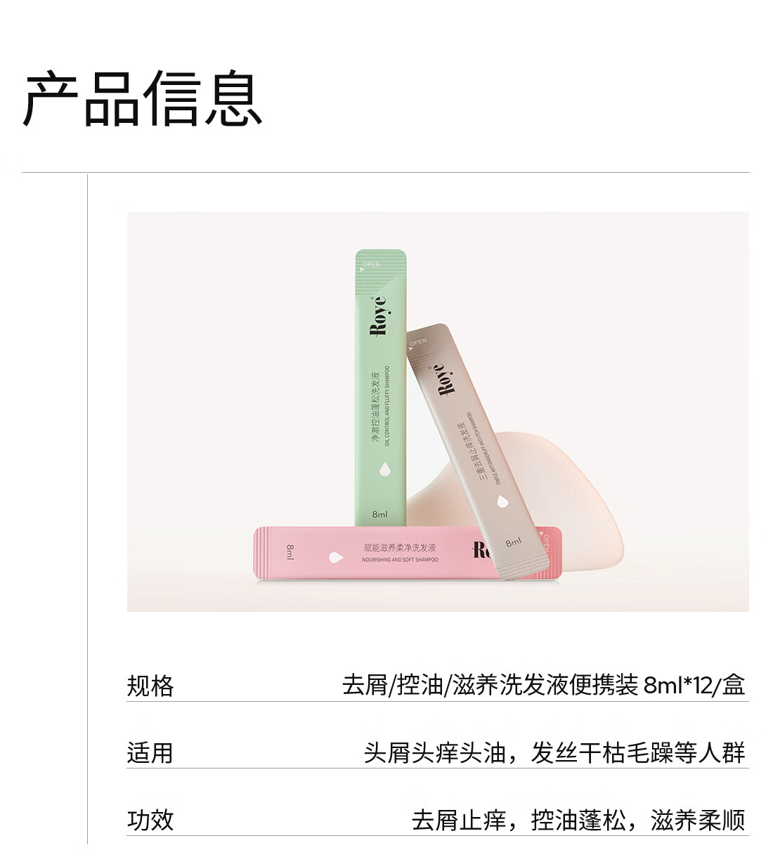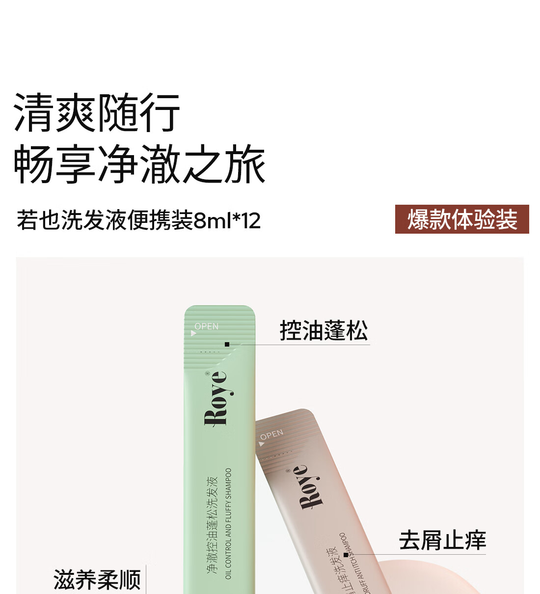 若也(Roye) 净澈控油蓬松洗发液 控油蓬松型便携装 8ml*12条*1盒 绿色(单位:组)
