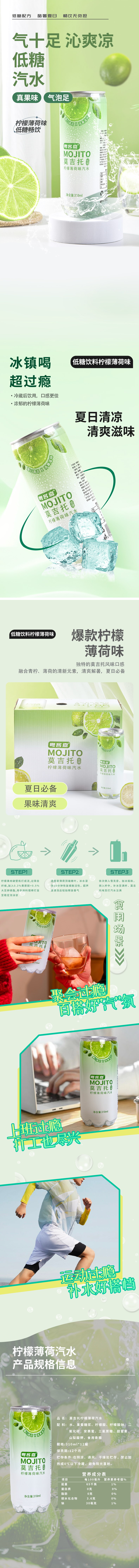 粤客嘉 莫吉托柠檬薄荷汽水 12罐/箱 310ml/罐 绿色(单位:箱)