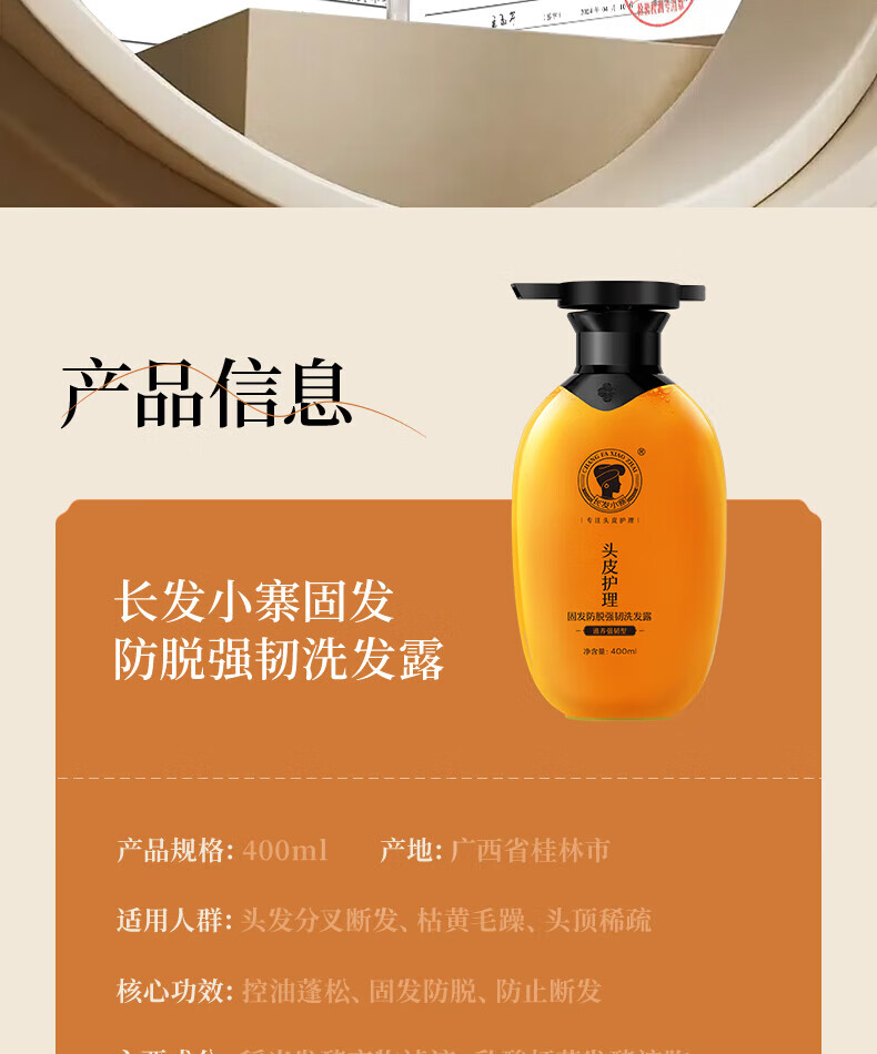 长发小寨 固发防脱强韧洗发露 (滋养强韧型) 400g 黄色(单位:瓶)