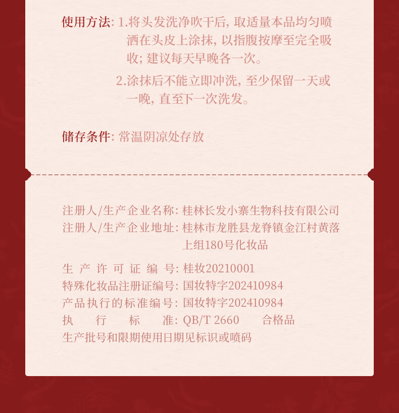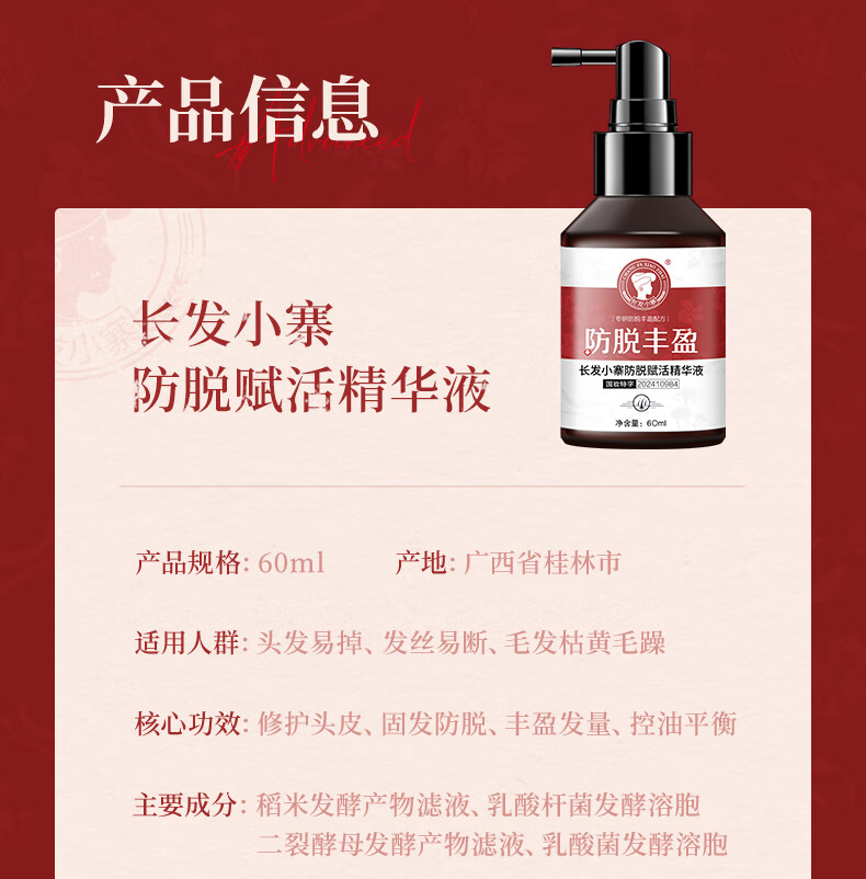 长发小寨 防脱赋活 精华液 60ml 黑色(单位:瓶)
