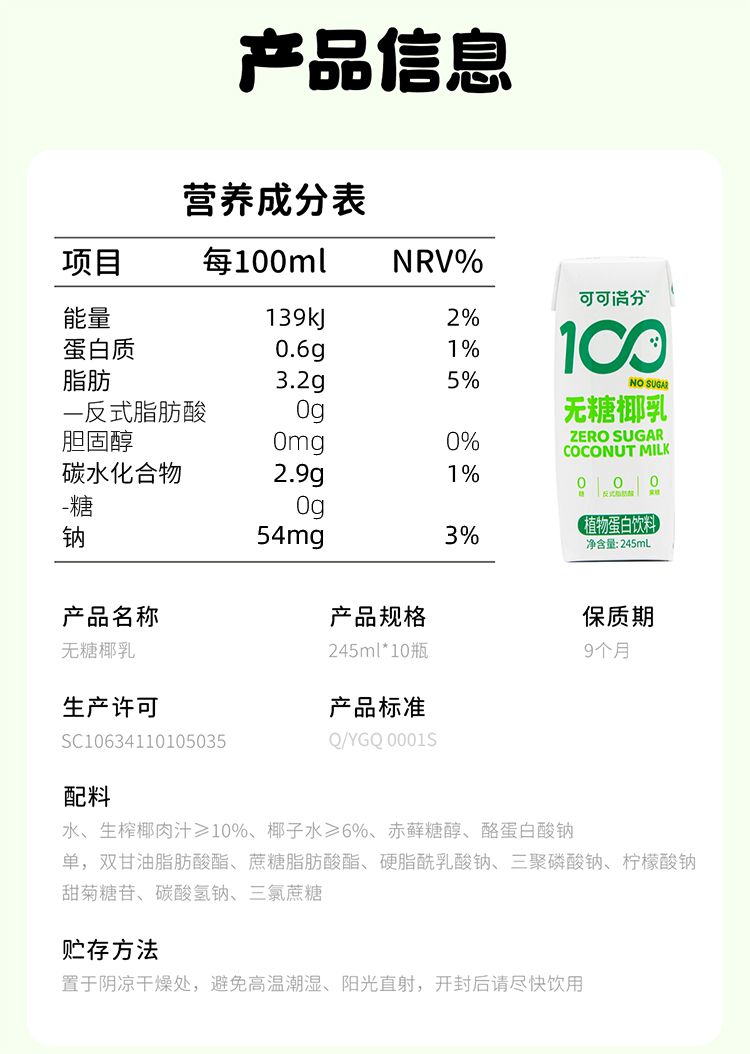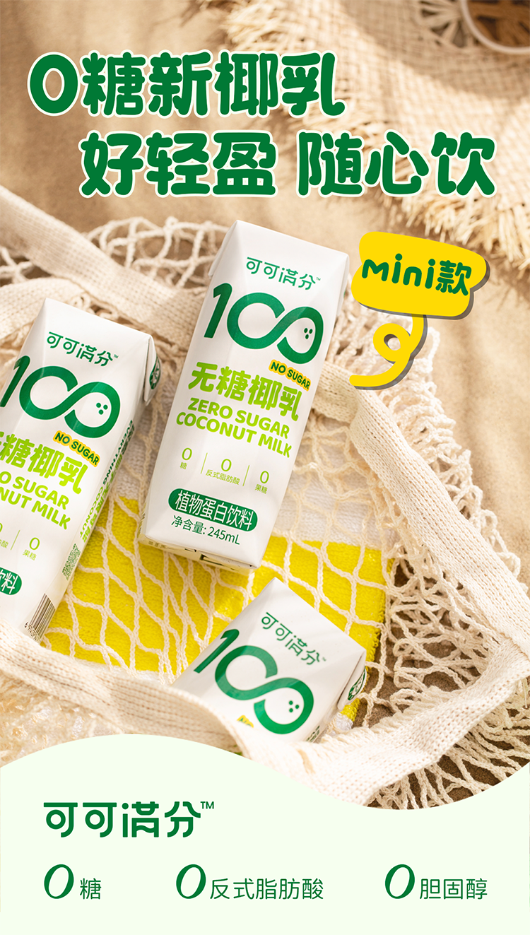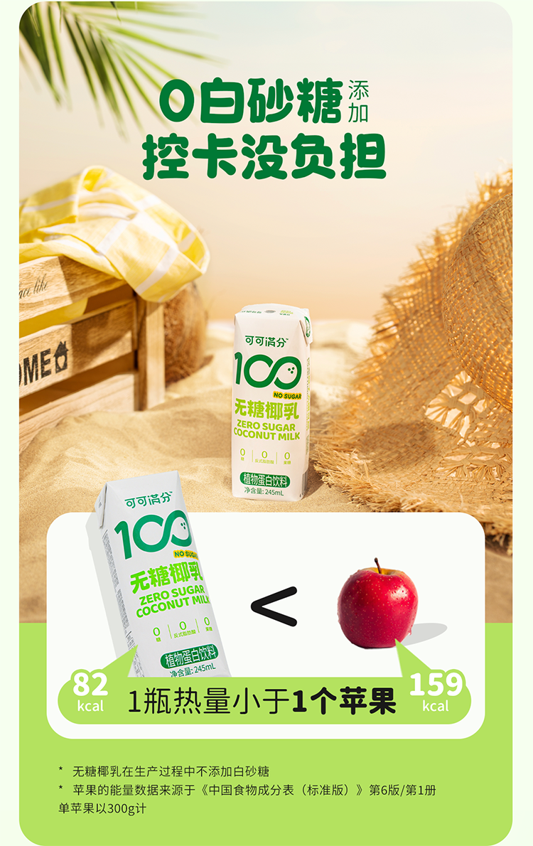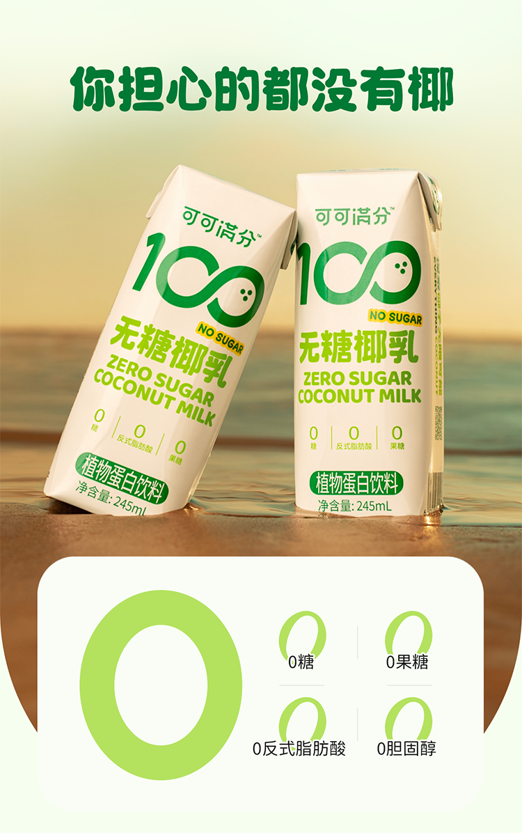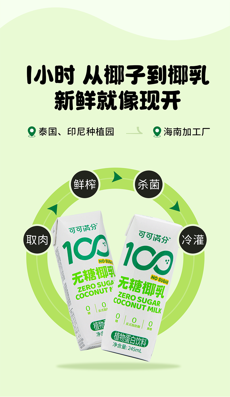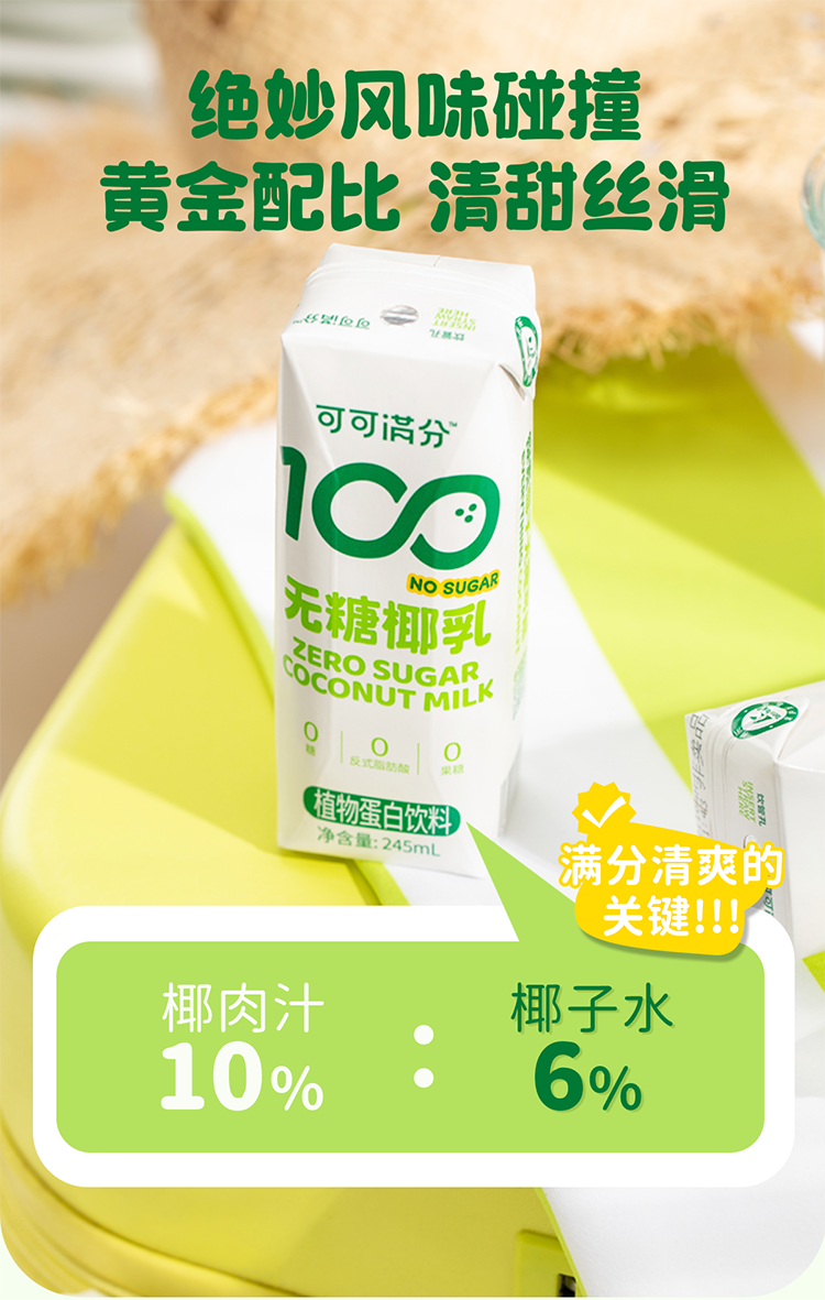 可可满分 饮品 无糖椰乳 2箱(245ml*10瓶*2) 淡绿色(单位:组)