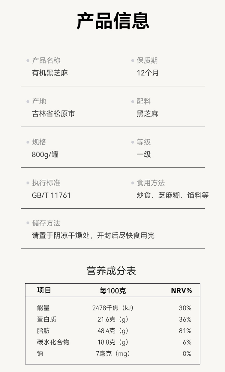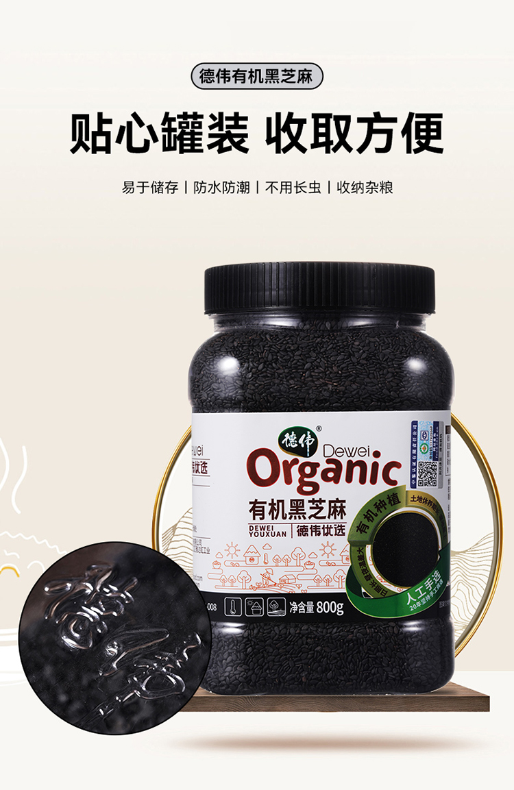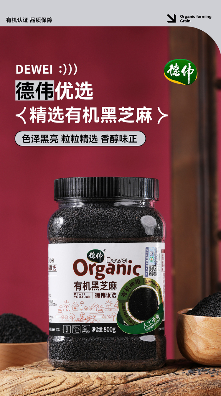 德伟(dewei) 黑芝麻 有机 800g 黑色(单位:罐)