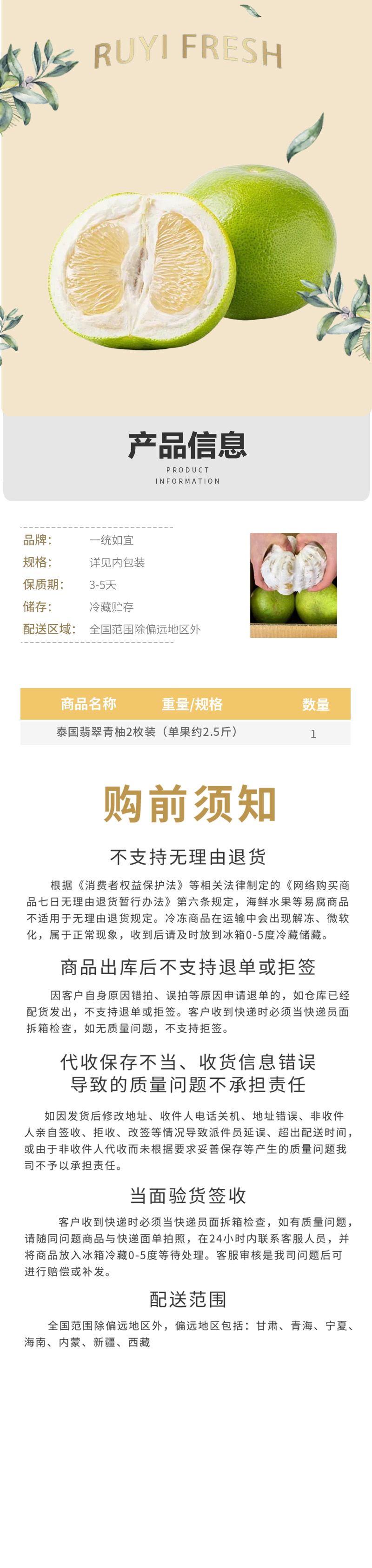 一统如宜 泰国翡翠青柚88型 单果约2.2-2.5斤 2枚装 琥珀色(单位:盒)