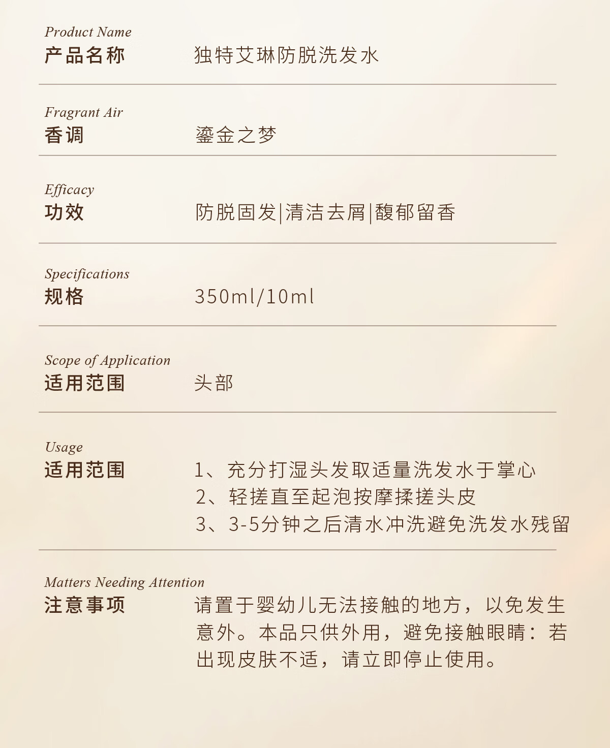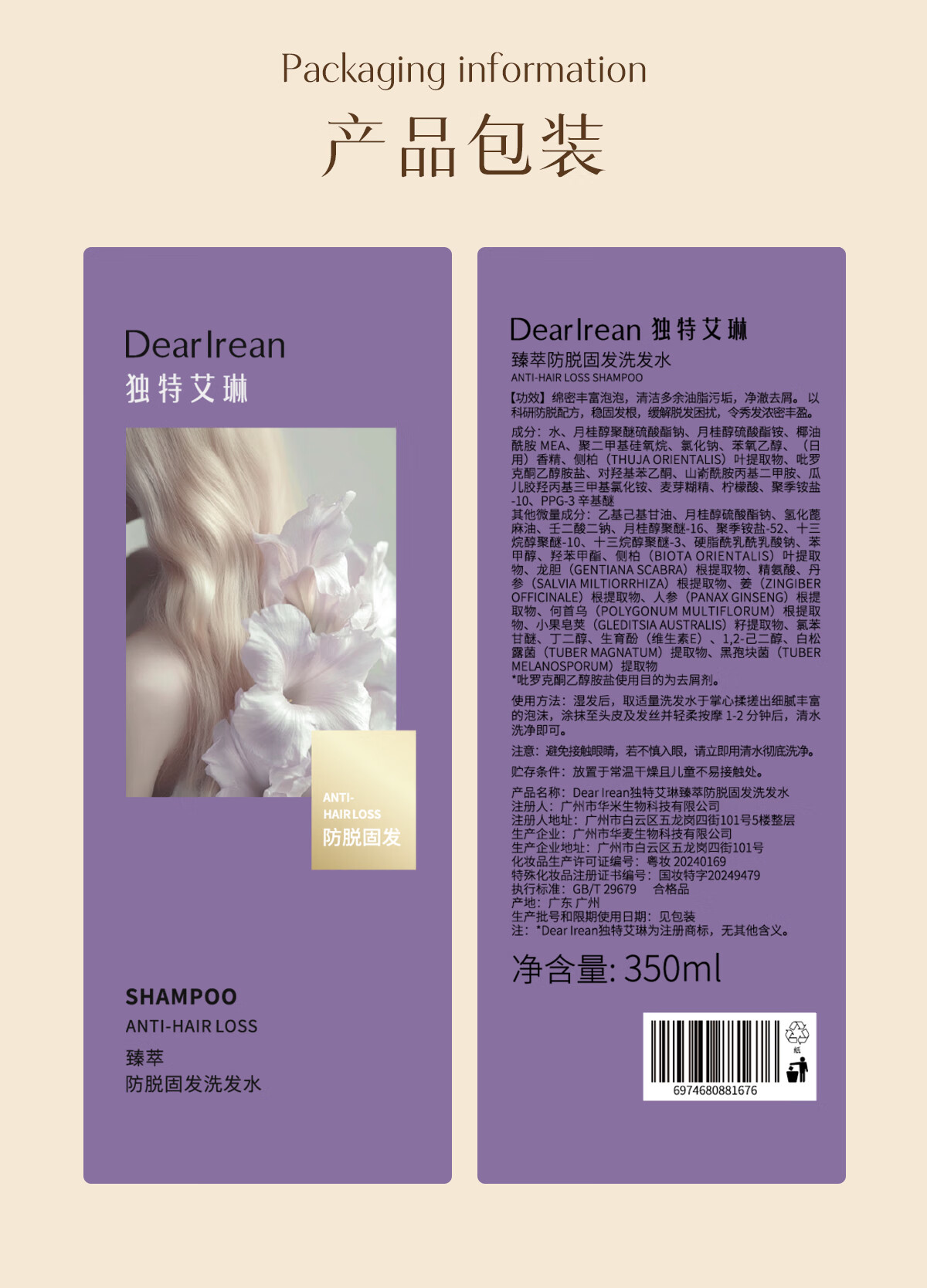 独特艾琳(Dear lrean) 臻萃 防脱固发洗发水 350ml 紫色(单位:瓶)