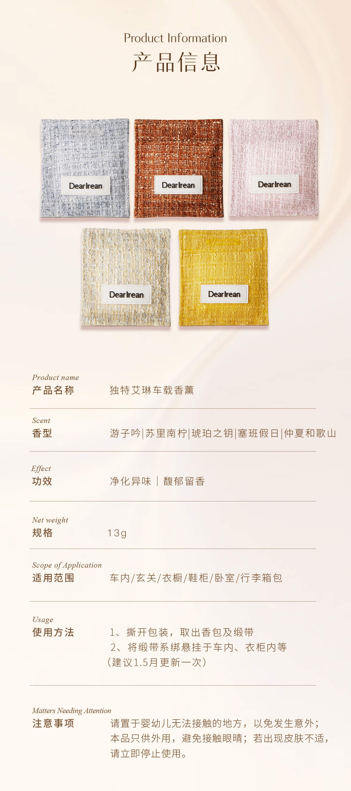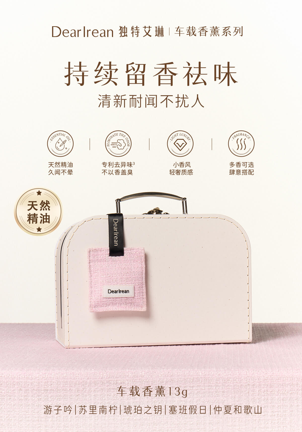 独特艾琳(Dear lrean) 小香风车载香薰 仲夏和歌山 13g 茱萸粉(单位:盒)