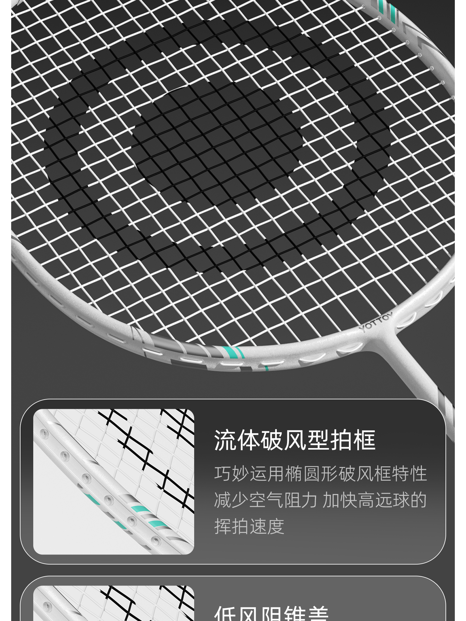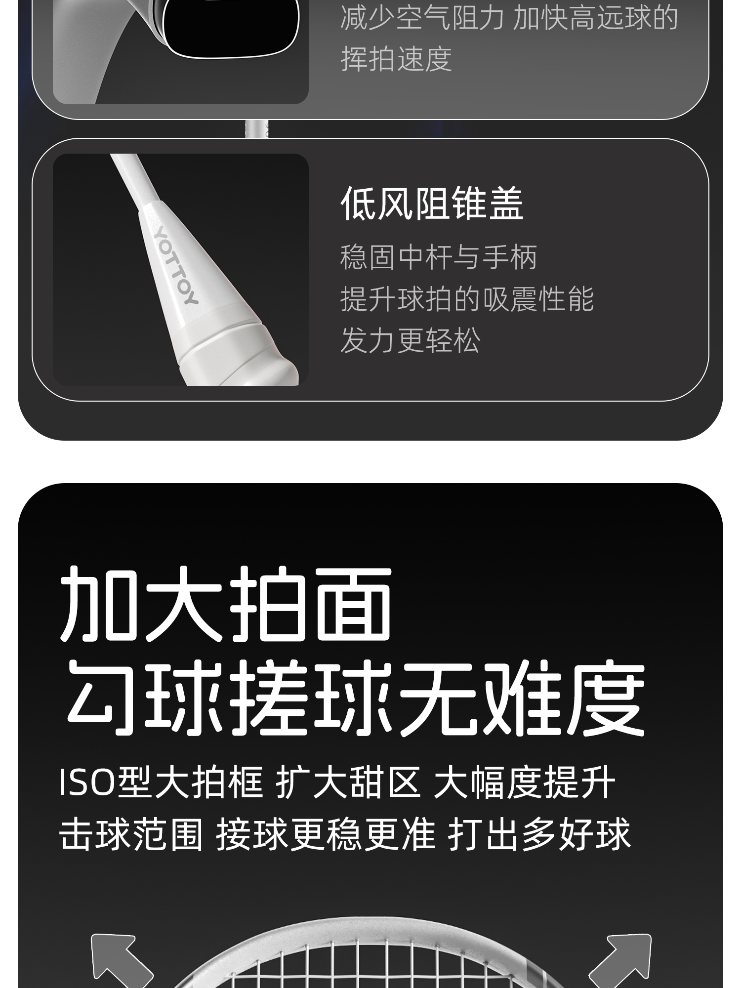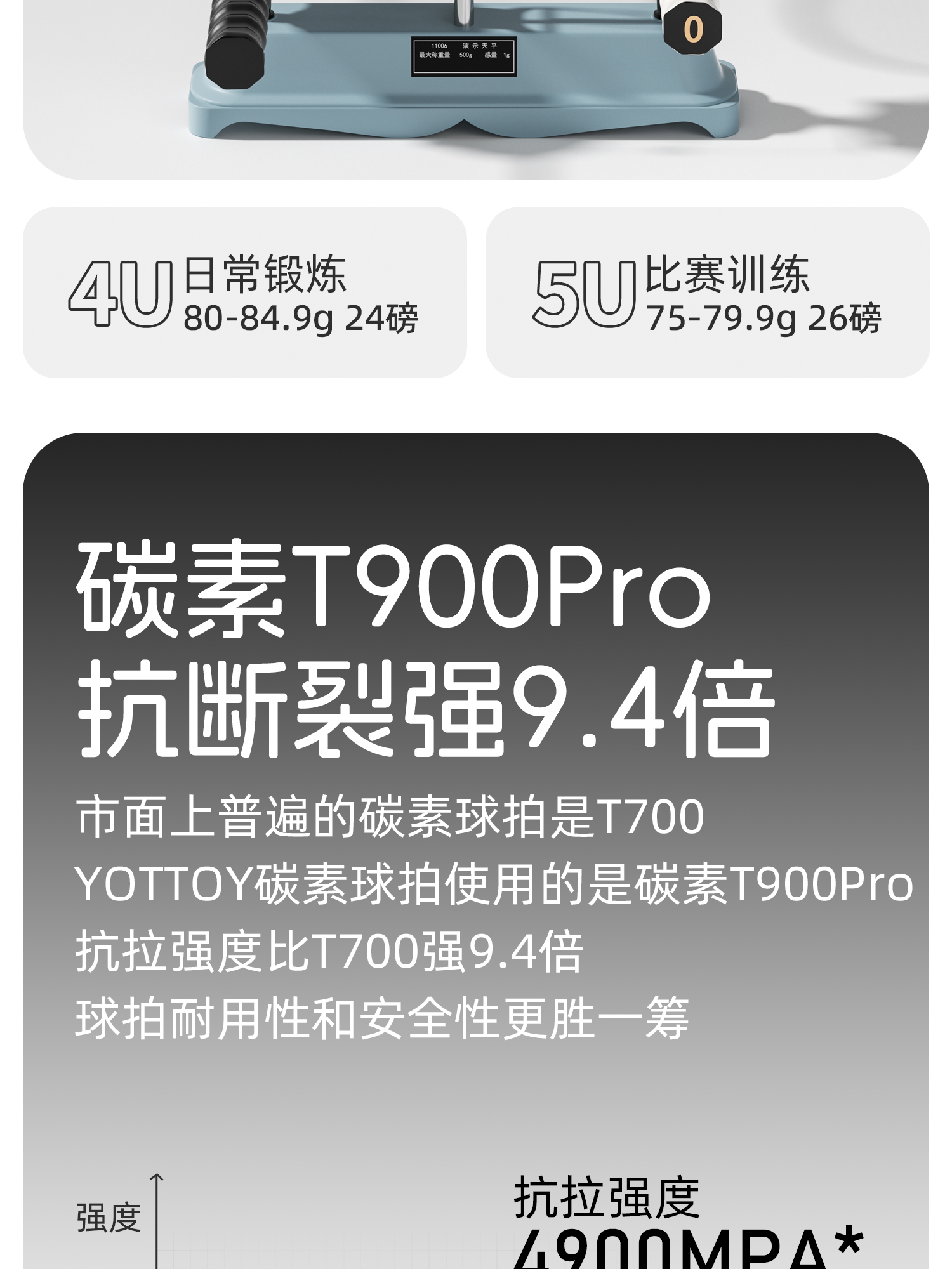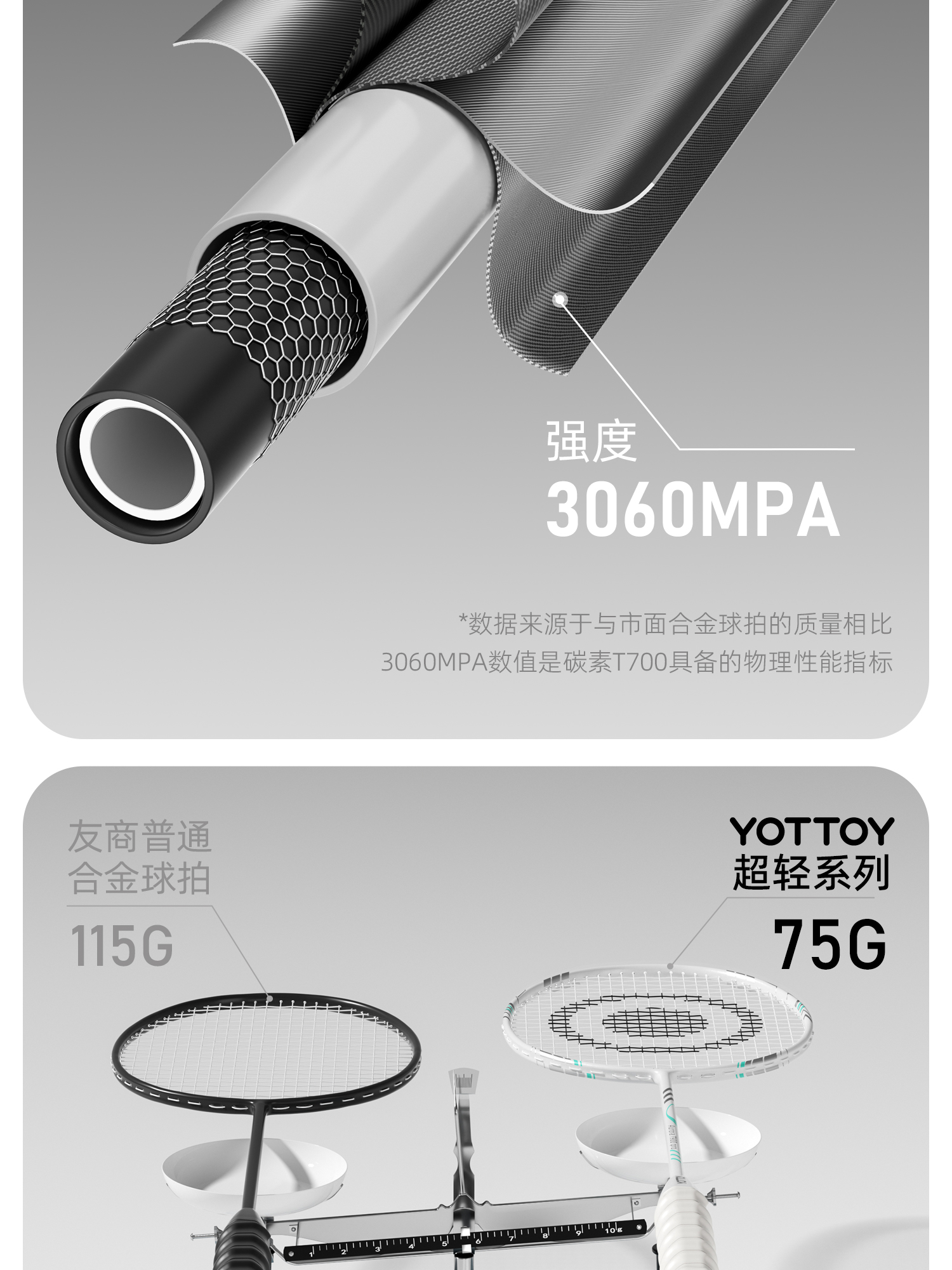 YOTTOY 极光成人专业级全碳素超轻耐打球拍(5U双拍) Y24120V003003 80g*2 黑金(单位:对)