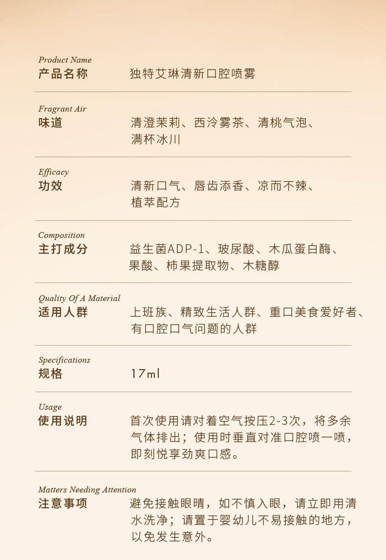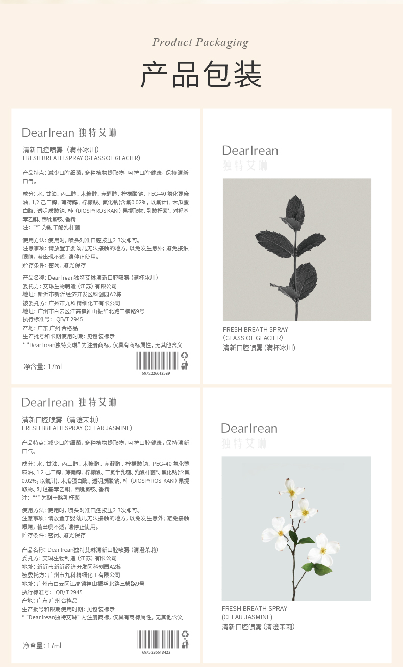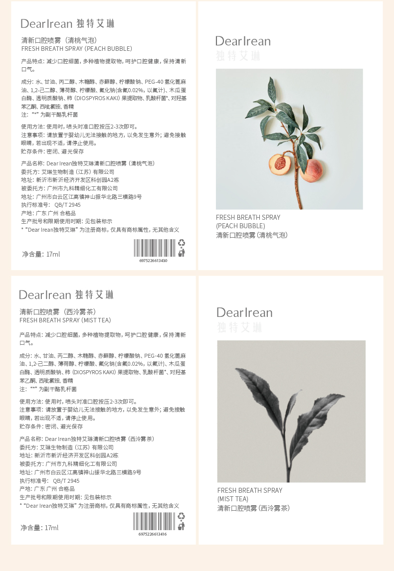 独特艾琳(Dear lrean) 清新口腔喷雾 西泠雾茶 17ml 绿色(单位:支)