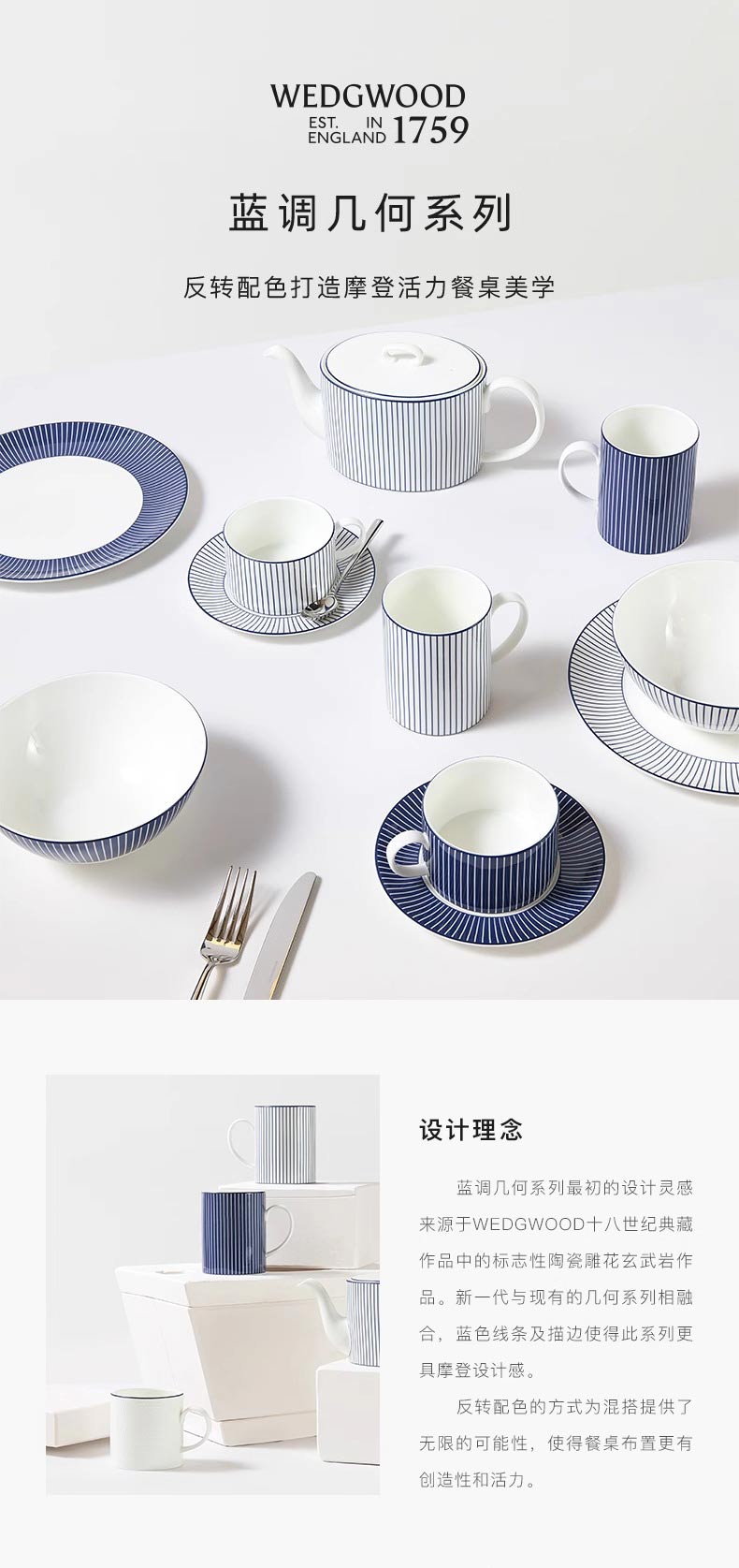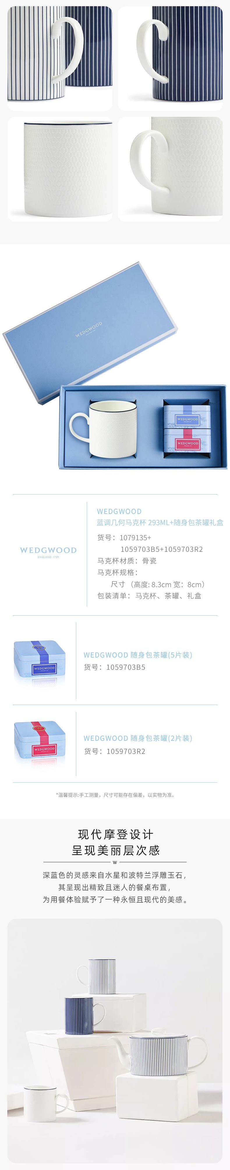 WEDGWOOD 蓝调几何马克杯+随身包茶罐礼盒 1079135+1059698B5+1059698R2 293ML 白色(单位:套)