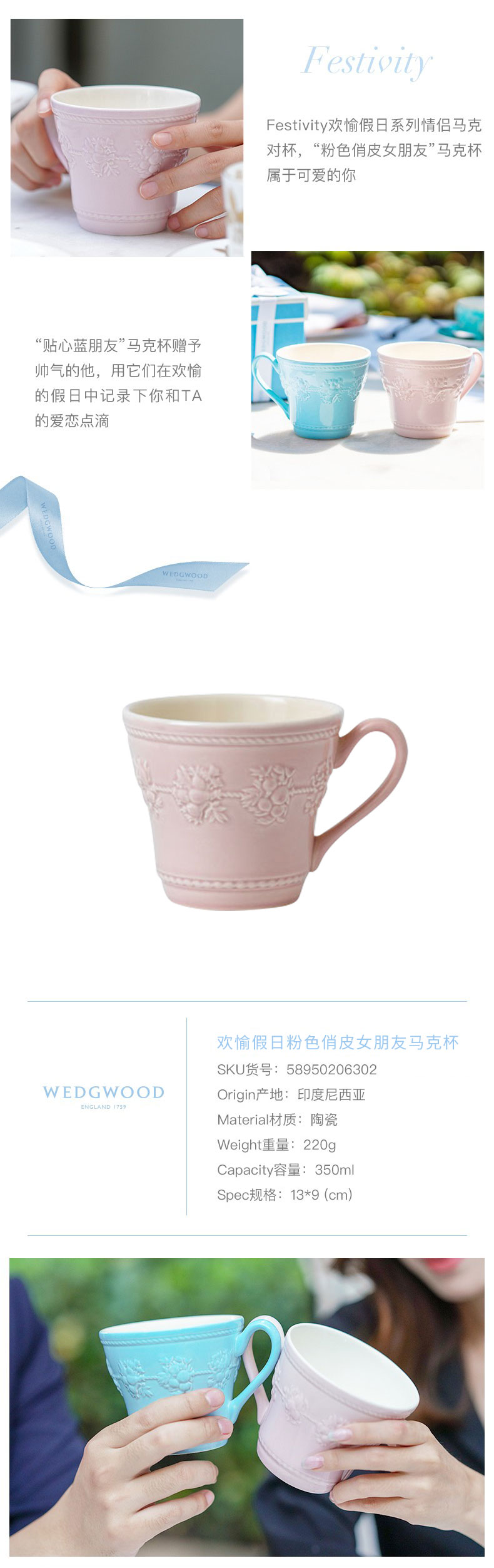 WEDGWOOD 威基伍德 欢愉假日马克杯 58950206302 350ml 粉色(单位:个)