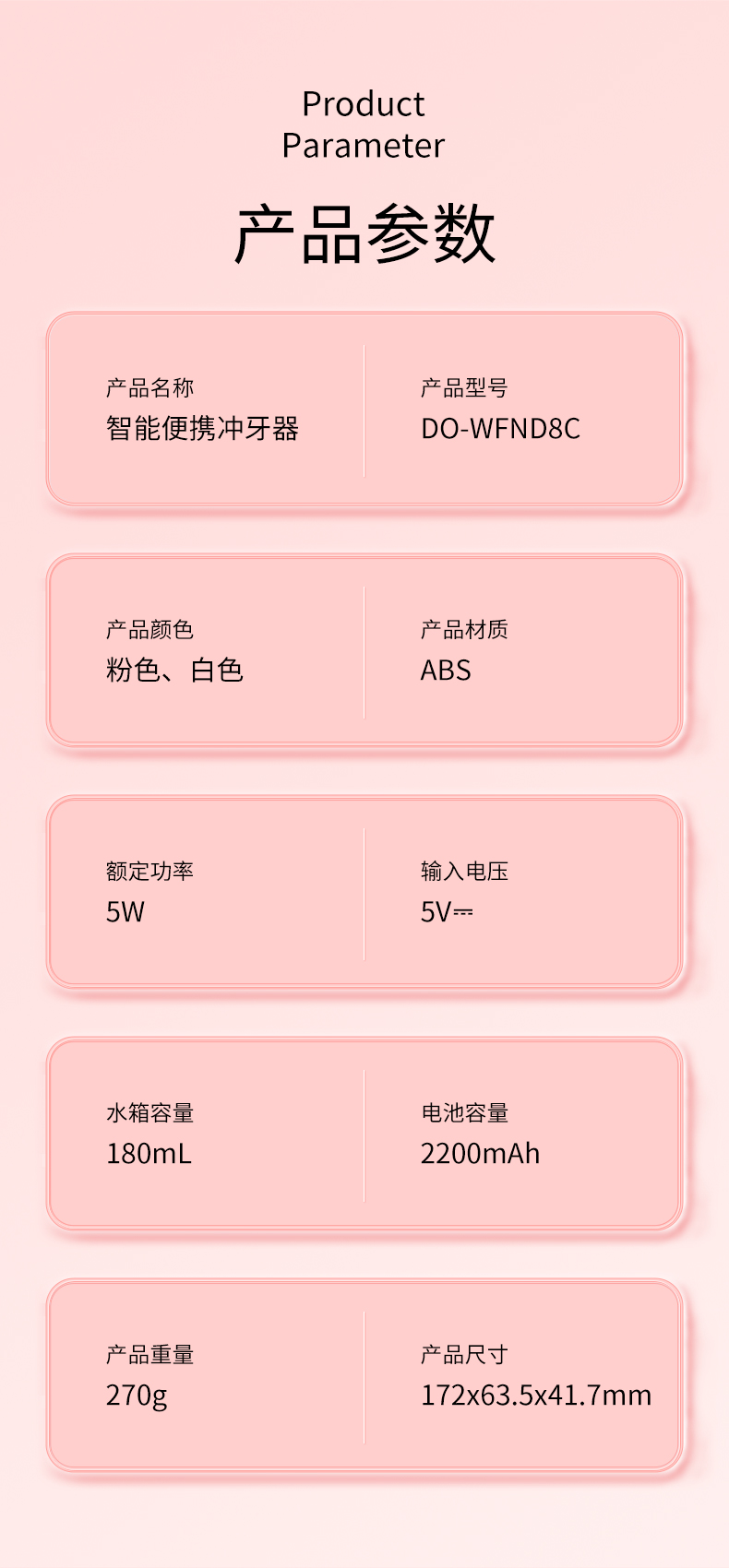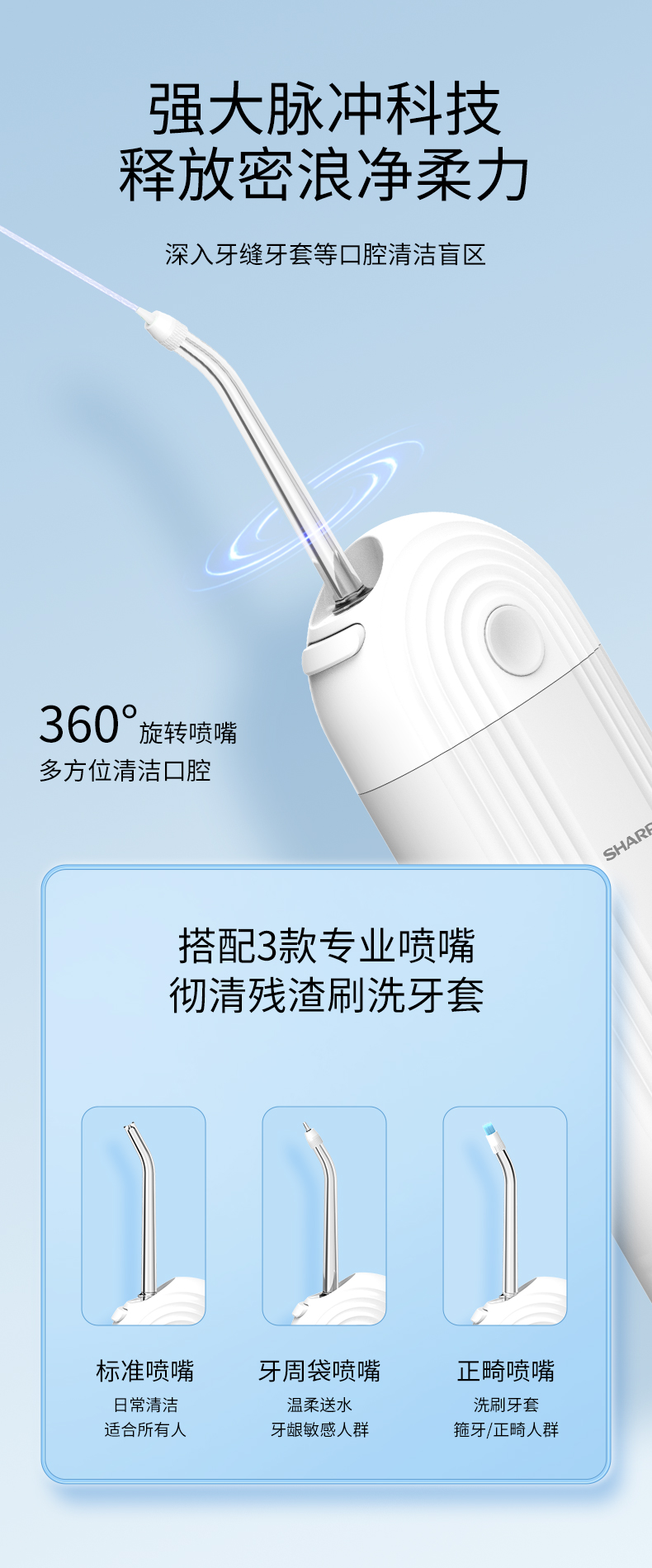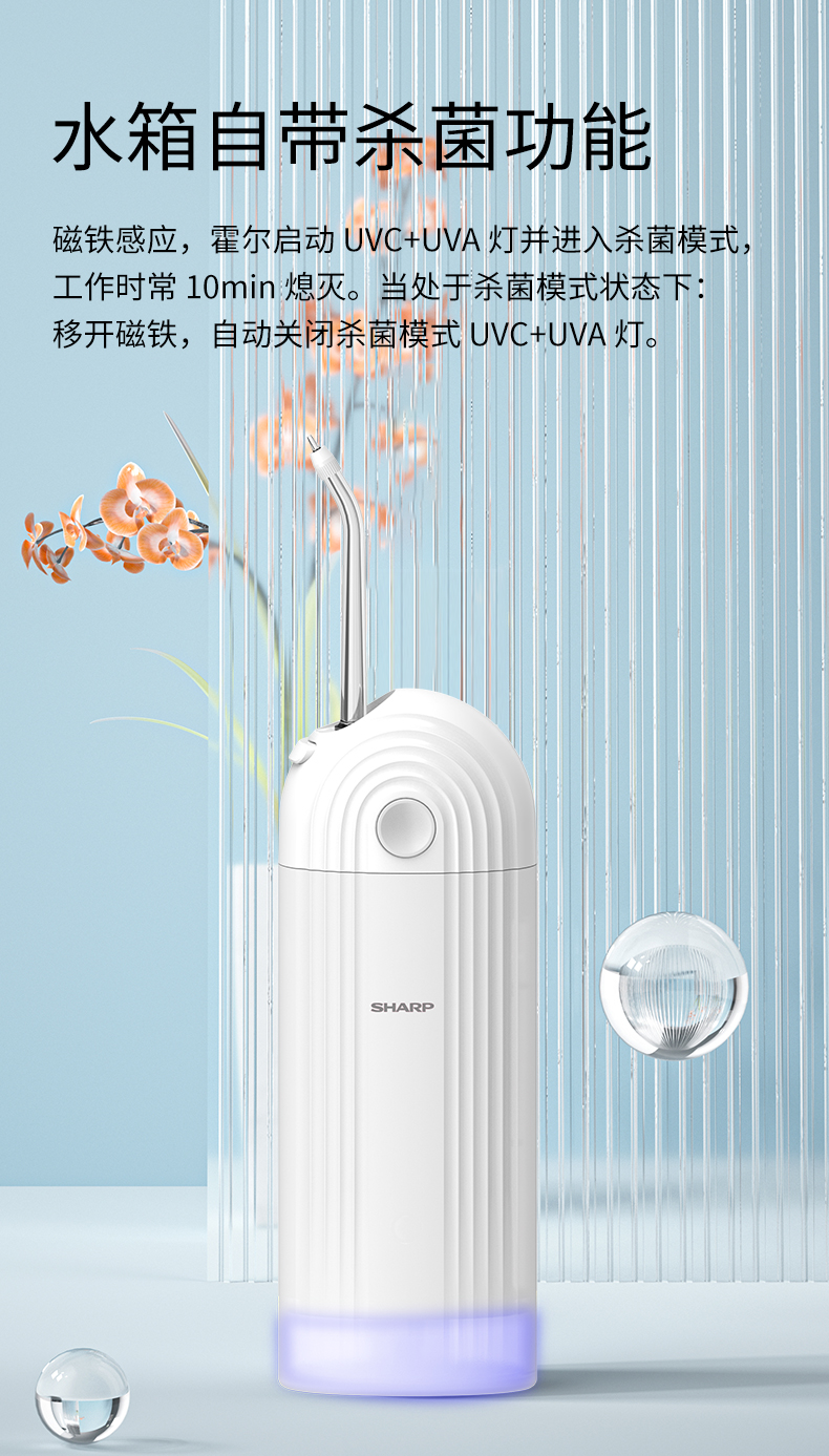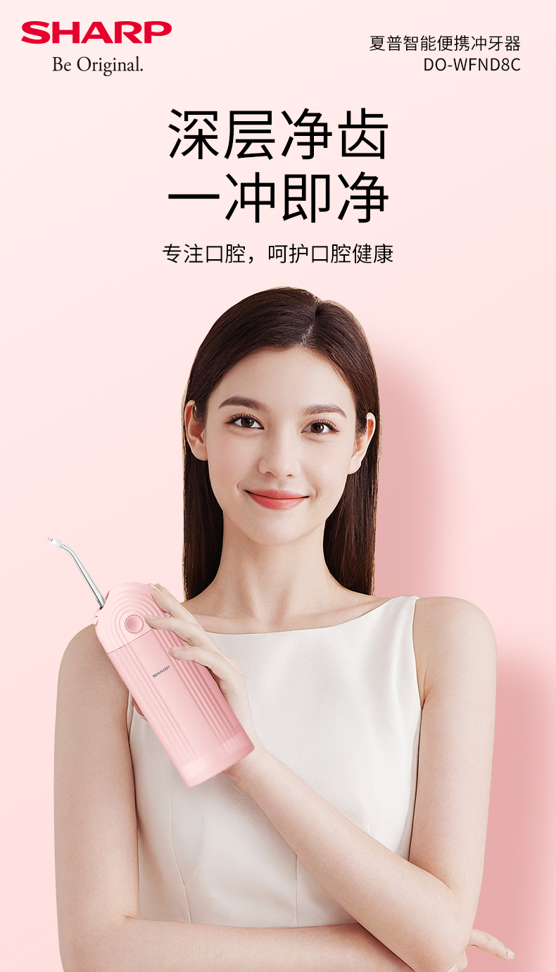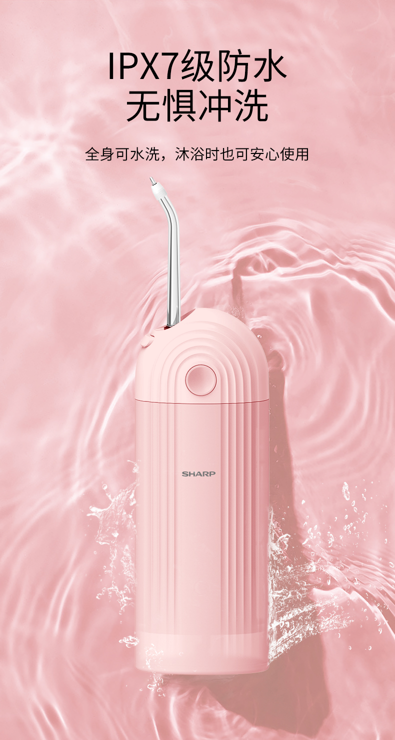 夏普(SHARP) 便携冲牙器 家用可伸缩洗牙器 IPX7级防水 DO-WFND8C-PK 3档脉冲模式 粉色(单位:台)