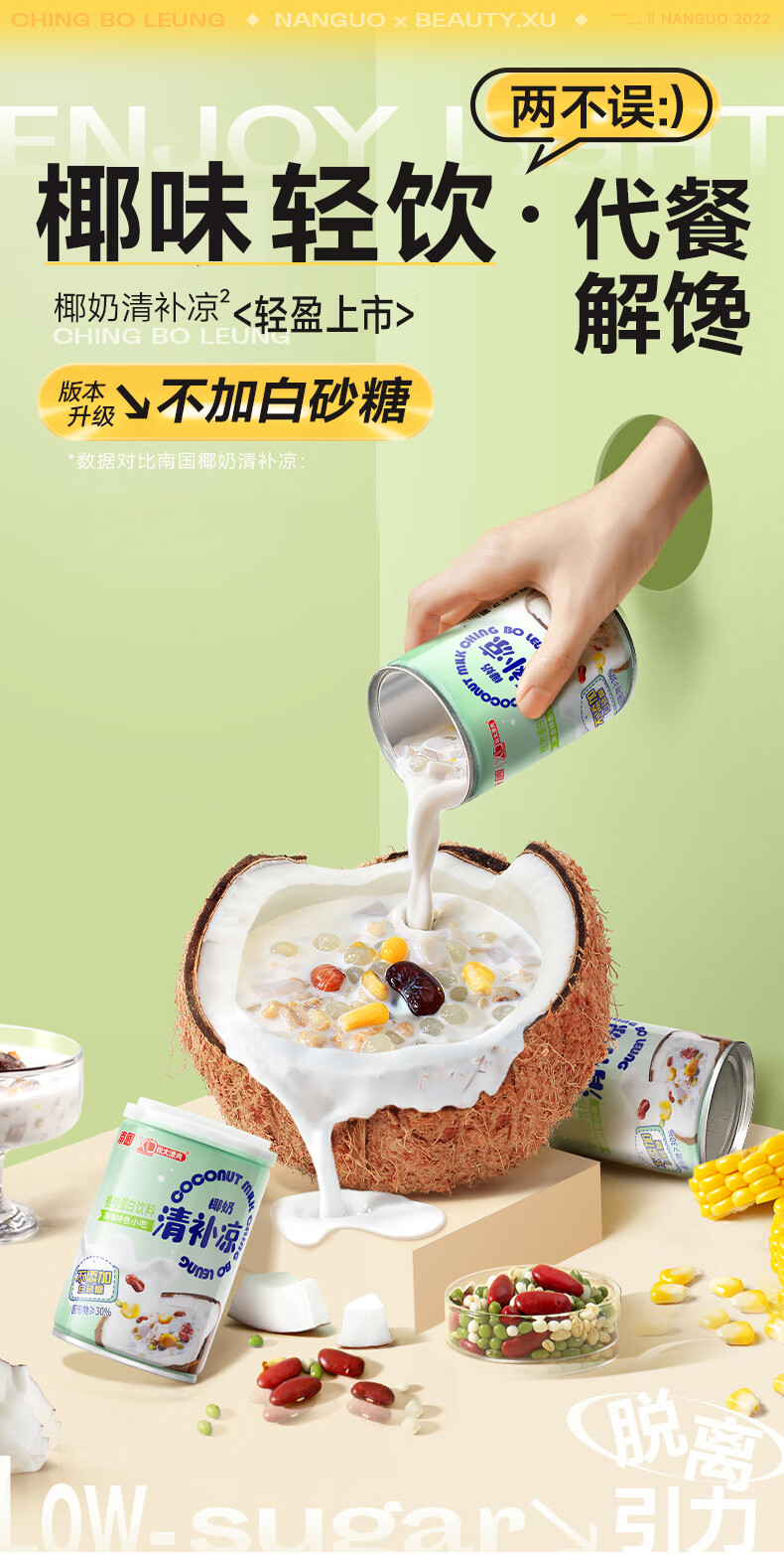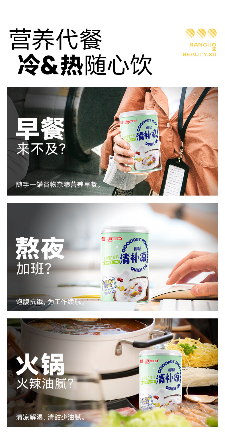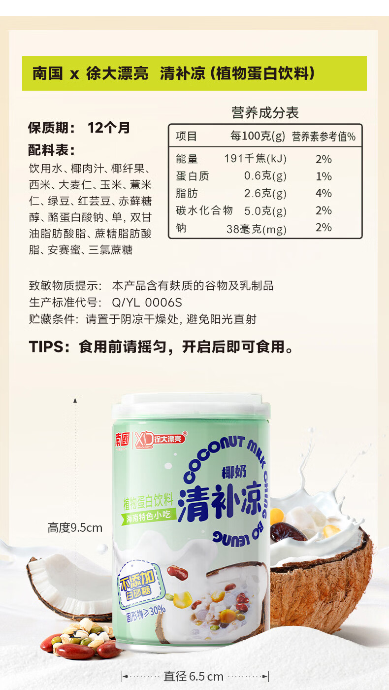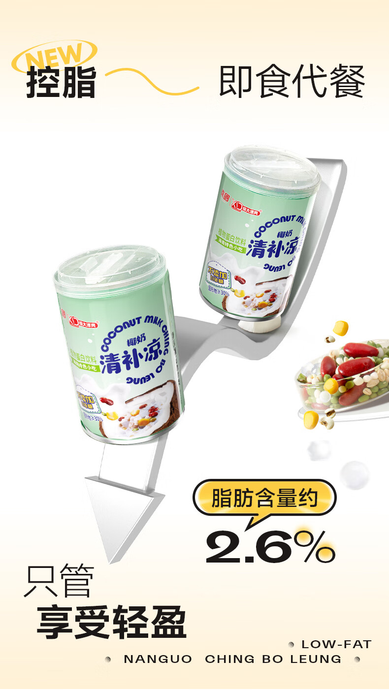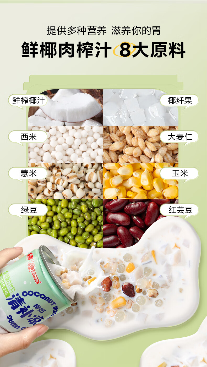 南国(nanguo) 椰奶清补凉 不添加白砂糖 255g*6罐 浅杉绿(单位:组)
